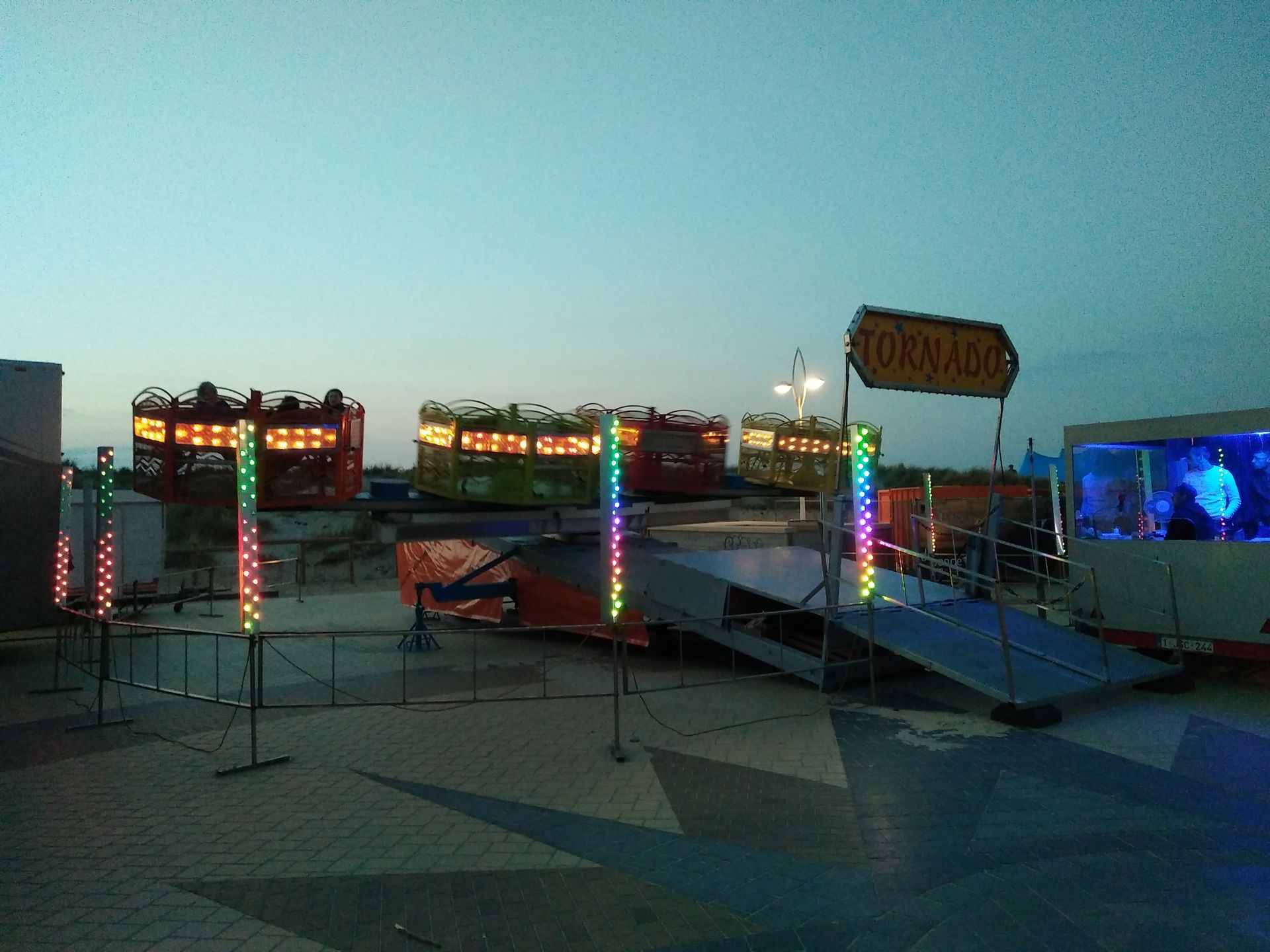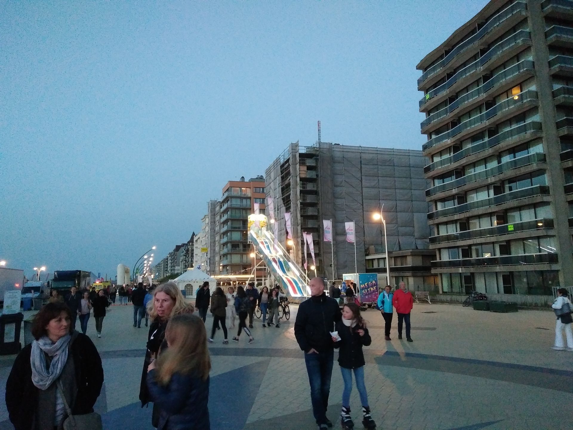 Nach dem Check-In in unserem gemütlichen kleinen Hotel direkt am Marktplatz, ging es auf den Weg Richtung Strand. Im Hotel erzählt man uns auch noch etwas von einem gratis Festival direkt an der Promenade. Hmm, da blinkt doch was ? Ist das etwa... ? Ja, ist es. In de Panne trafen wir auf eine kleine Kirmes, welche im Rahmen des Festival stattfand. Irgendwo neben den Zelten und Imbissbuden mit zu langen Schlagen waren, umgeben von stark betrunkenen Belgiern, mehrere Fahrgeschäfte aufgebaut.