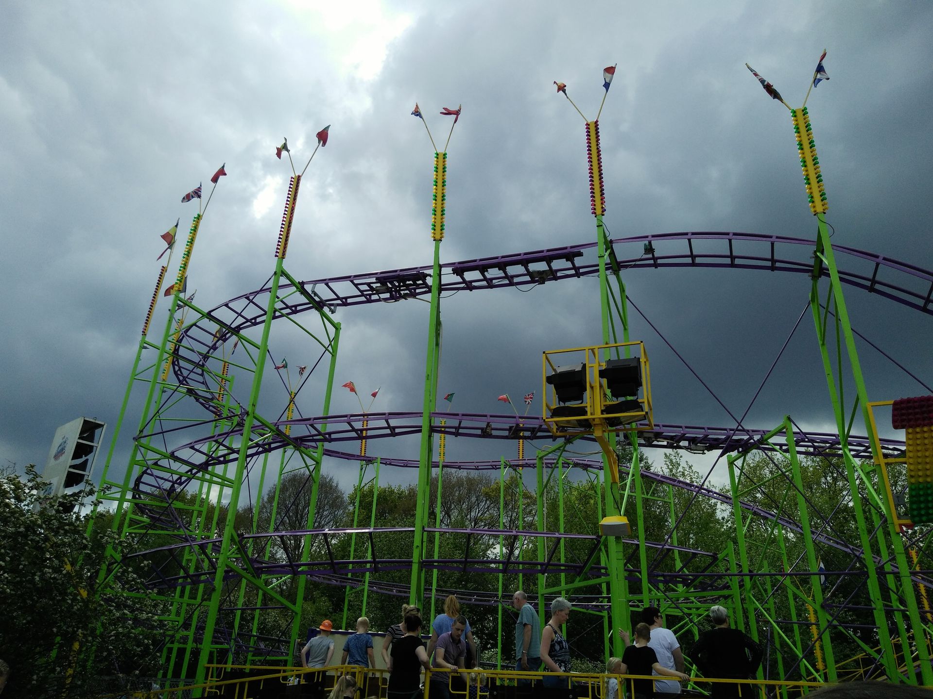 ... welches vom Operator handgesteuert wurde. Da wir vier hier den Großteil der Fahrgäste ausmachten, fuhr er auch entsprechend flott. Macht zwar Spaß, aber auf der Kirmes würde ich nicht nochmal einsteigen. Vermutlich ist er deswegen hier im Park gelandet.