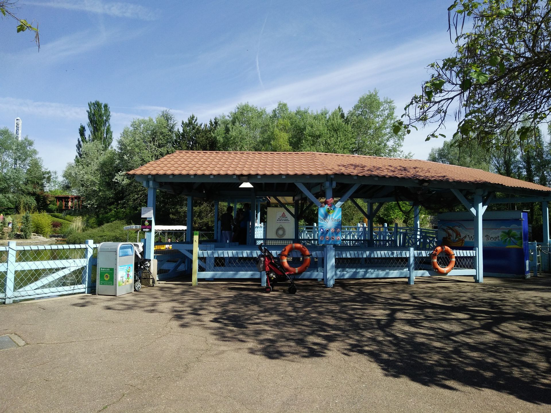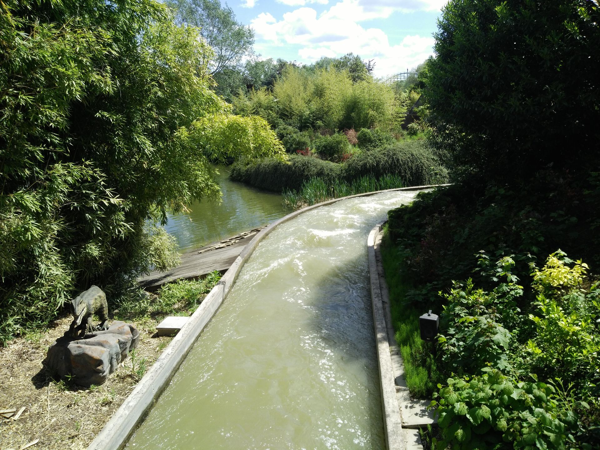 Bevor wir uns auf die Coaster wagten, schoben wir allerdings erst noch eine Runde Wasserbahn vor, um den späteren Andrang bei dem guten Wetter zu umgehen. War die richtige Entscheidung. Die Boote dümpeln hier so vor sich hin und nach dem ersten und einzigen Drop reicht es nur für ein paar Spritzer. Kein Highlight.