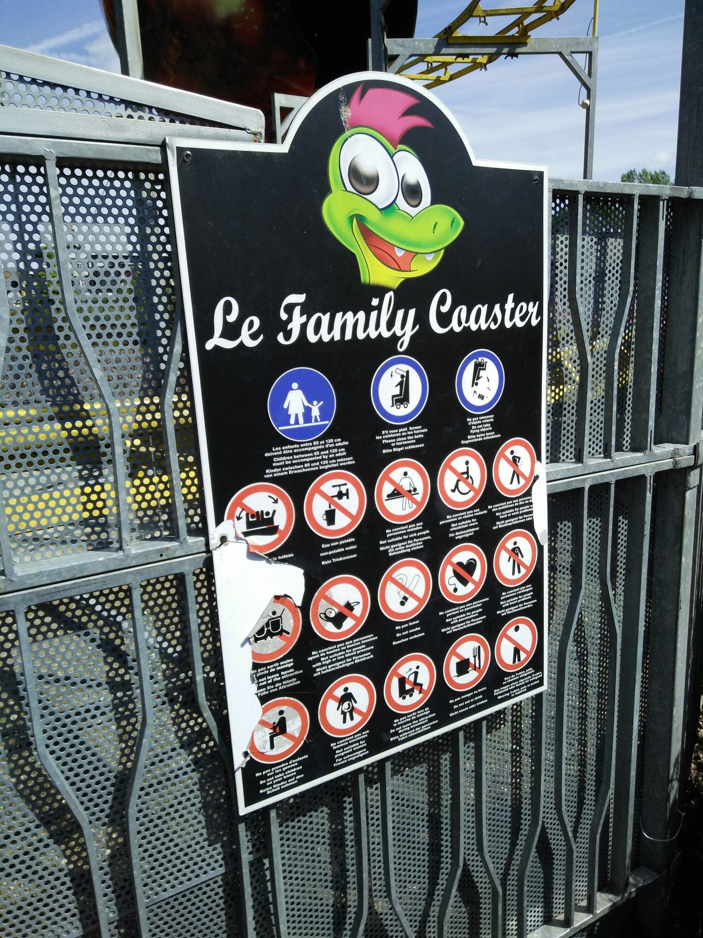 Bevor wir das Monster bezwingen sollten, war es aber Zeit für einen kleinen Snack. Ein Apfel kam da genau richtig. Der Family Coaster..., ehh pardon, Le Family Coaster..., hatte einige Interesannte Sicherheitshinweise. Das Boot nicht schaukeln, kein Trinkwasser... Okay...