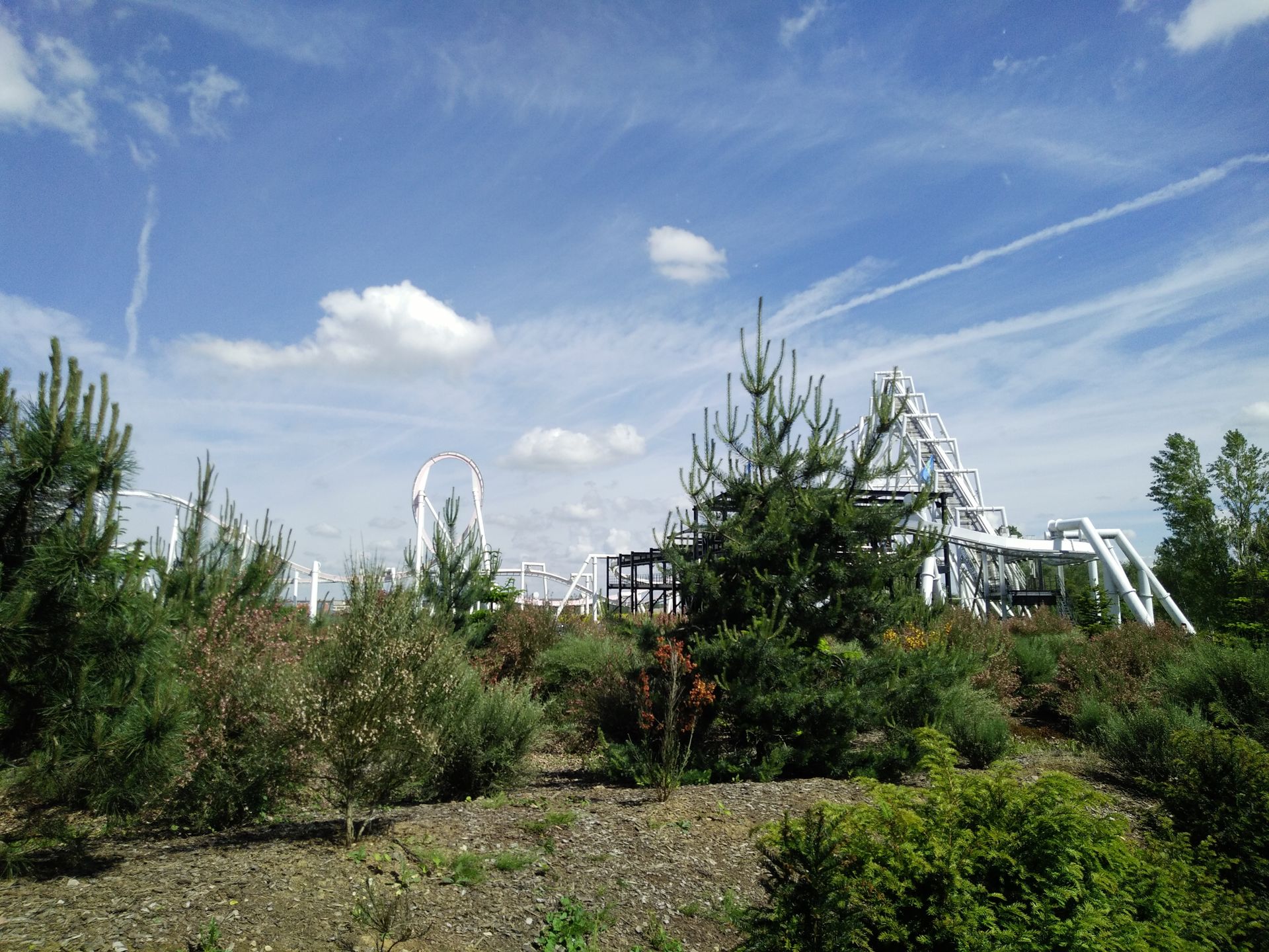 Bei der Anfahrt konnten wir erkennen, das mindestens zwei der vier Achterbahnen im rechten Parkteil zu finden sind, daher wählten wir zunächst den Weg nach rechts.