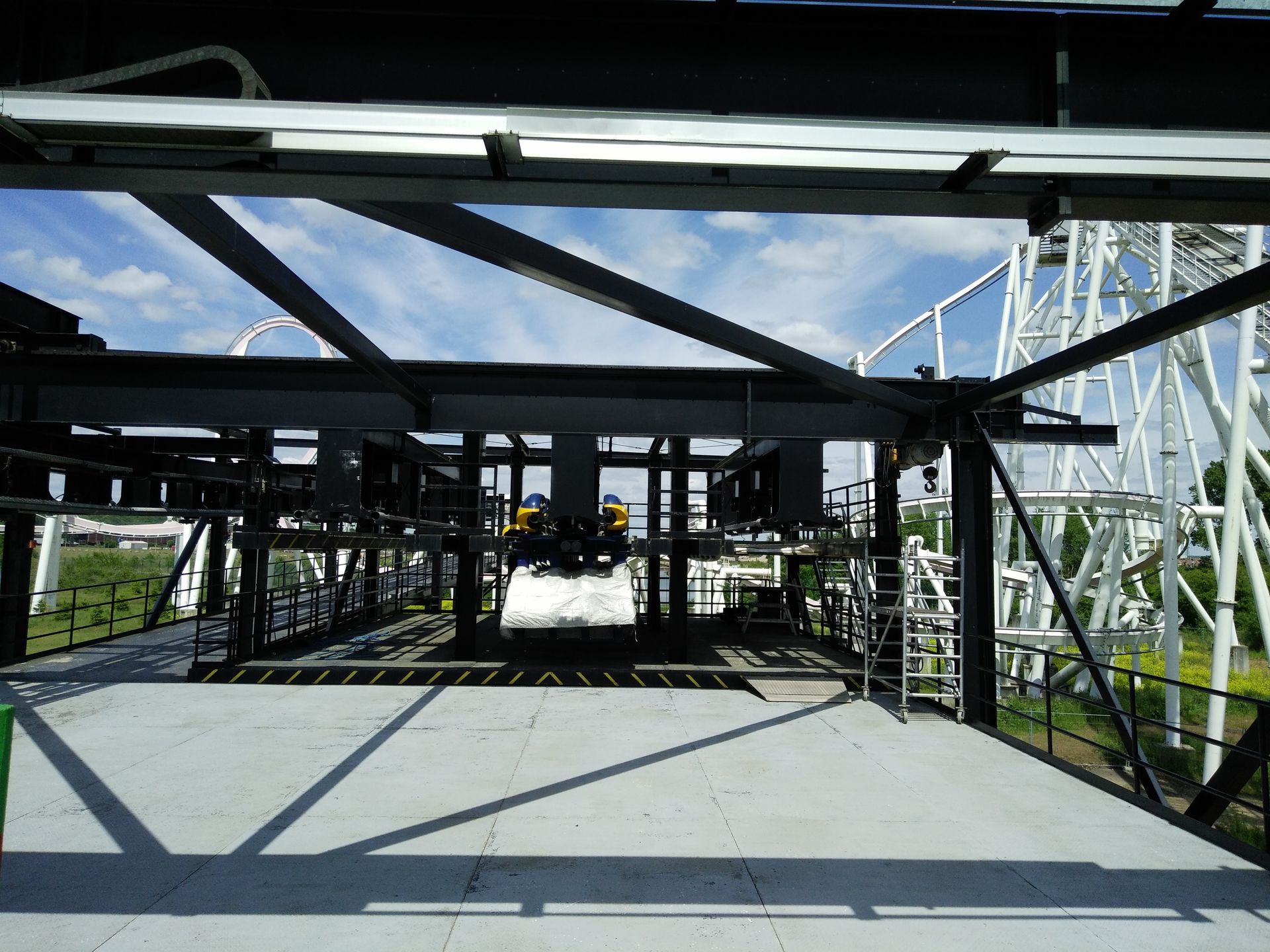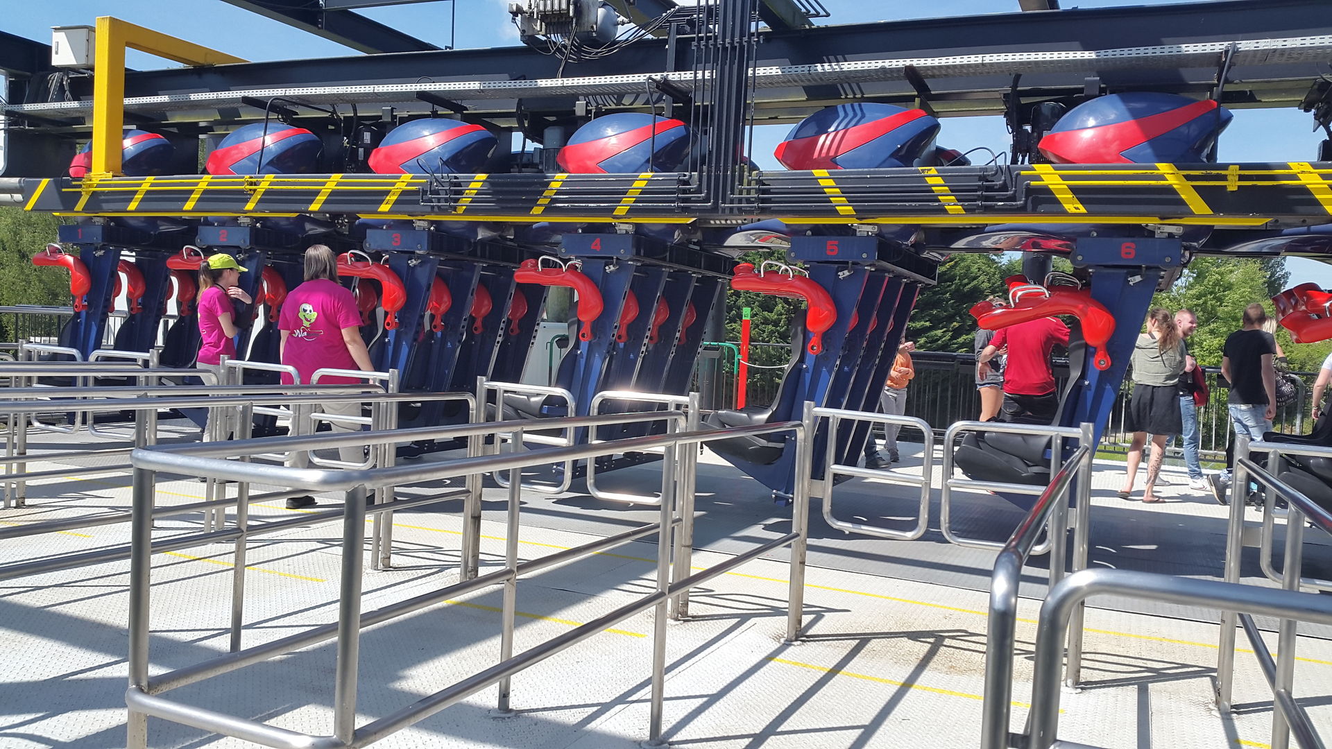 Das hier sollte nun bezwungen werden. Zunächst gab es bei der Abfahrt allerdings noch ein paar Problemchen: Der Zug stoppte kurz nach dem Start wieder. Die ersten Reihen hingen zu diesem Zeitpunkt bereits vorne aus der Station. Die automatische Ansage und die Mitarbeiter riefen irgendwas mit Evakuieren und Techniker... Der gut gelaunte Techniker evakuierte dann den Zug. Also fast. Er schickte uns erstmal auf die Strecke und überlegte dann, ob er nun noch irgendwas machen muss, der Eingang wurden nämlich tatsächlich gesperrt...