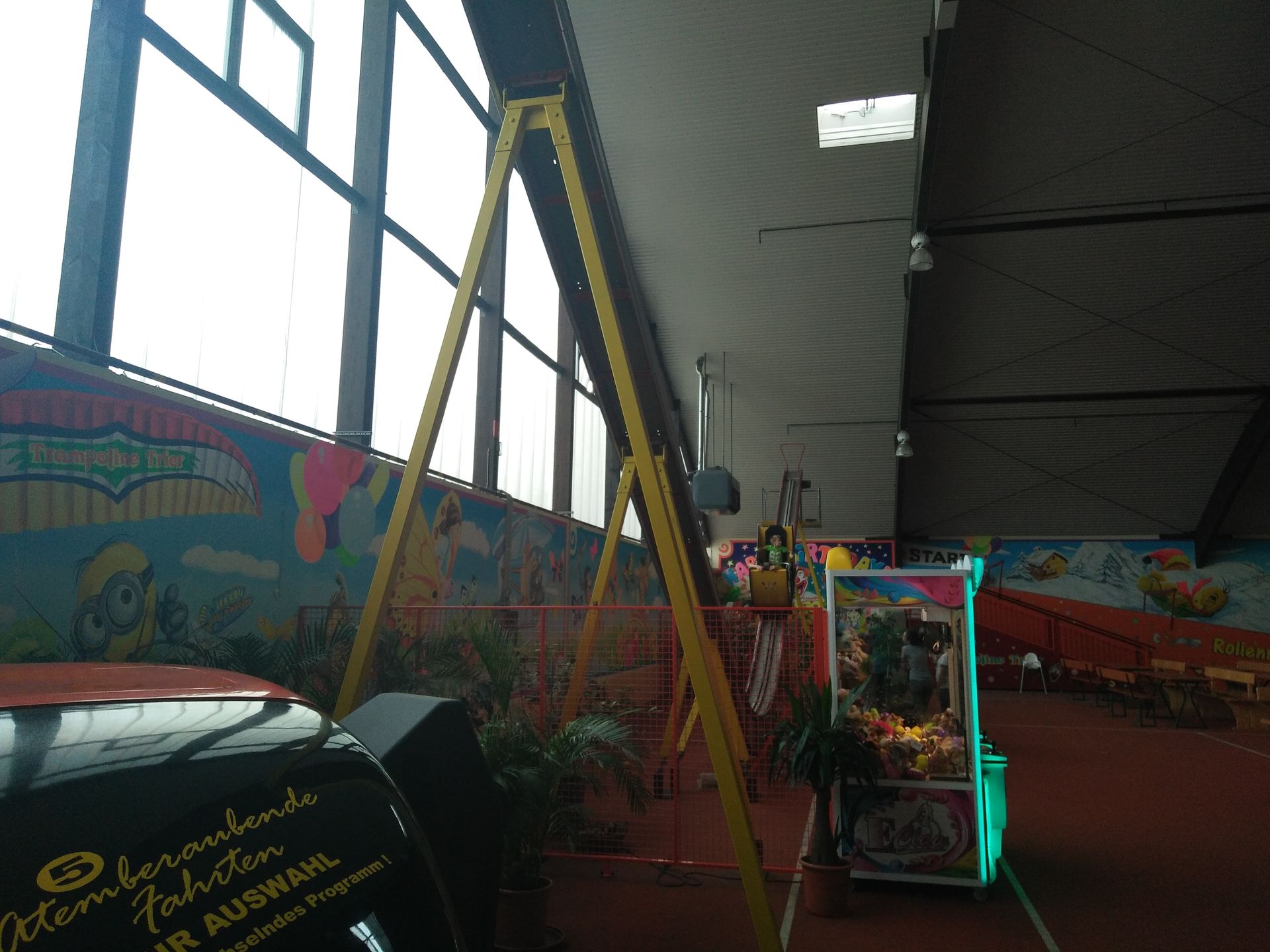 Bevor Ihr über die Größe schockiert seid: Da hinten geht es noch ein gutes Stück weiter. Die Halle besteht nicht nur, wie auf den ersten Blick denkbar, aus Butterfly, Karussell Luna Loop und Heege-Turm