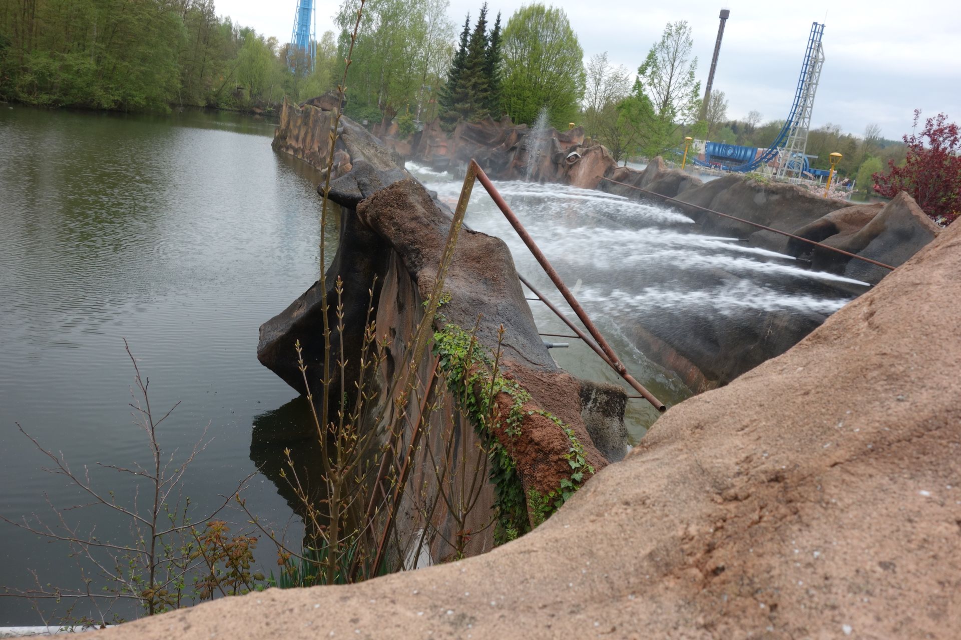 Wir wollten nämlich nicht wieder unnötig Zeit in einer Warteschlange vergeuden. Und so führte uns der Weg zur Wildwasserbahn Flashback, bei der nicht eine Person wartete. Die Anlage von