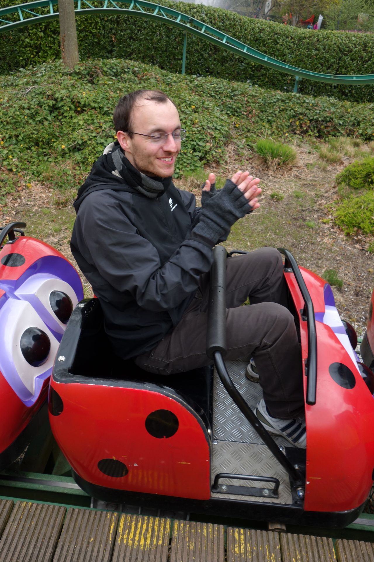 Nach einer Wiederholungsfahrt Loup-Garou wollte Nicolas unbedingt den Top Spin testen. Leider war das Fahrprogramm unterirdisch.