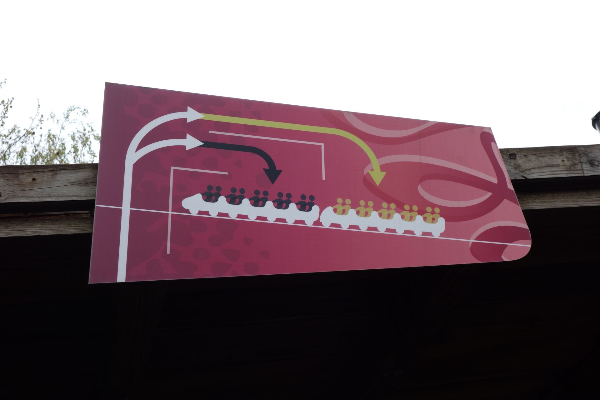 Leider hatte Onride sein Frohe cOaSTERN etwas ungünstig geplant und den Park bereits am Tag zuvor besucht, während einige Mitglieder an diesem Tag im Plopsaland weiterfeierten. Also genau andersrum als wir. Gerne hätten wir das irgendwie geändert, aber unsere Planung bestand nunmal schon länger und ließ sich nicht mehr in dieser Richtung ändern. Nicolas und ich mussten den Park also alleine erkunden. Bei unserer Ankunft irgendwann zwischen 10:30 und 11:00 Uhr war es noch immer leicht am Nieseln. Aus der Erfahrung mit der Fort Fun Jahreskarte gingen wir auch mit unseren FunCards an den Kassen vorbei und direkt zur Information, auch wenn nirgendwo mehr Leute anstanden. Nach dem Vorzeigen unserer Plopsa-Karten legte man mir ein Blatt Papier vor, auf dem ich Name und Unterschrift in einer Tabelle eintragen sollte. Unterdessen hatte der Mitarbeiter bereits unsere Eintrittskarten ausgedruckt und an Nicolas übergeben. Geld wollte er dafür allerdings nicht haben, was bei uns für etwas Verwirrung sorgte. Denn eigentlich sollte es mit der FunCard nur 40% Rabatt geben. Aber gegen 100% hatten wir natürlich auch nichts einzuwenden.