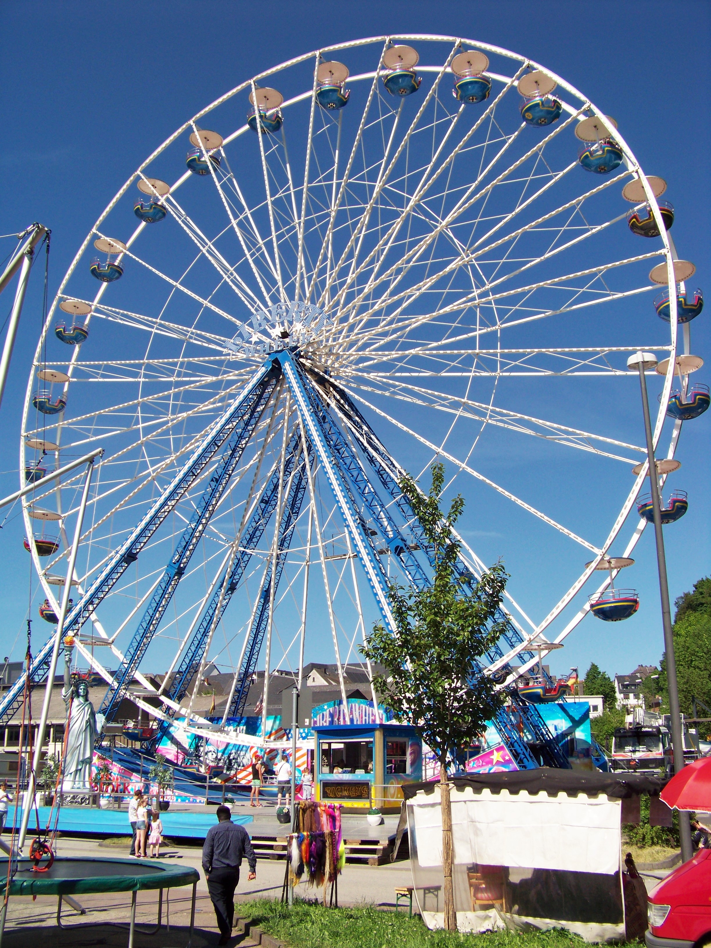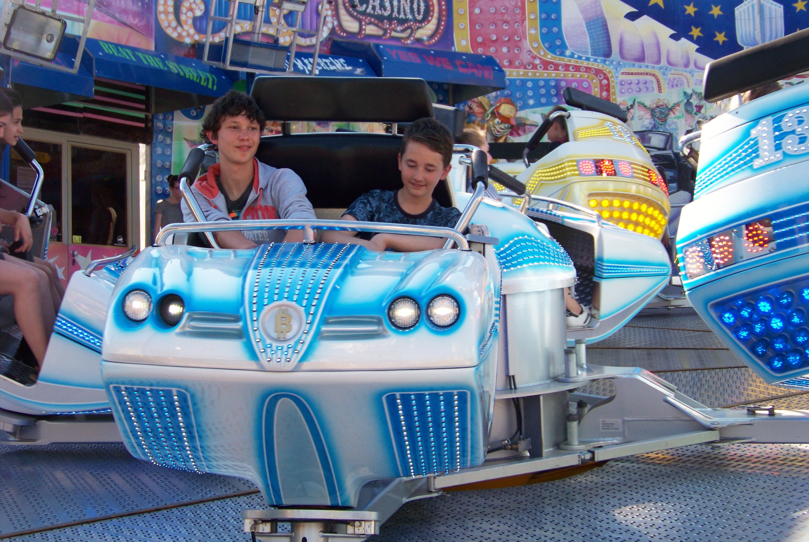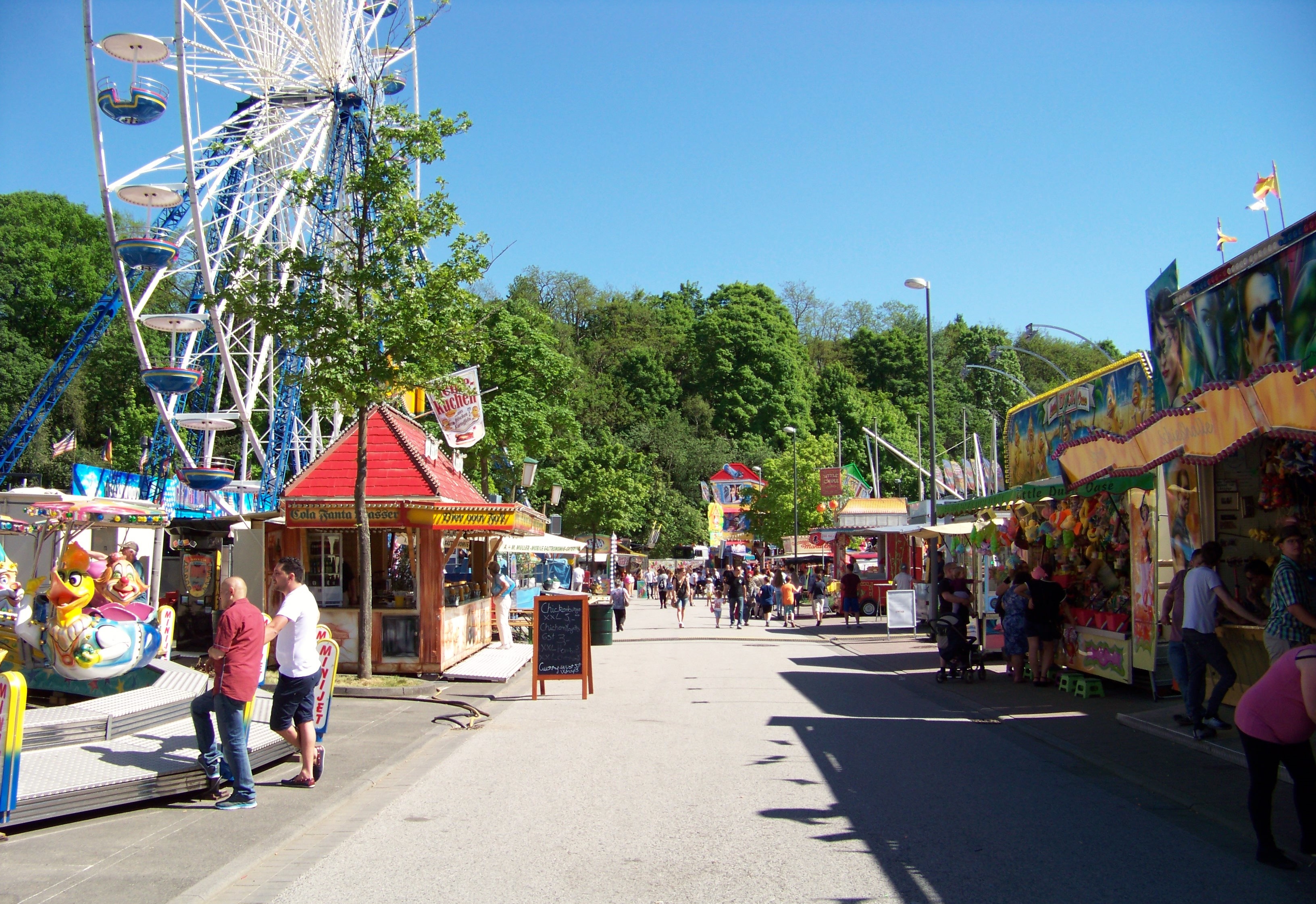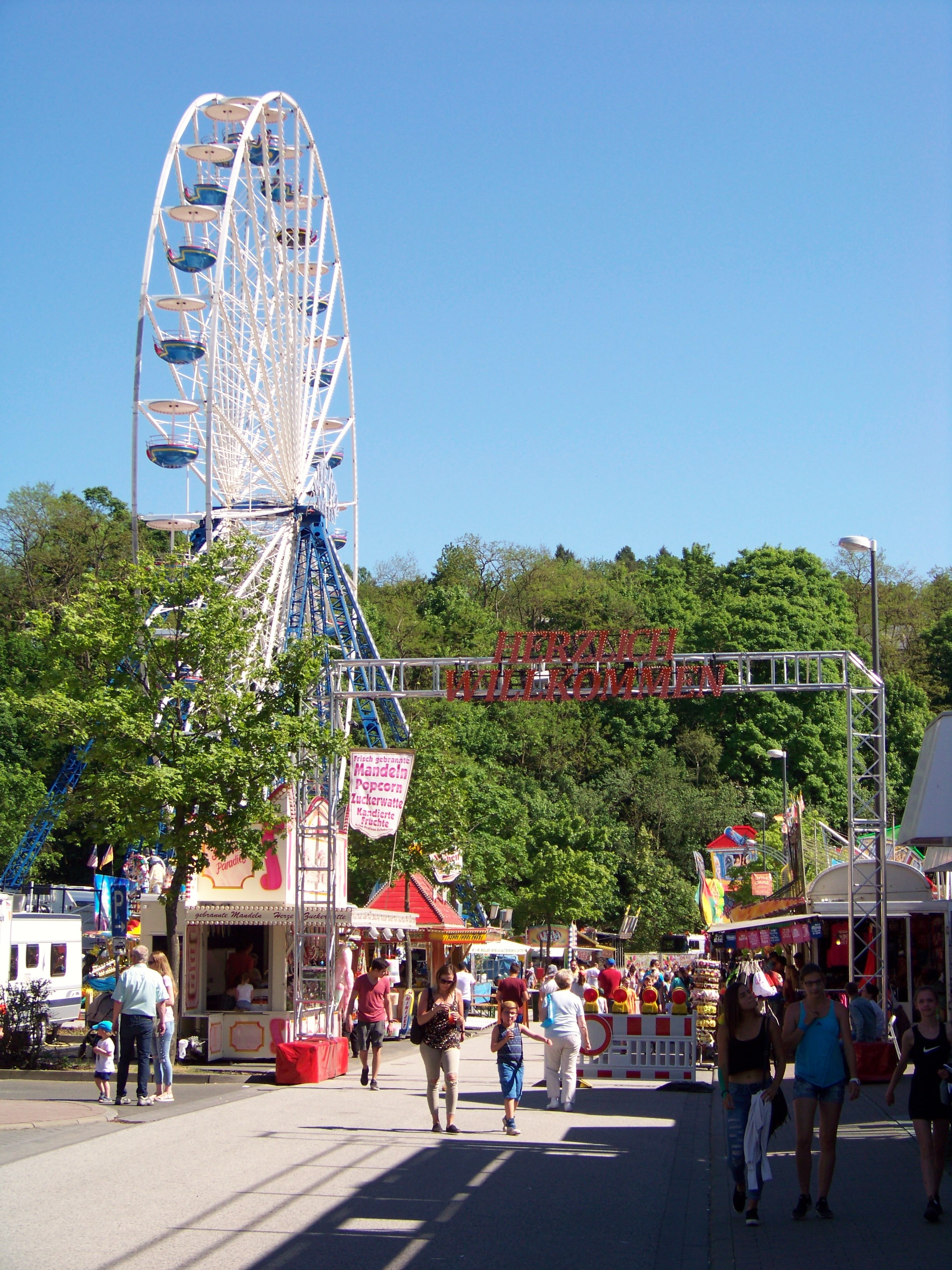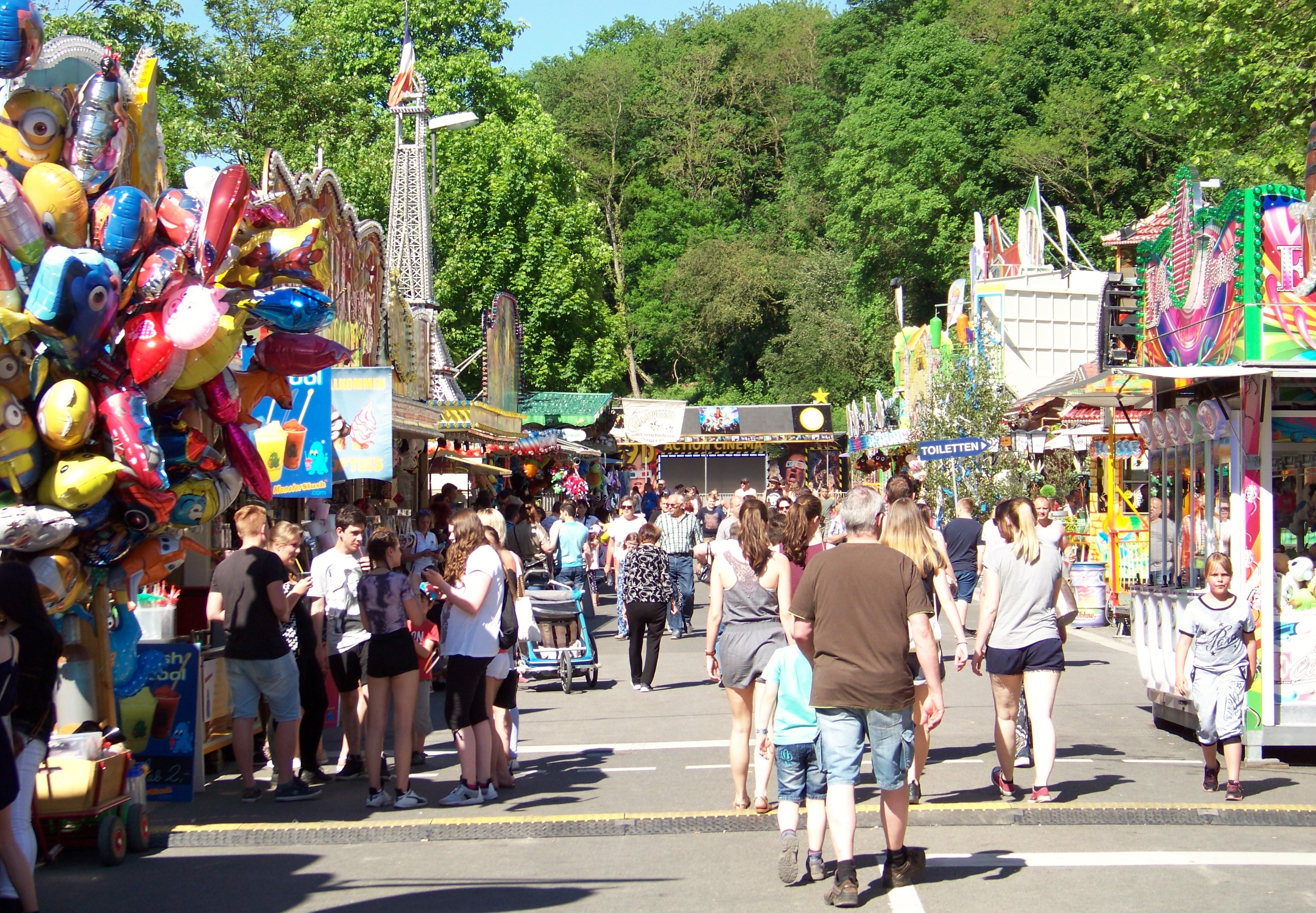 Der Maimarkt in Simmern hat seit meinem letzten Besuch (in 2010) sein Bild doch sehr geändert. Dort, wo damals noch Riesenrad und Adrenalin-Freifallturm standen, wurde in der Zwischenzeit ein Supermarkt eröffnet, der immerhin kostenlose Parkplätze direkt am Kirmesareal bietet. Verkleinert hat sich der Maimarkt dadurch nicht, denn die Fläche der Veranstaltung, wurde in Richtung der Simmerner Innenstadt erweitert. Allerdings stehen auch in den nächsten Jahren noch große Veränderungen an, da auch der Schotterplatz gegenüber des neuen Supermarktes bebaut werden soll. Geplant ist, die Kirmes noch mehr ins Ortszentrum hinein zu holen.