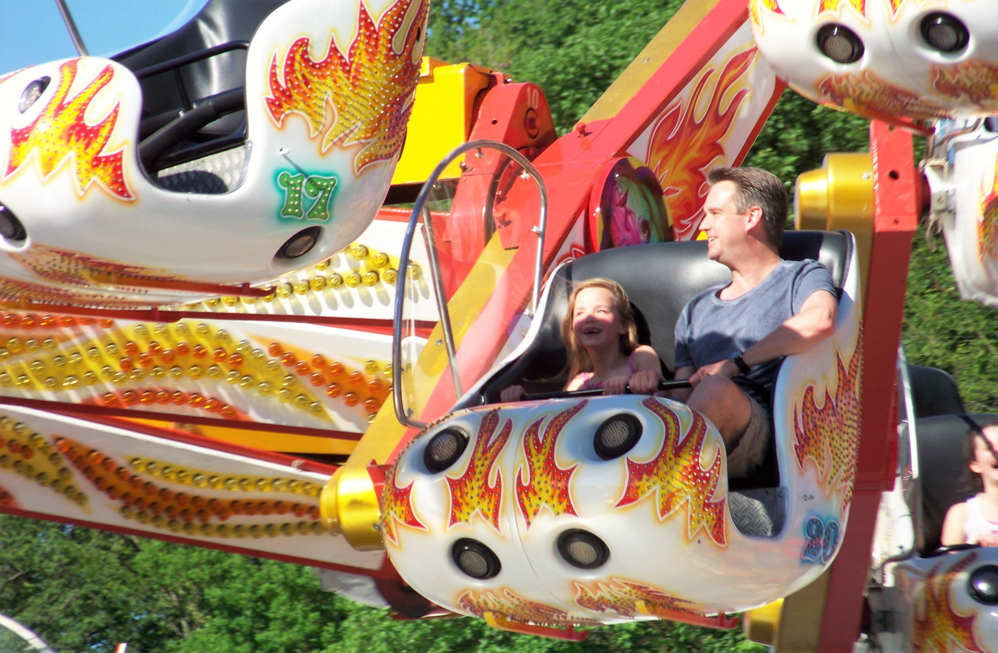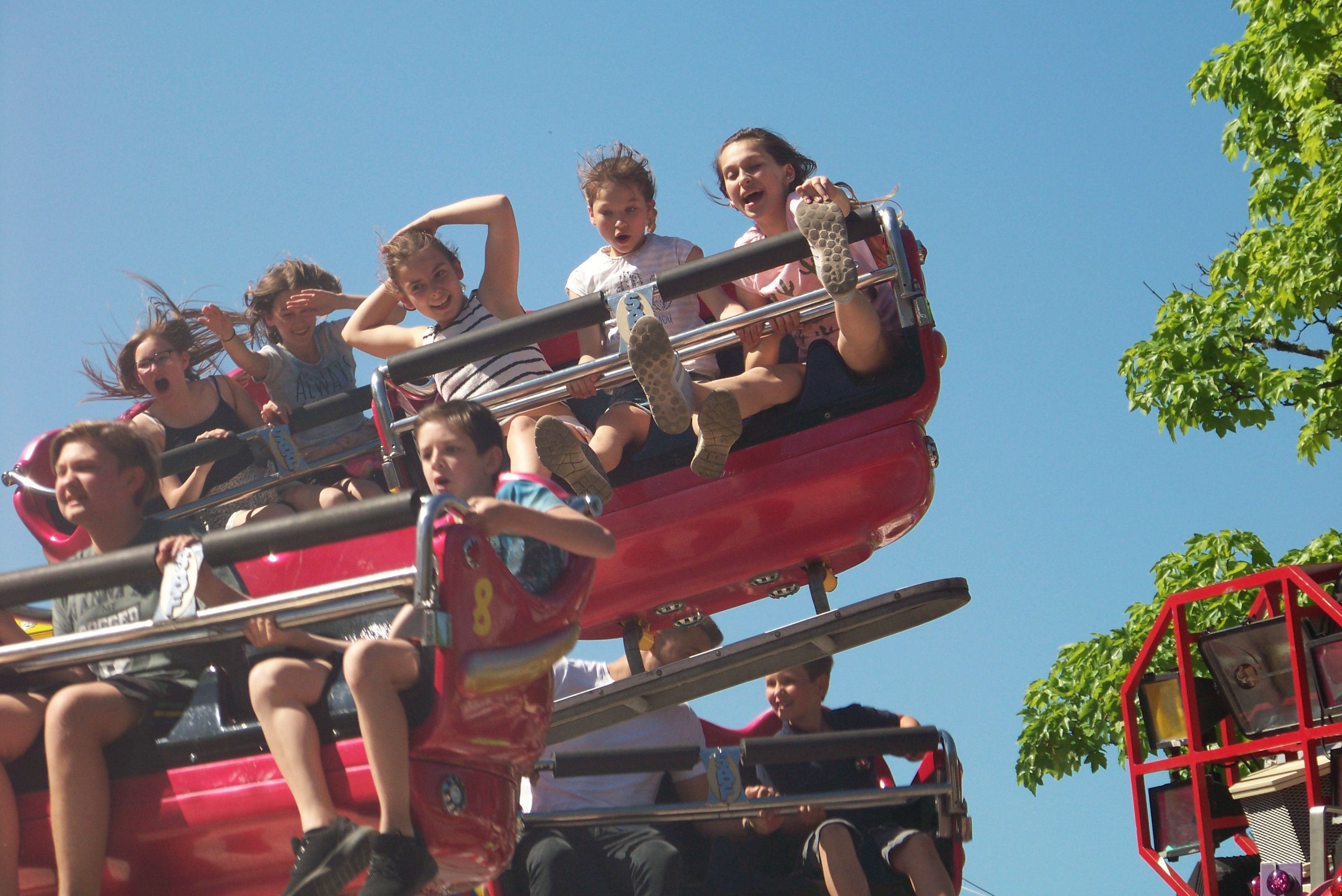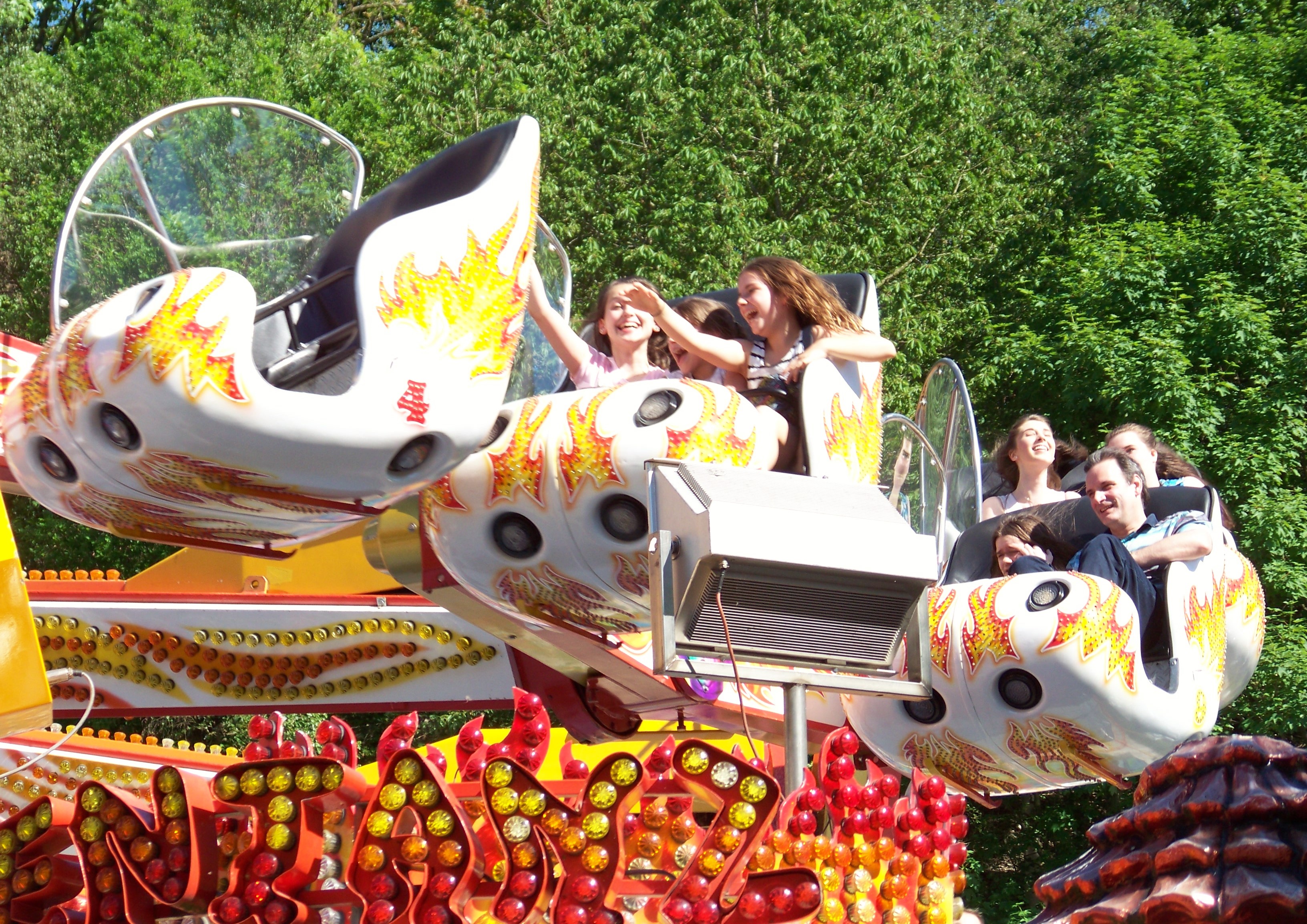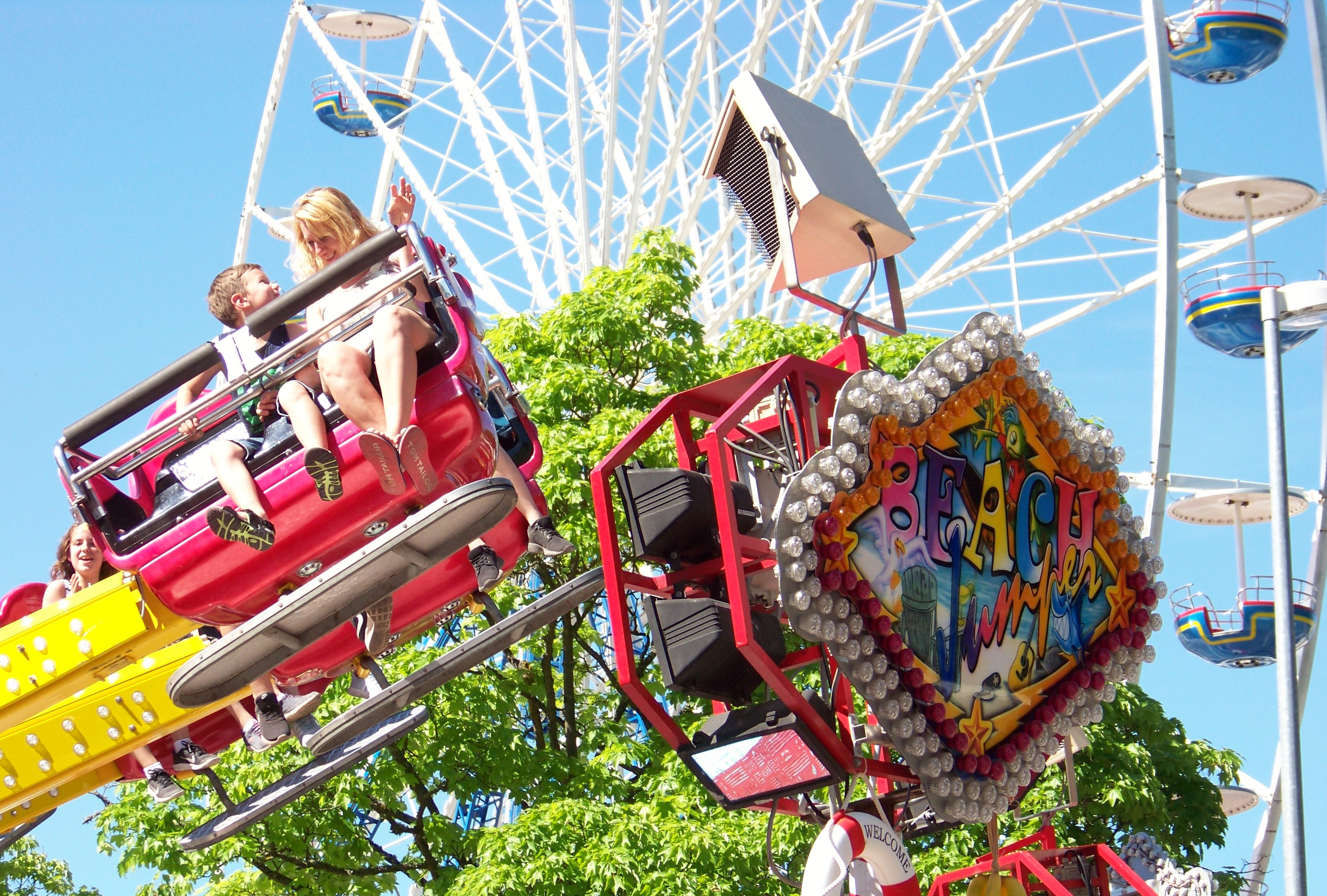 Auf der Ecke am Schwimmbad, wo der Weg in Richtung des alten Festgeländes abbiegt, stand das erste von insgesamt drei Rundfahrgeschäften, die dieses Jahr auf dem Maimarkt gastierten: der Beach Jumper von Wegener, der bei heißen Temperaturen am Samstagnachmittag bei allen Fahrten voll fuhr und eine tolle Show bot (dank Becherspiel).