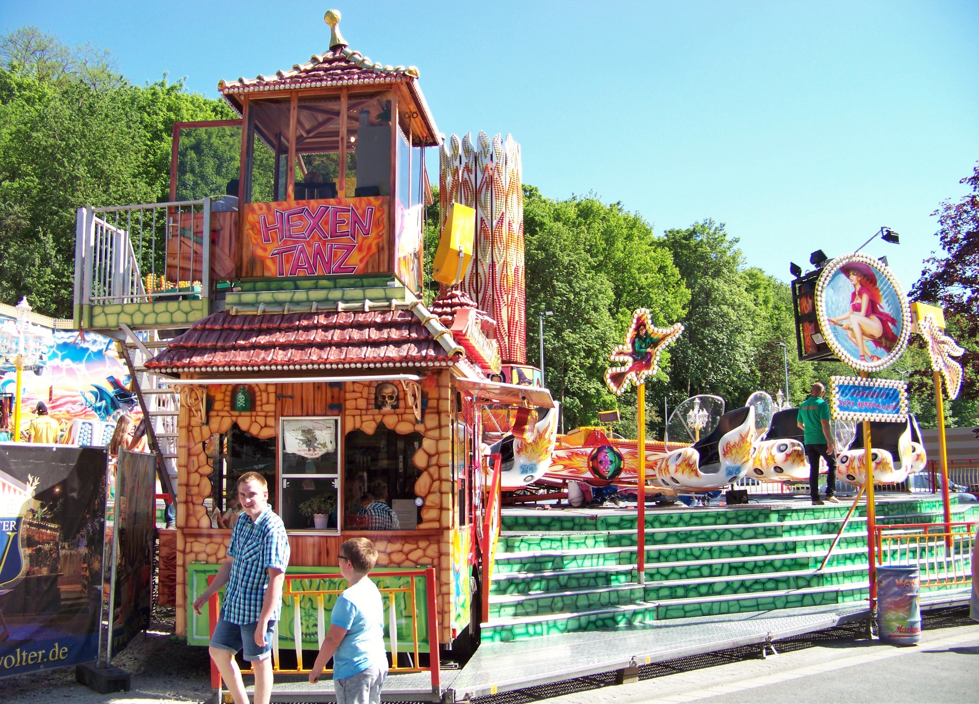 Direkt neben dem Parkplatz des neuen Supermarktes wurde der Hexentanz von Markmann platziert, der es Samstag nicht ganz so leicht hatte, seine Fahrgäste zu finden.