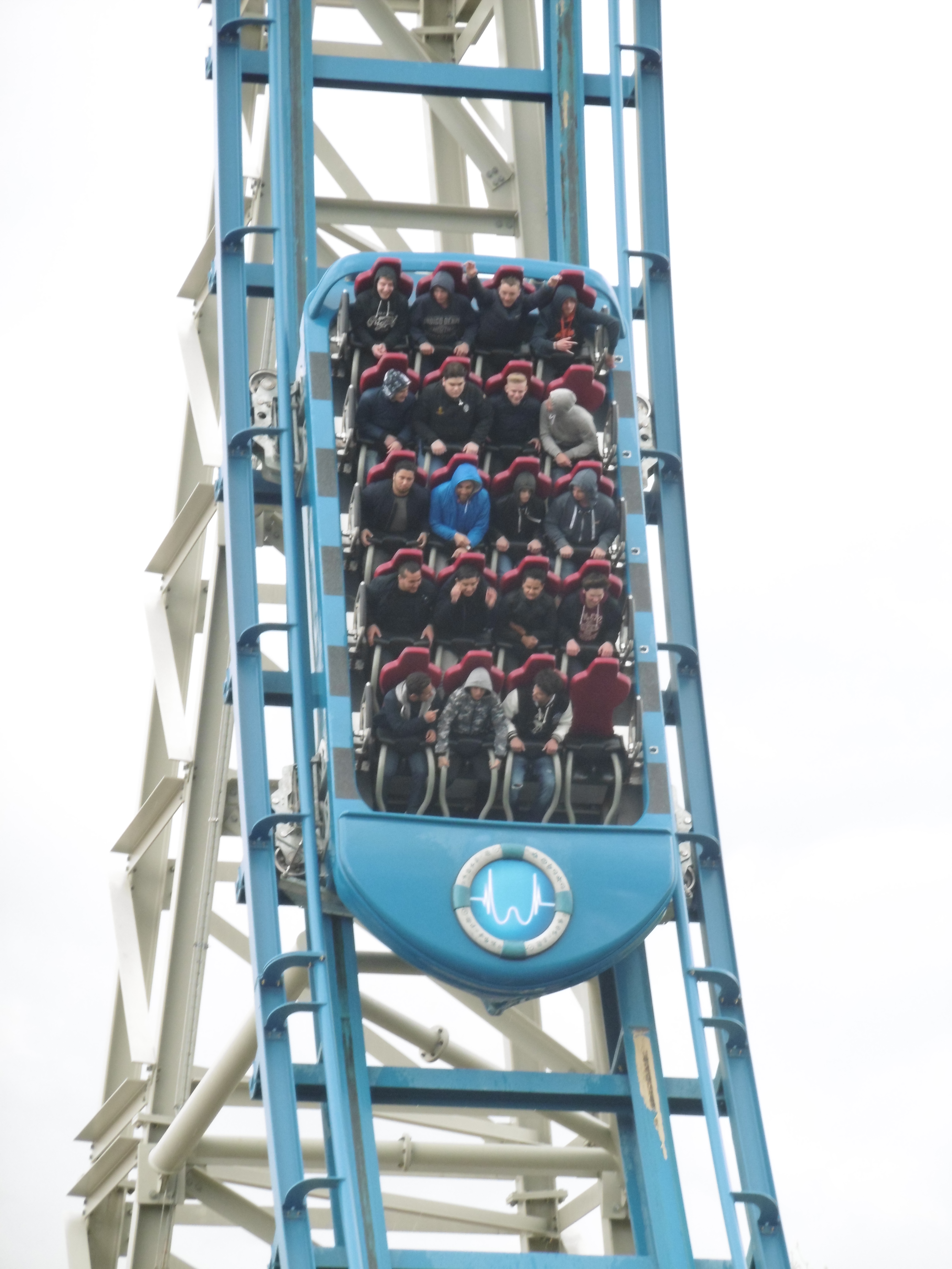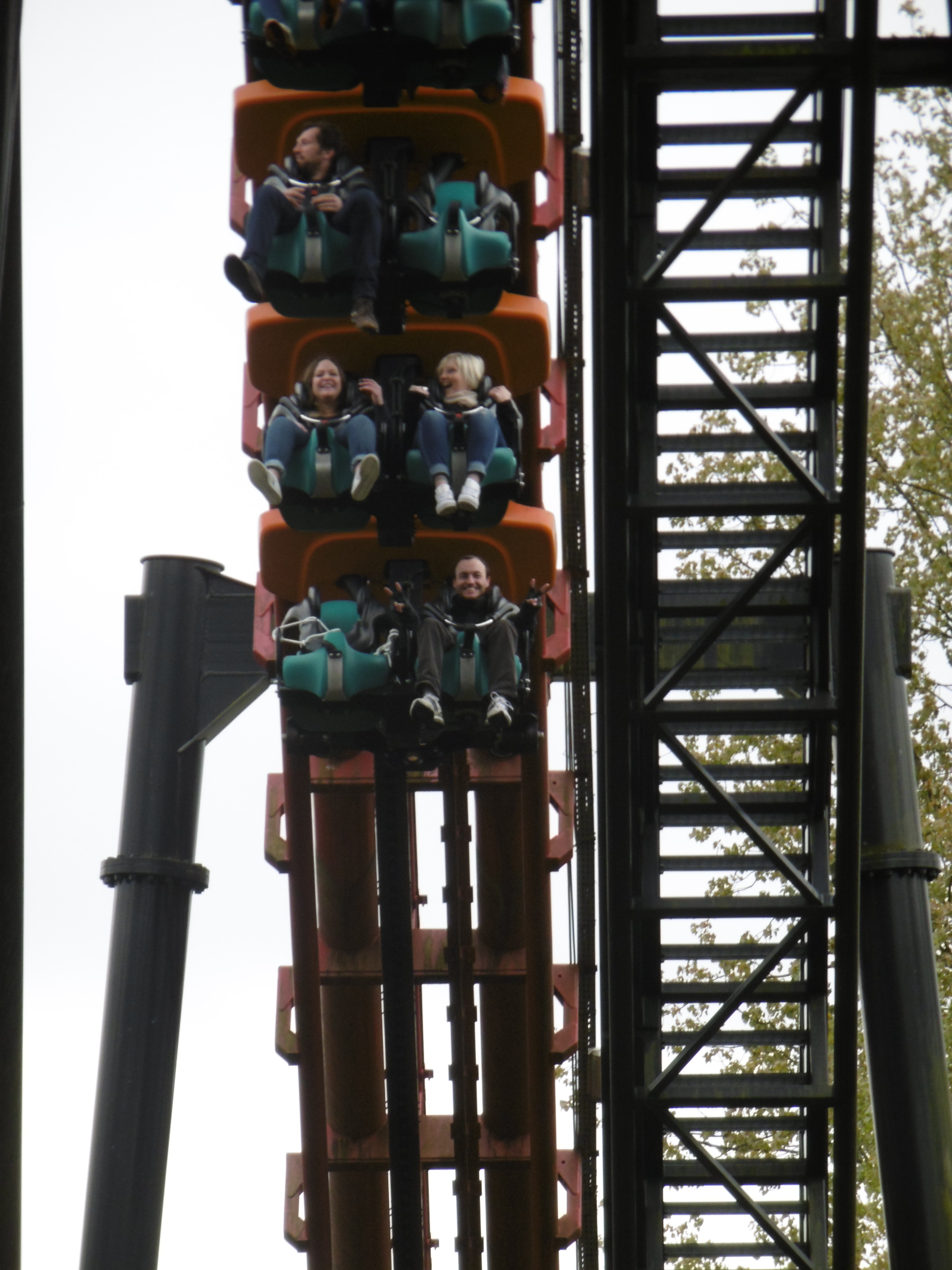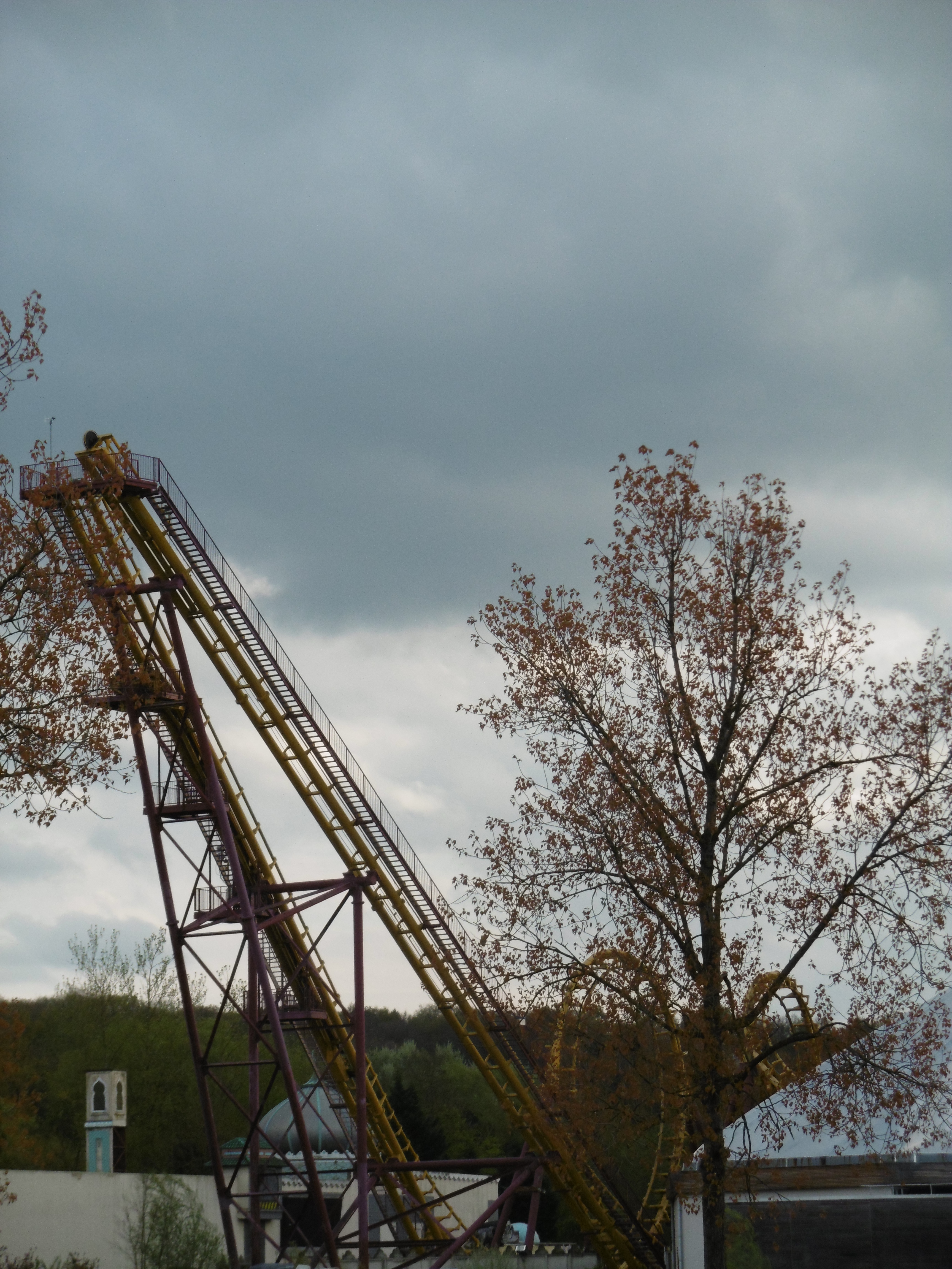 Mit 77 Metern Höhe die höchste Attraktion im Park und aufgrund des nachlassenden Regens auch mit ein wenig Wartezeit. Die Aussicht ist super und zeigte leider eine der wenigen Schattenseiten des Parks: Eine leere Grünfläche von einer verschwundenen Achterbahn (leider ein Superwirbel Klon ...). Den Fall fand ich bei dieser einzigen Fahrt des Tages aber nicht so spannend wie in Port Aventura oder auf meinem Heimat-Tower.