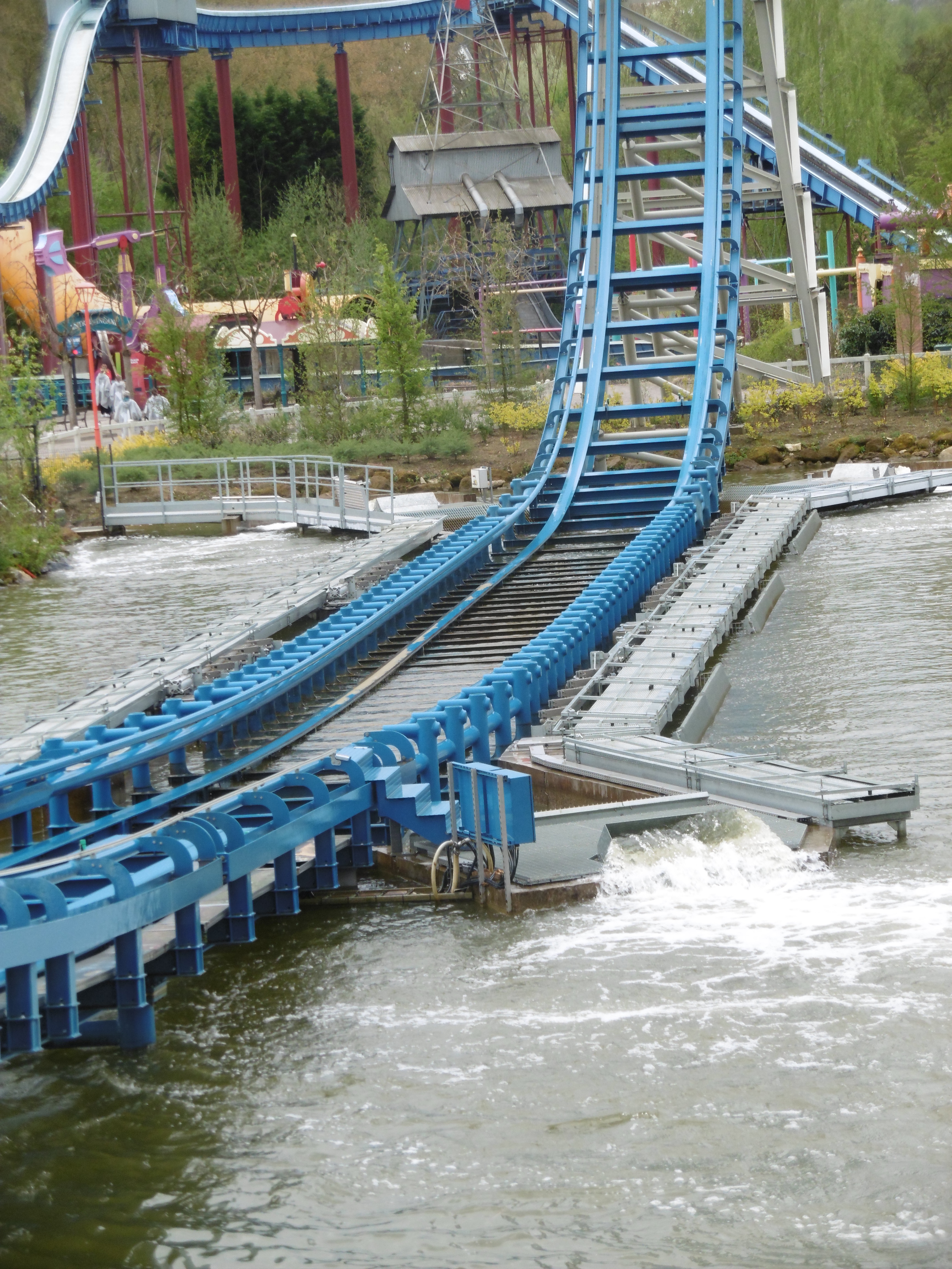 Die Gestaltung mag etwas trashig aussehen, während der Fahrt und durch die in den Röhren befindlichen Lichteffekte wirkte es dann aber doch einigermaßen. Auch die Fahrt mit einem Rückwärtsdrop und dem Double Down kann überzeugen, wobei sich der Nässegrad glücklicherweise auf ein paar wenige Spritzer beschränkte.