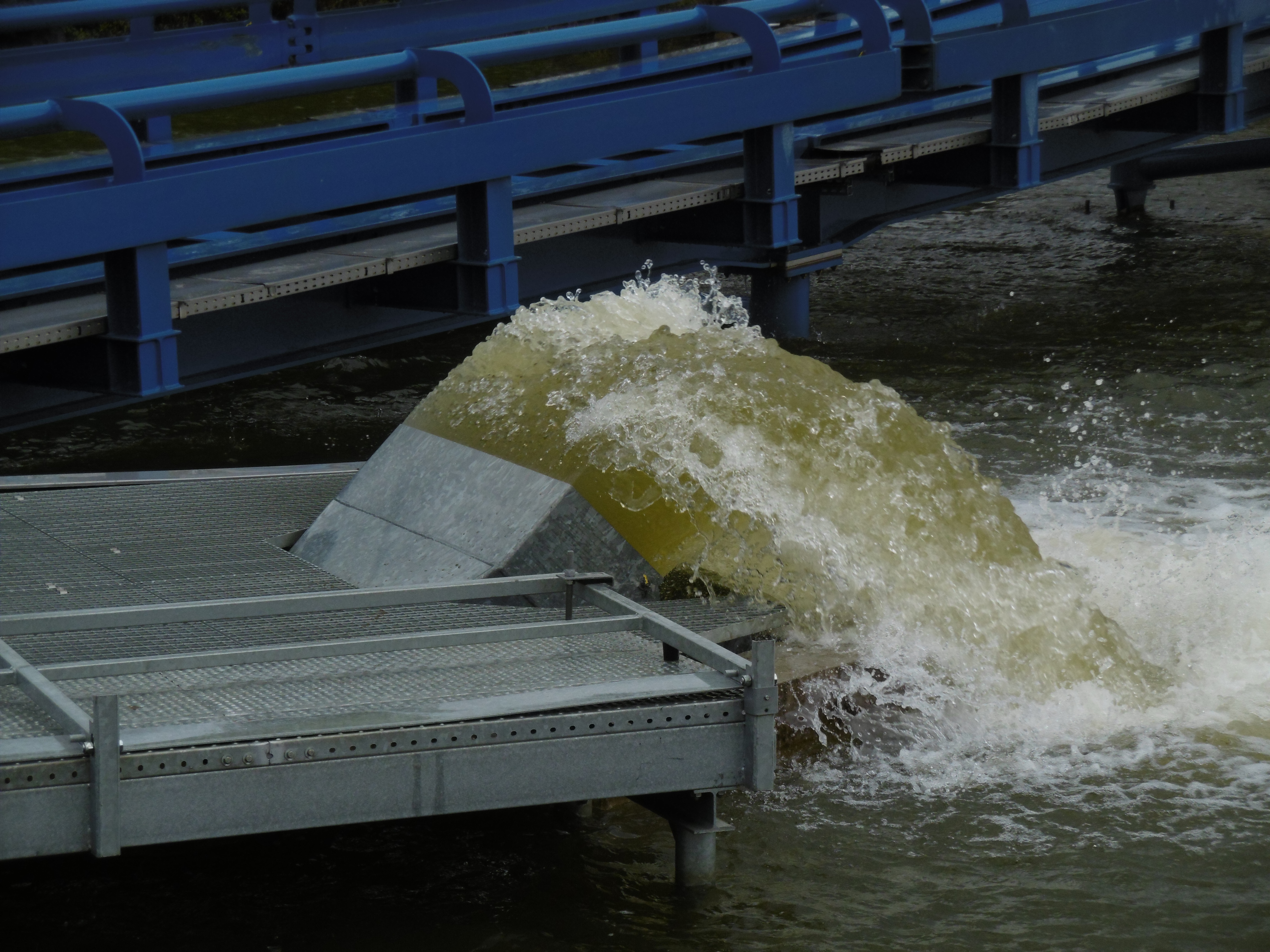 Gleichzeitig beginnen vier kräftige Pumpen das Landebecken wieder auszupumpen.