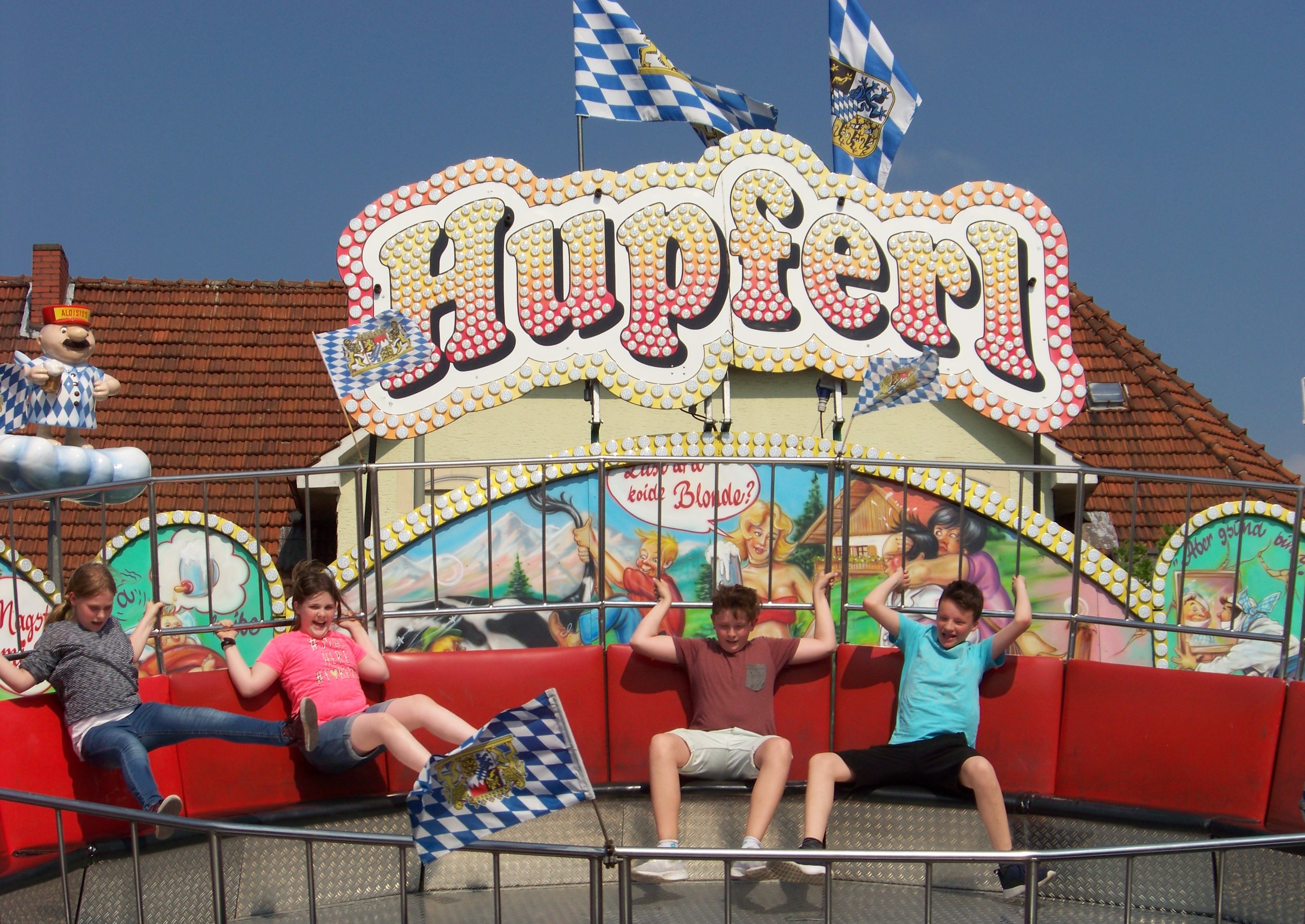 Begibt man sich vom Aussichtsturm aus auf den Rundweg um den Marktplatz begegnen einem auf der ersten Ecke der Autoscooter „Hard Rock Drive“ von Schneider und das Hupferl von Roder.