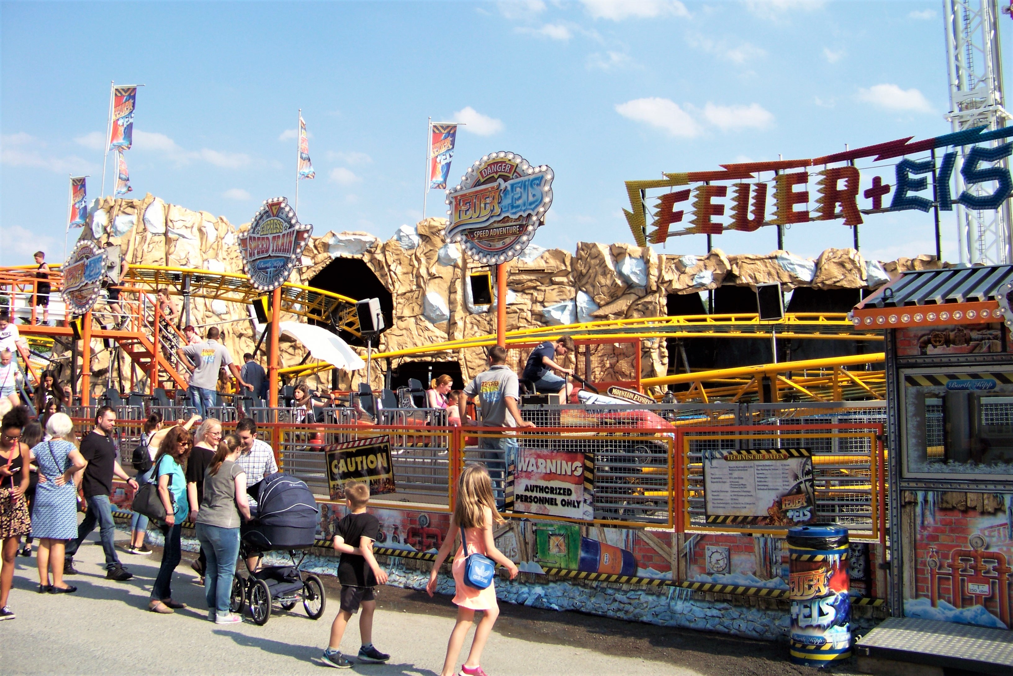 Im Rundlauf schließt sich das zweite Highlight der diesjährigen Beschickung an: Der Powered Coaster „Feuer und Eis“ von Barth und Kipp.