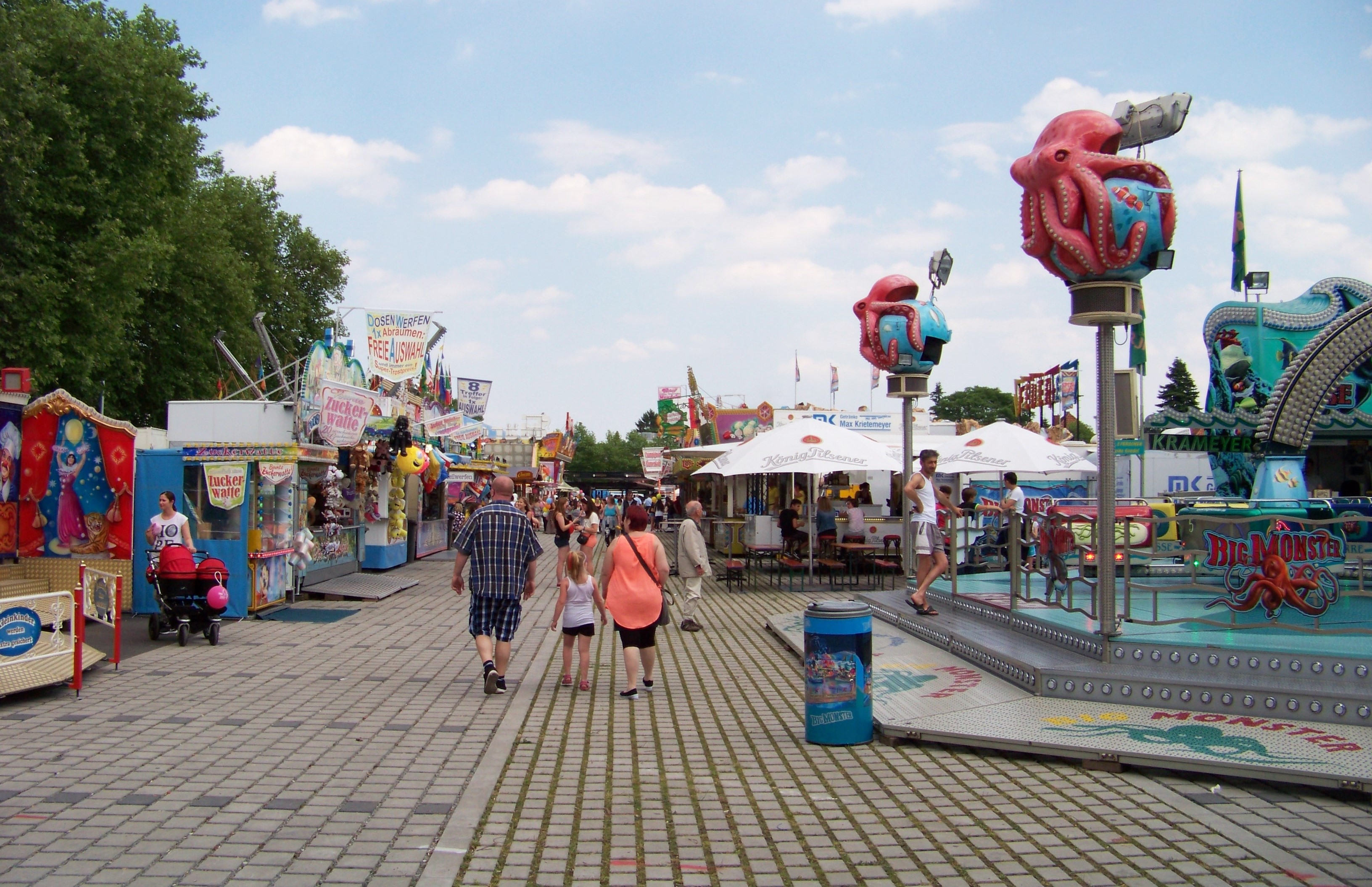 Die größte Änderung im aktuellen Layout ist die Anbindung des Haupteingangs zum Festplatz, der nicht mehr auf den Nebenplatz geleitet wird (bislang besteht die Fläche der Gütersloher Kirmessen aus dem großen Marktplatz und einem daran angeschlossenen Nebenplatz), sondern direkt auf den Marktplatz, wo das diesjährige Highlight, der City Skyliner, direkt vor Kopf steht. Womit der alleinige Höhepunkt in Sachen vertikaler Ausdehnung der aktuellen Pfingstkirmes schon erreicht wäre, denn ansonsten nimmt sich die diesjährige Beschickung äußerst flach und insgesamt gesehen erstaunlich unspektakulär und arm an wirklichen Highlights heraus.