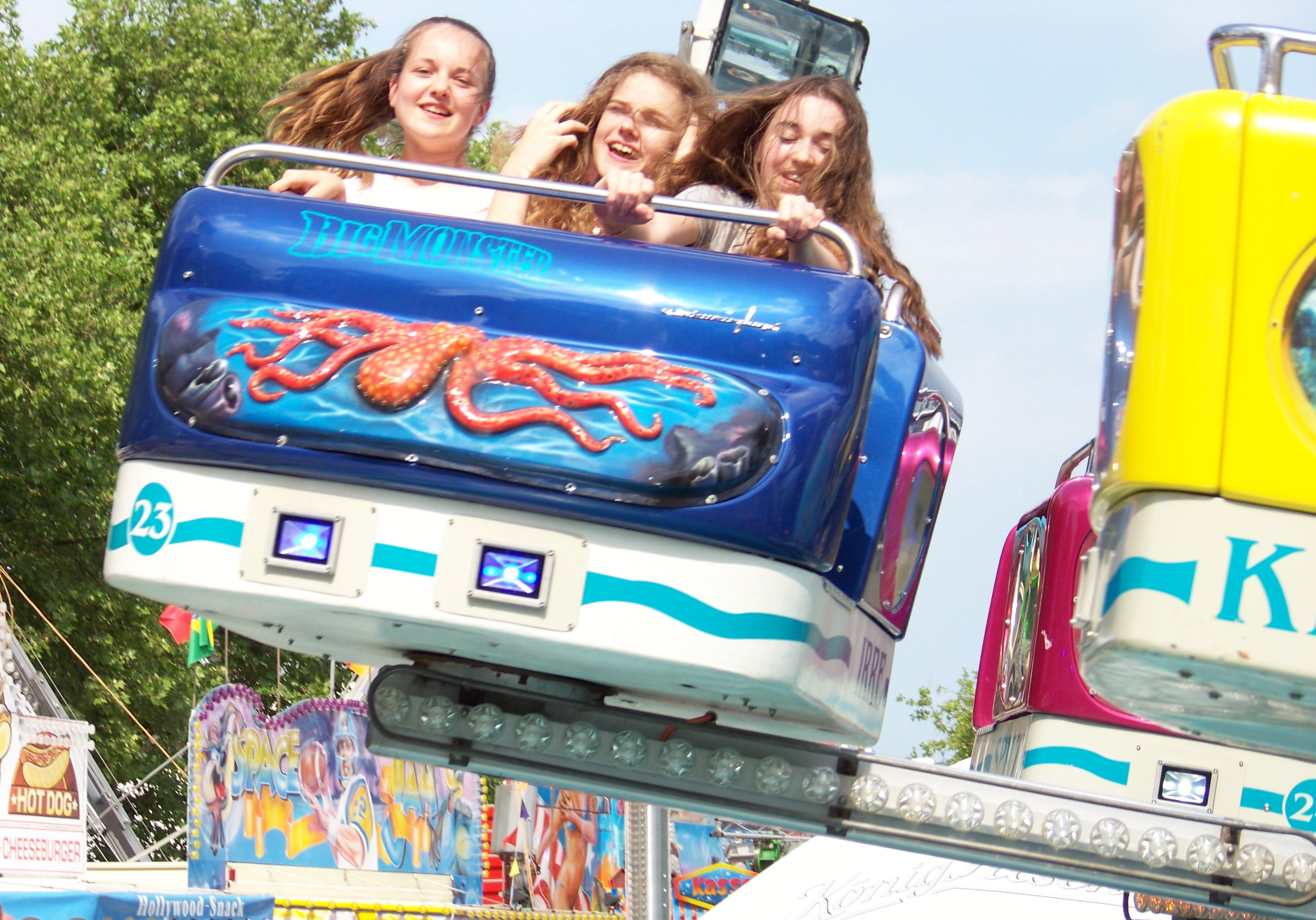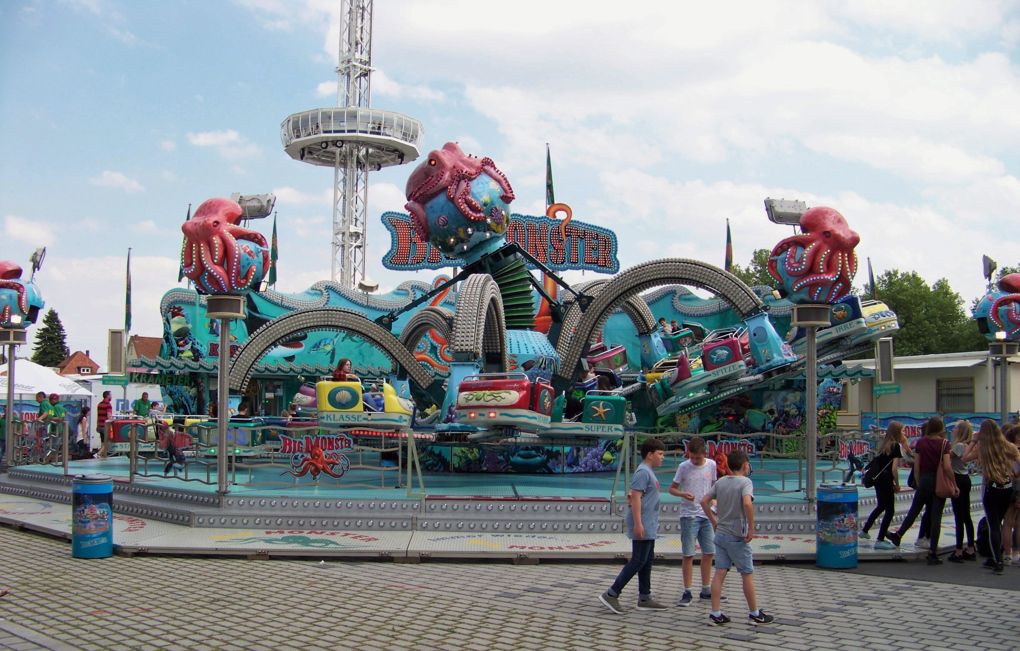 Kirmesecke Nummer drei bilden Krameyers Big Monster und – auf dem sonst für Hochfahrtgeschäfte reservierten Platz – das Laufgeschäft Ghost von Burghard.