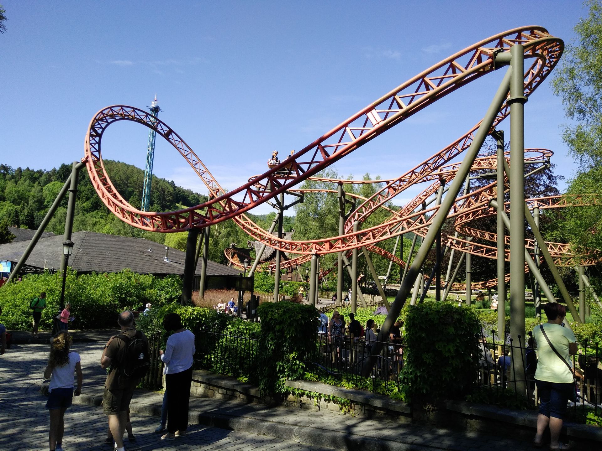 Da ihm mit Plopsa Coo noch genau ein Plopsa-Park fehlte, legten wir dort den ersten Zwischenstop ein. Uns erwartete ein sehr gut gefüllter Park, wir konnten viele Wartezeiten allerdings ganz gut umgehen, da sich die Besuchermassen sehr stur von vorne nach hinten durch den Park bewegten. Aber auch bei meinem nun dritten Besuch dort, habe ich es nicht auf den laaaaahhhhhmmmmeeeen Sessellift und die Kartbahn geschafft...
