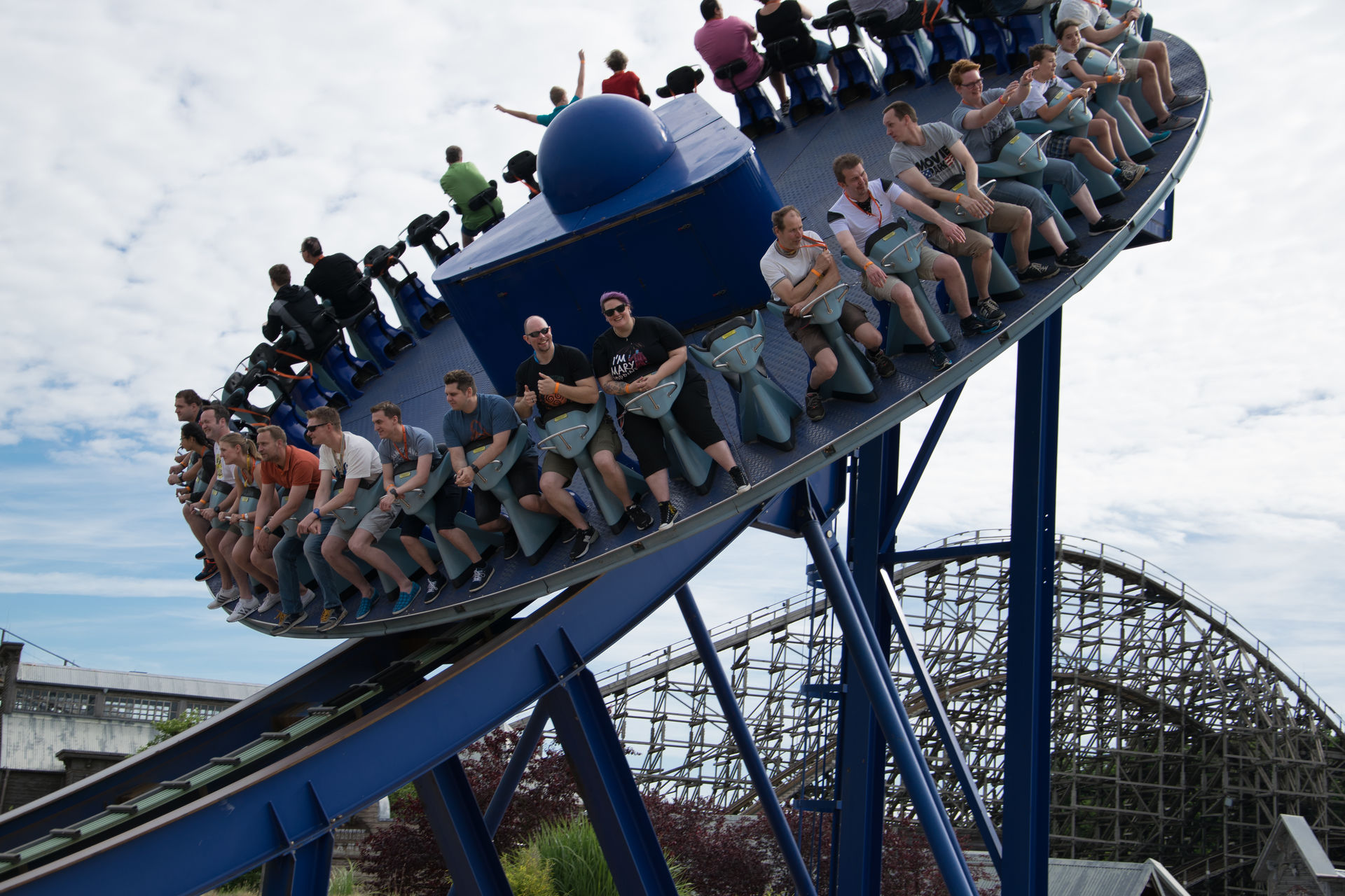 Die neue Bahn ist noch geschlossen, also zieht es die meisten, die nicht noch beim Frühstück sind erstmal zur ERT auf Van Helsing oder in richting Pier, wo der DiscO Coaster schon für uns fährt