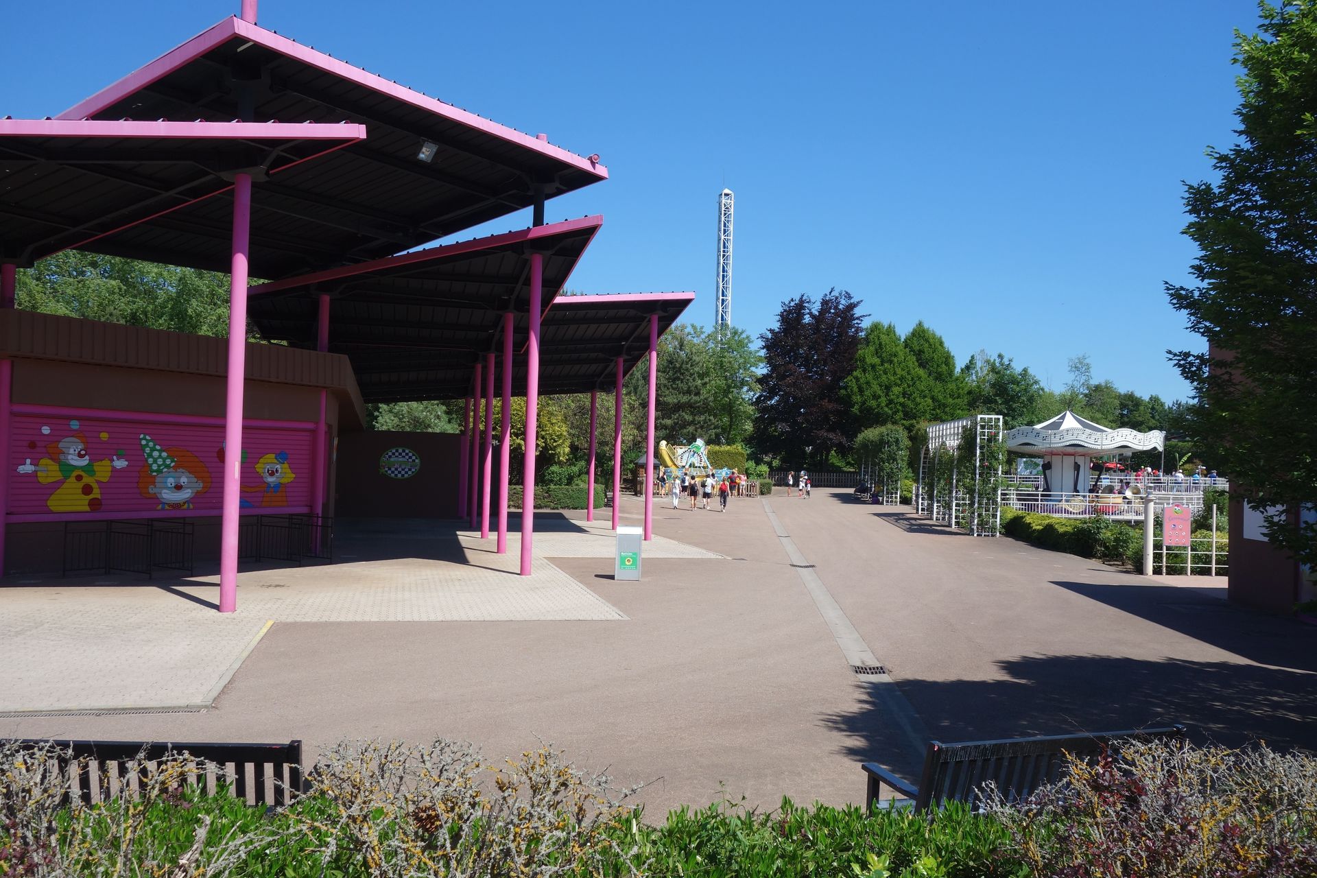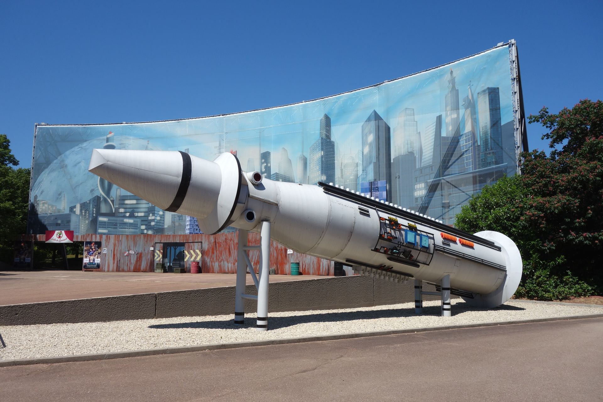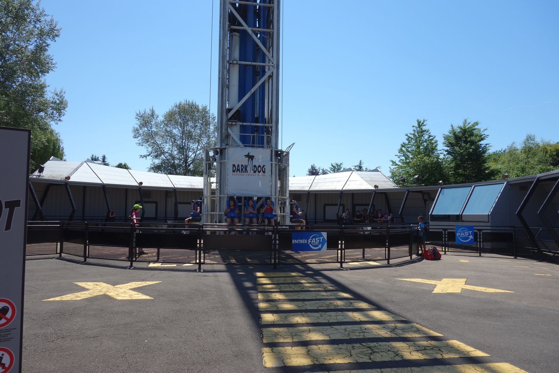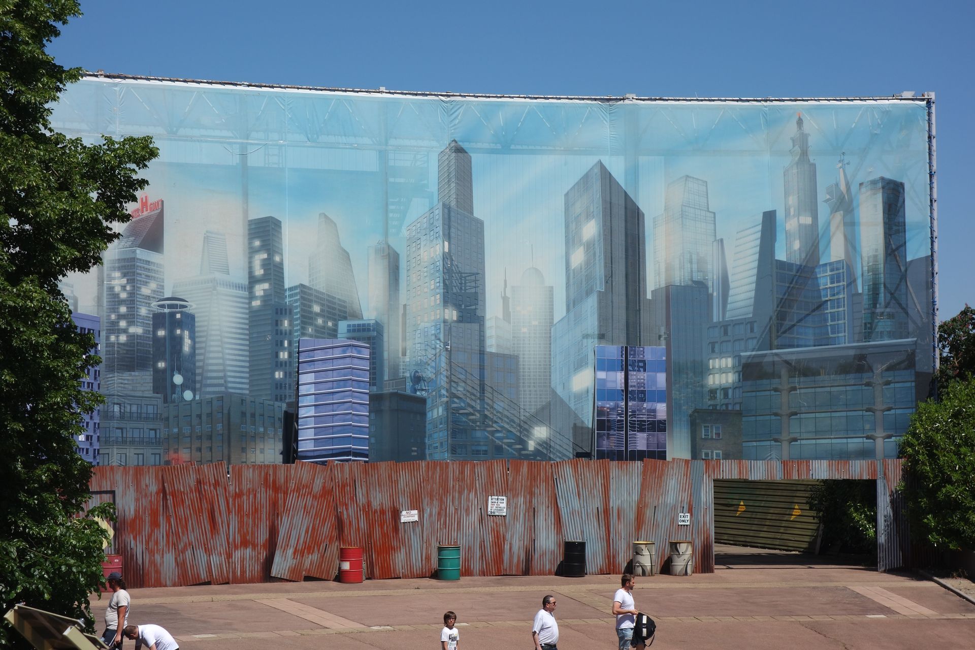Ich entschied mich daher für einen flotten Gang Richtung S&S-Turm, wo sich hinter der bedruckten Plane eine Halle befindet.