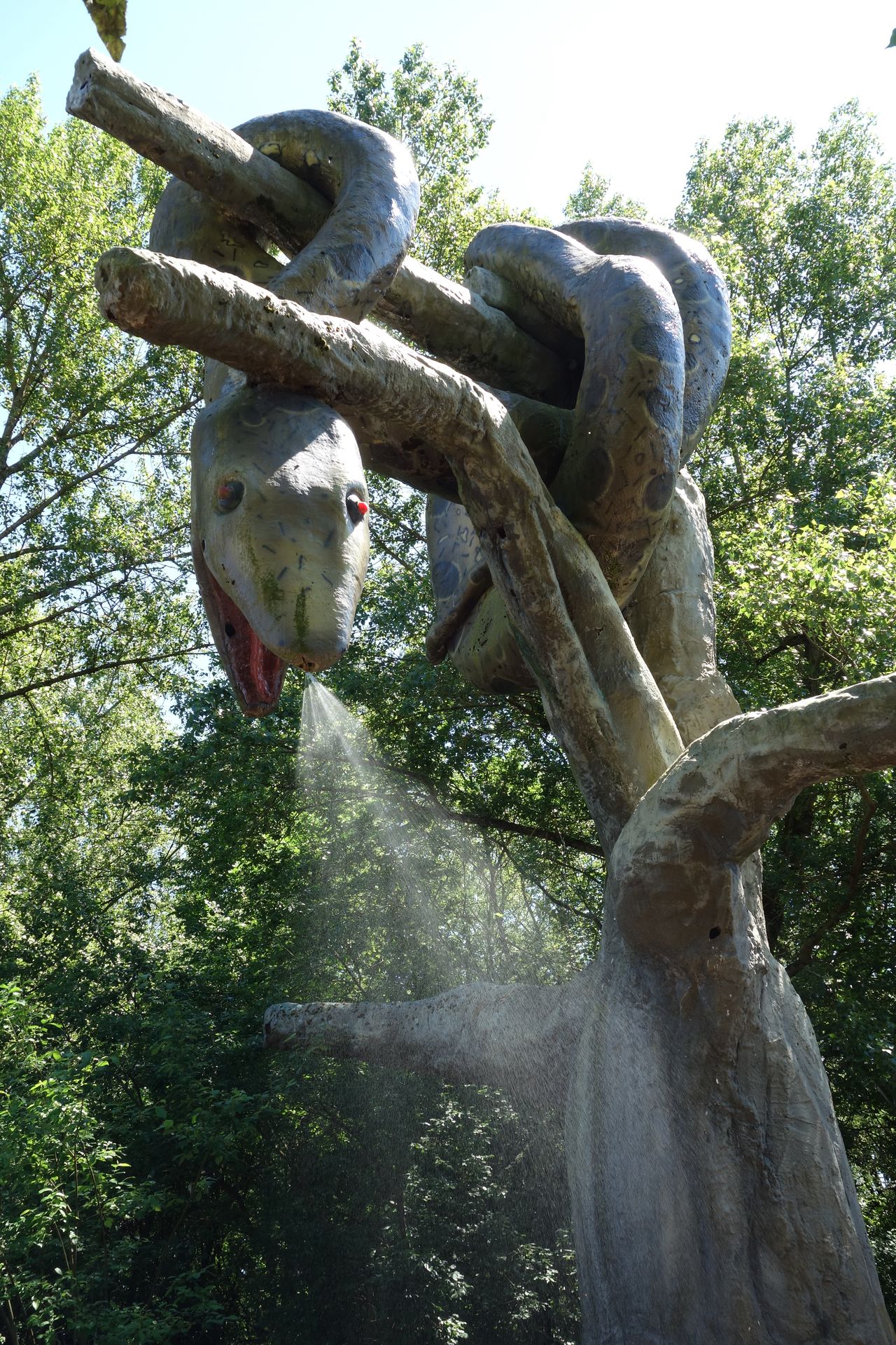 Der wasserspeienden Anaconda. An diesem heißen Tag ein beliebter Punkt besonders für Kinder.