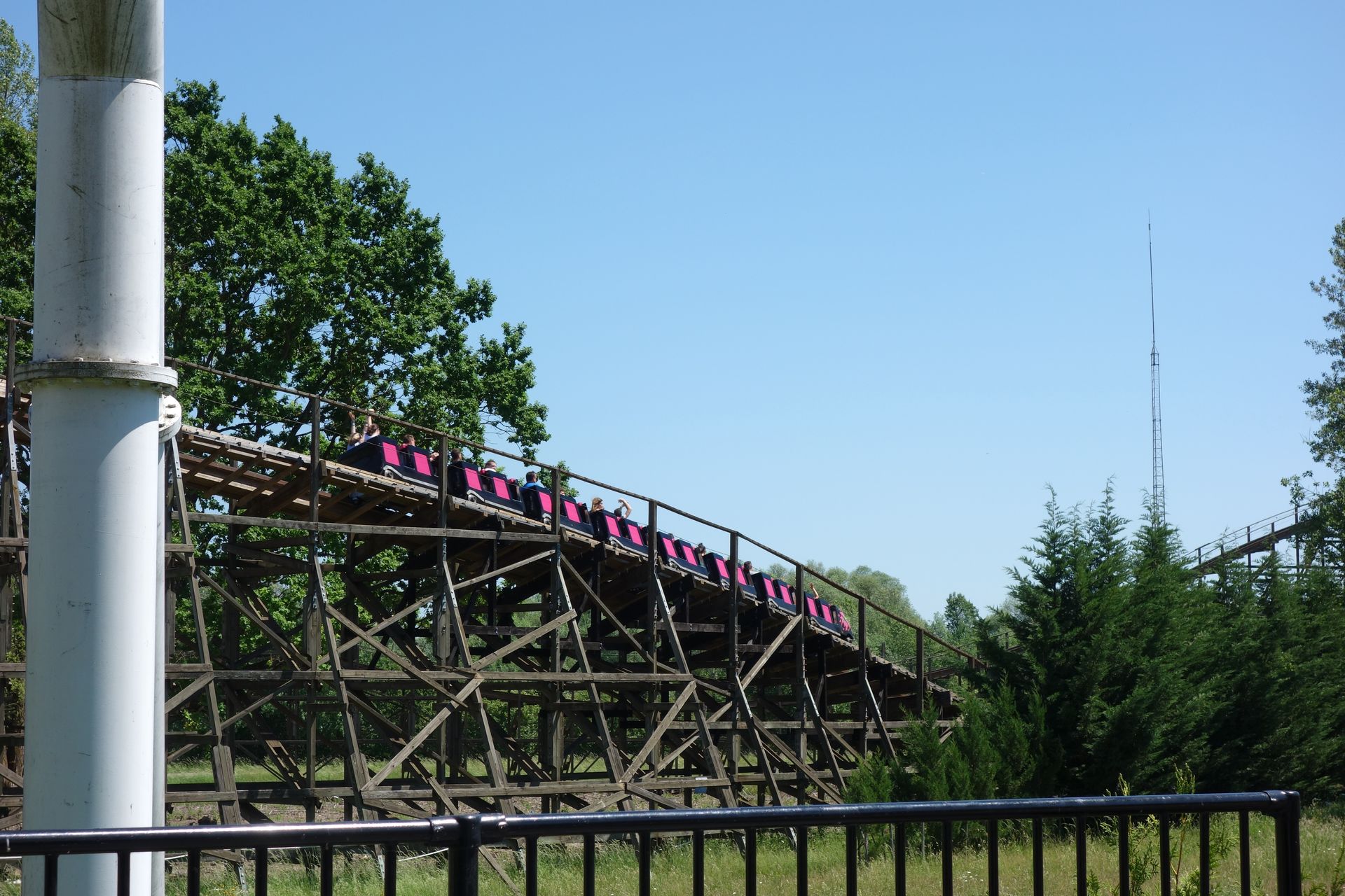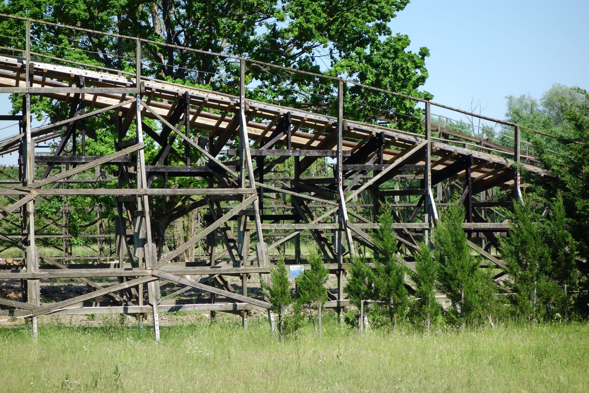 Mitte 2016 stellte sie den Betrieb ein, es stand wohl sogar ein Abriss im Raum. Glücklicherweise hat man sich doch für einen Erhalt entschieden und weitere Teile der Strecke einem Retracking unterzogen. Das merkt man durchaus, wenngleich der Zug in den schnellen Tälern zu Beginn auch weiterhin ziemlich über die Schienen holpert. Aber eben in einem erträglichen Rahmen, wie er bei Holzachterbahnen üblich ist.