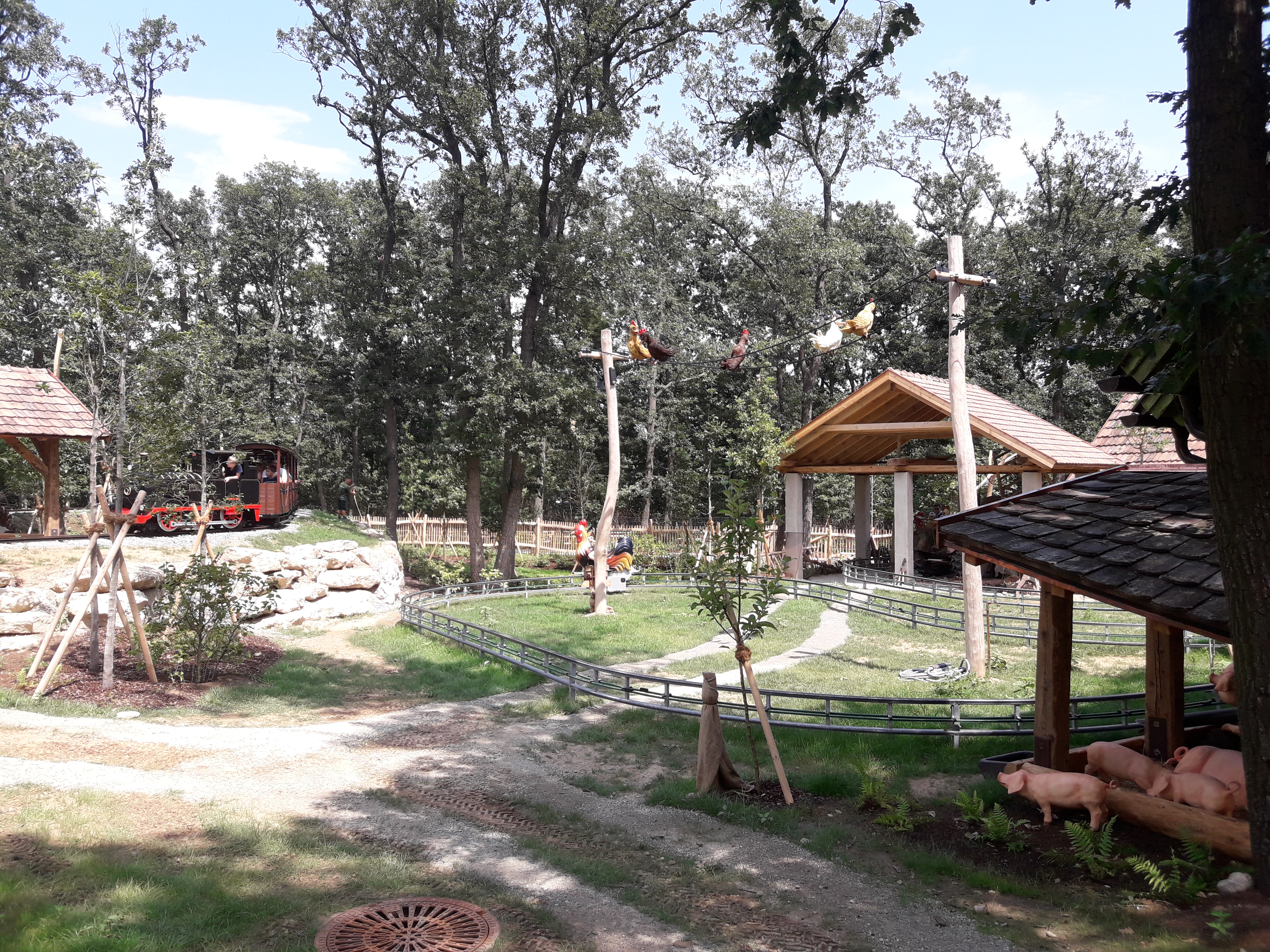 Metallbau Emmeln war der Hersteller der beiden Schienengeführten Attraktionen im Parkbereich, des "Bauernhof"