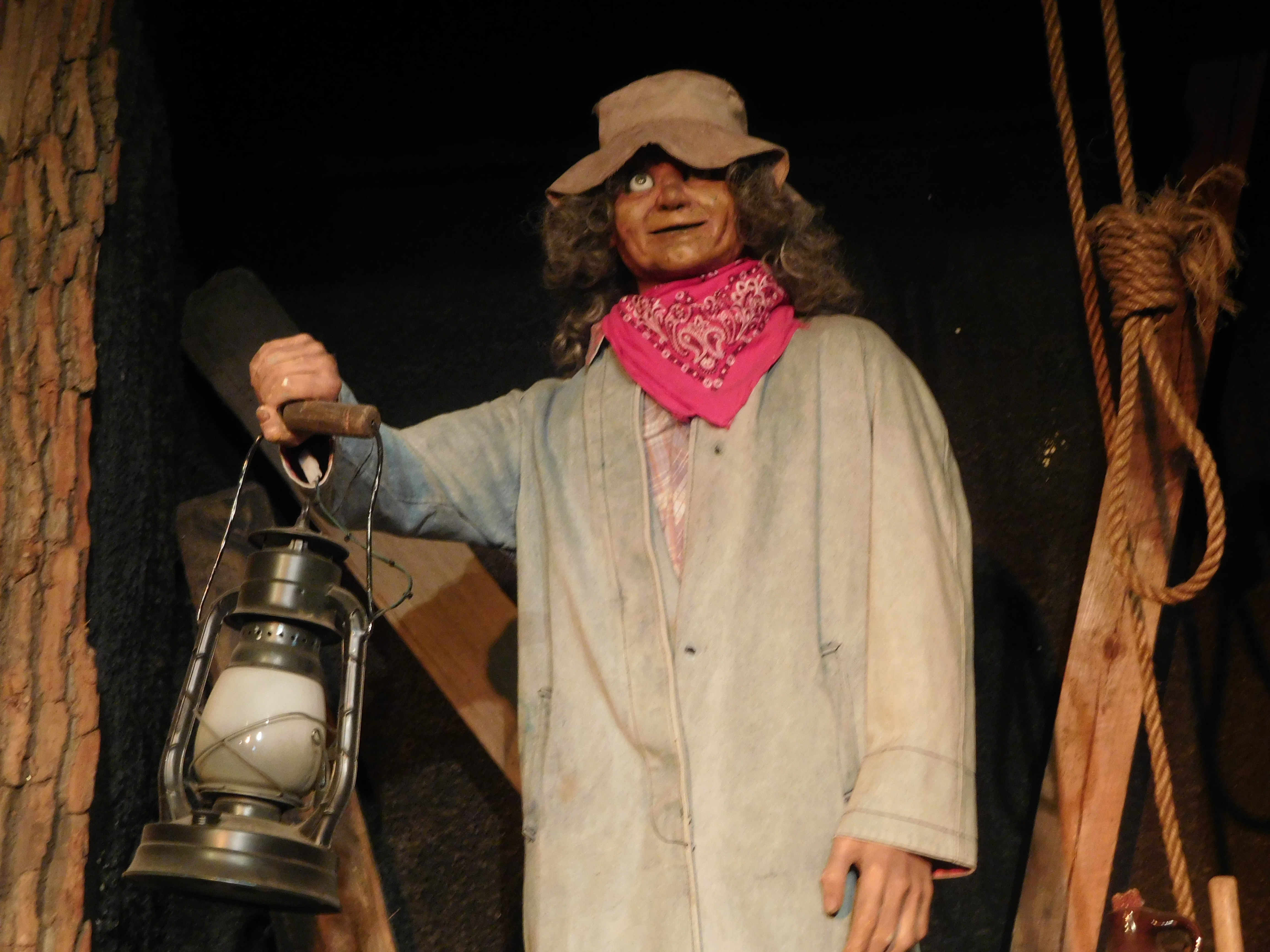 Fazit: Wie ihr gemerkt habt, waren wir voller Vorspannung auf den Drop im Dunklen, aber er kam einfach nicht. Was diese Bahn als Achterbahn definiert, hat sich uns einfach nicht erschlossen. Das können aber die Counter sicher erklären. Im Sinne einer Achterbahn eine komplette Enttäuschung. Nachdem wir uns damit abgefunden hatten, konnten wir zumindest attestieren, einen ganz netten Darkride gefahren zu sein. Mehr und weniger ist es nämlich nicht. Leider fährt man etwas zu schnell an den Szenen/Animatronics vorbei, die eigentlich ziemlich gut und passend platziert wurden. Auf jeden Fall eine spezielle Attraktion, nur sollte man wie gesagt hier mit dem Gedanken einsteigen, dass hier ein Darkride auf Holzschienen folgt.