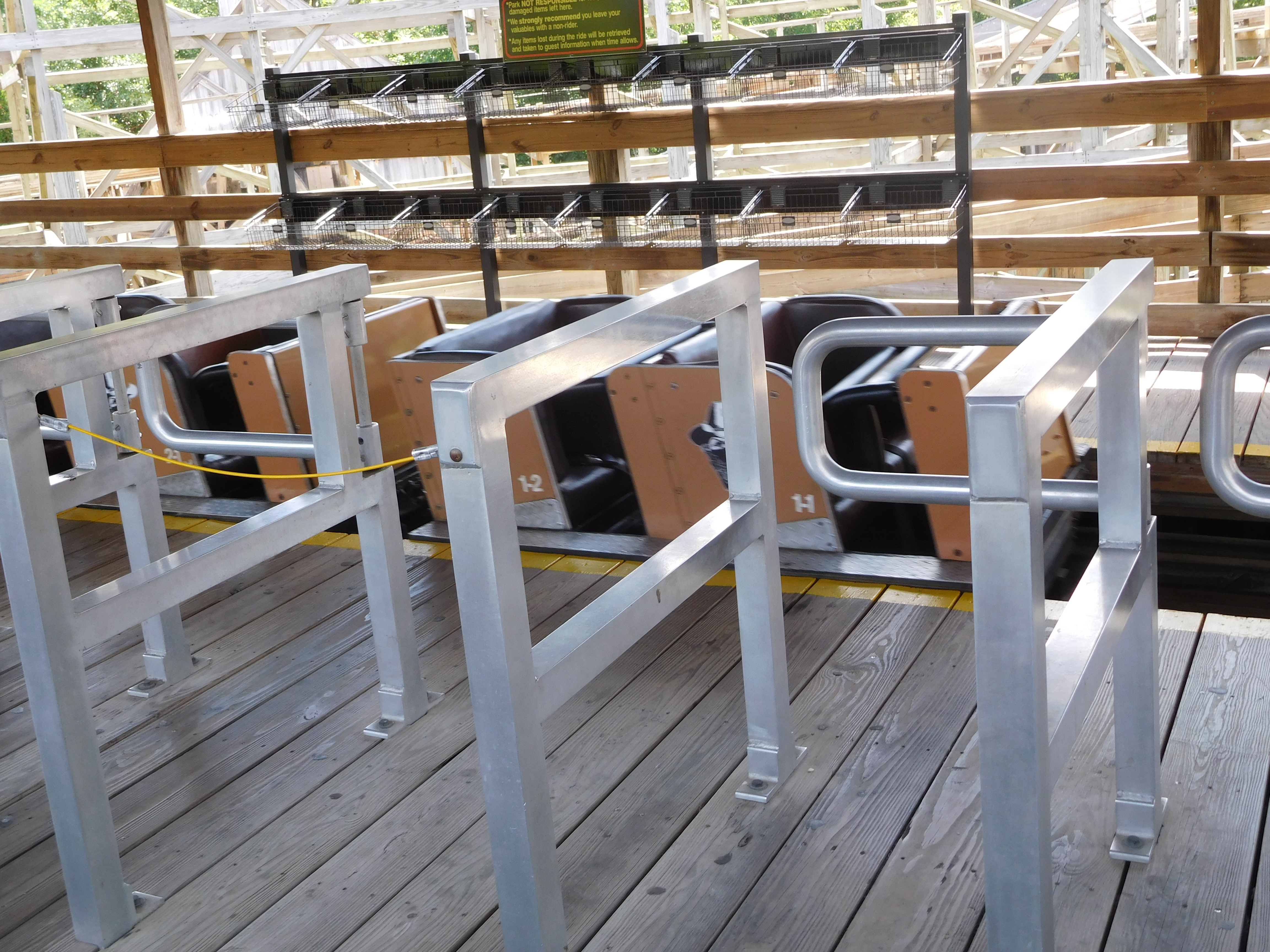 Was ich im vorherigen Bericht leider vergessen habe: Es war kein Problem, einen Rucksack mit Getränkeflaschen ins Worlds of Fun mit hineinzunehmen, genauso auch hier. Auch an allen Fahrgeschäften ließen sich die Rucksäcke irgendwo abstellen oder verstauen.