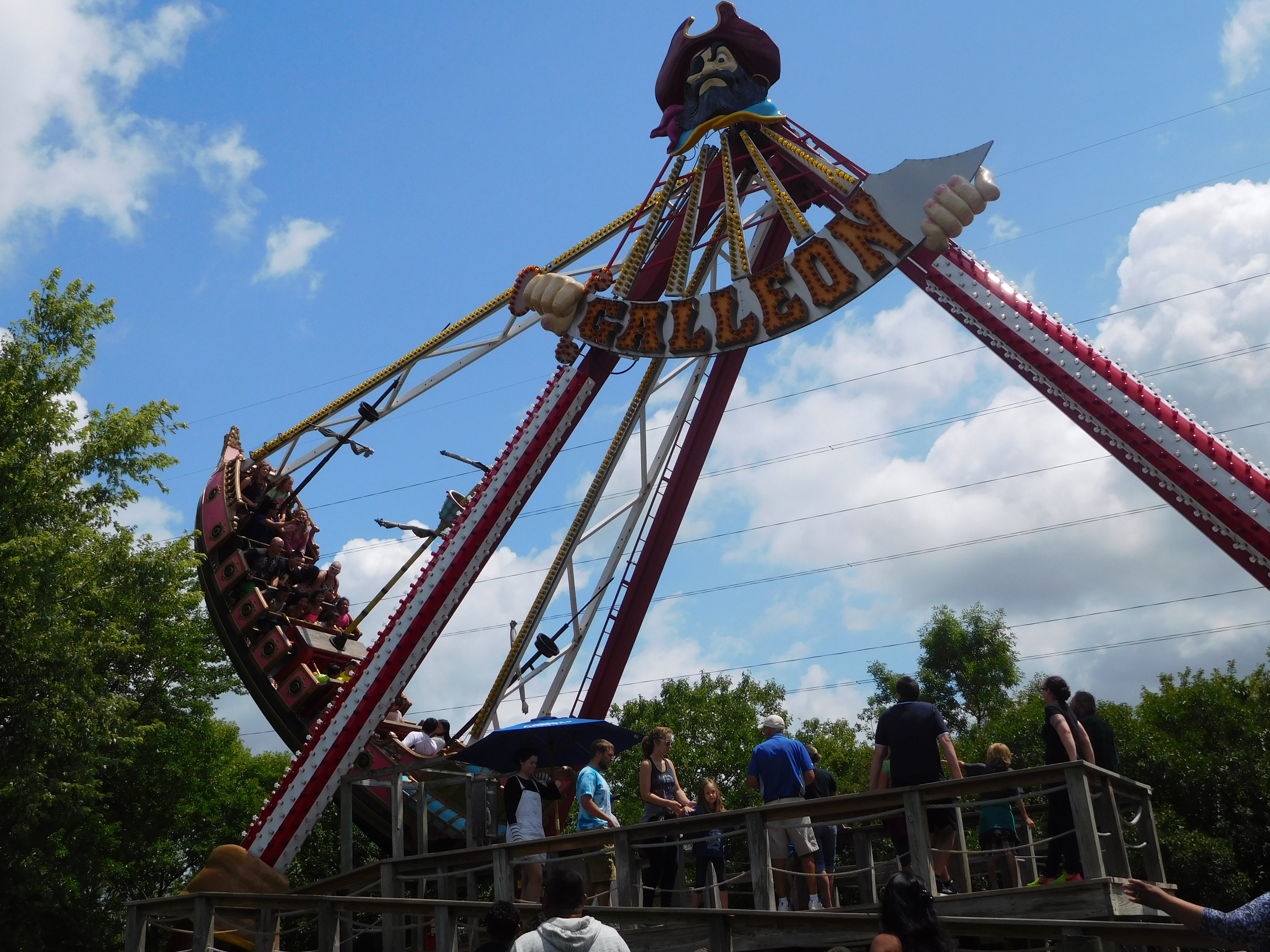Weiter Richtung Parkeingang laufend nahmen Matthias und Mara noch die kleine Schiffschaukel Galleon mit, die aber wohl eher langweilig gewesen sein soll. Eher die kindgerechte Variante.