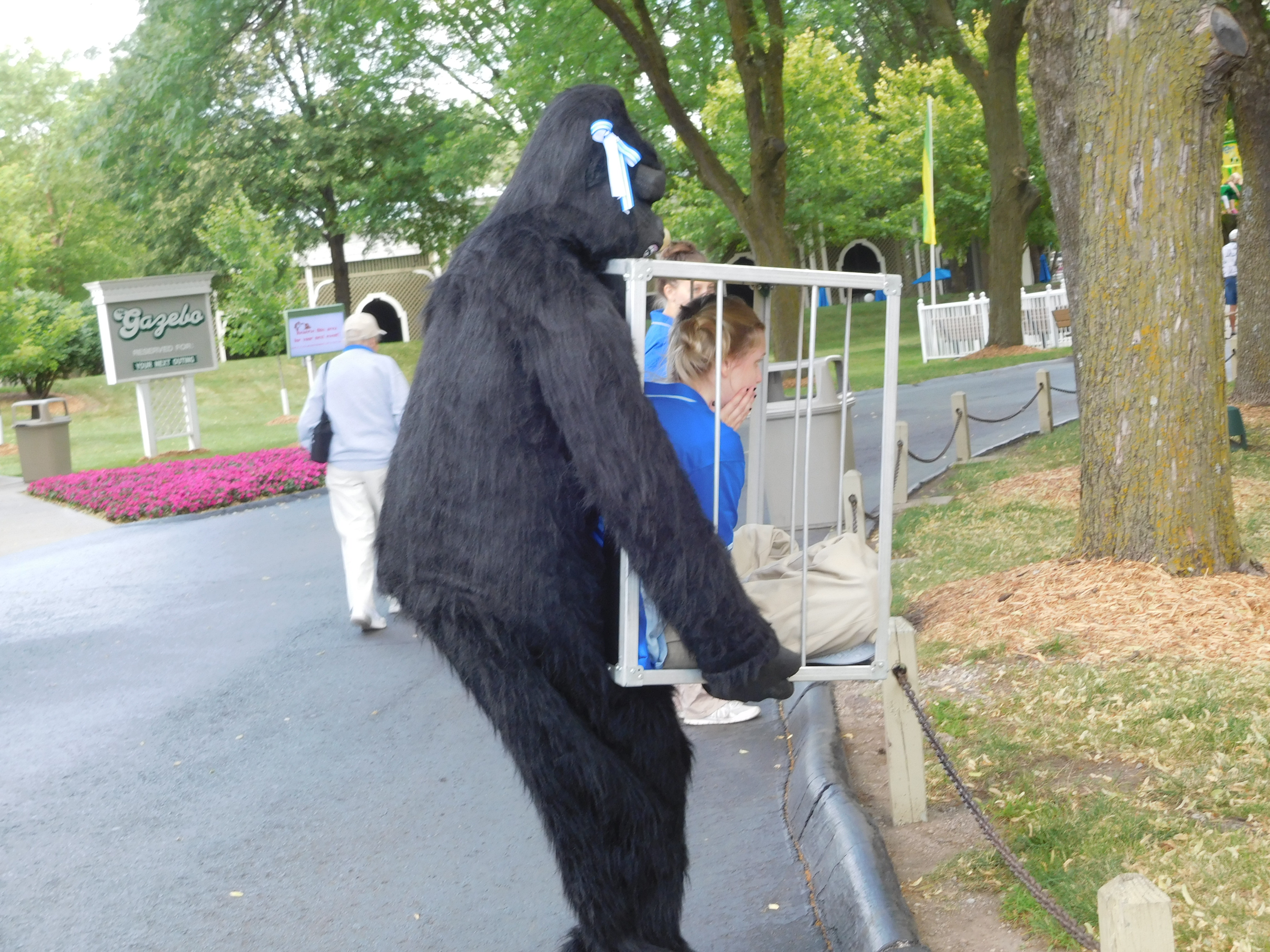 Das haben wir überhaupt nicht verstanden: Der Typ im Gorilla-Kostüm trug sie im Käfig herum und sie rief glaube ich immer, dass man ihm bitte eine Banane geben soll. Keine Ahnung, was das sollte, lustig fand ich es jedenfalls nicht und allzu angenehm war das sicher auch nicht für den Typ im Kostüm.