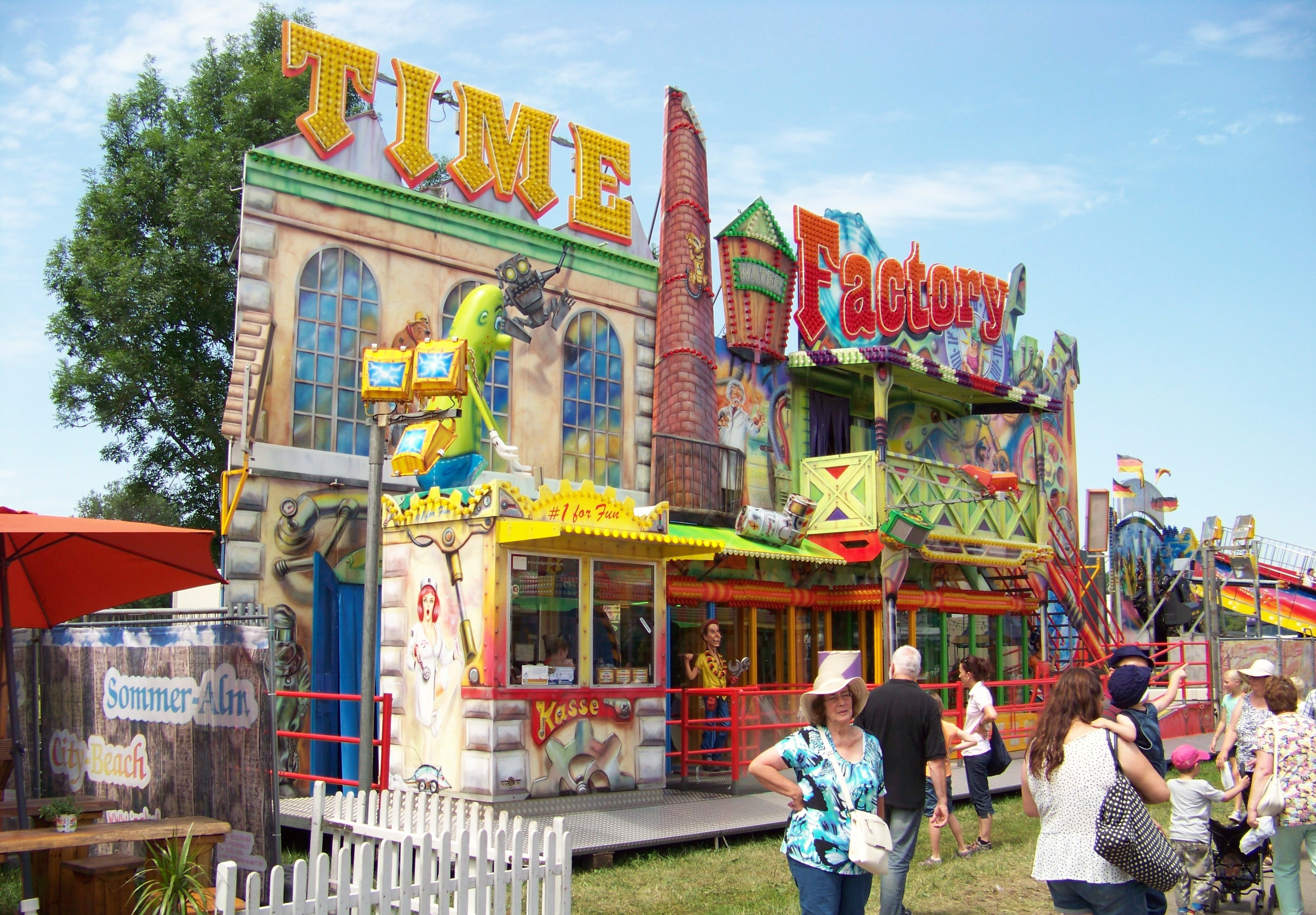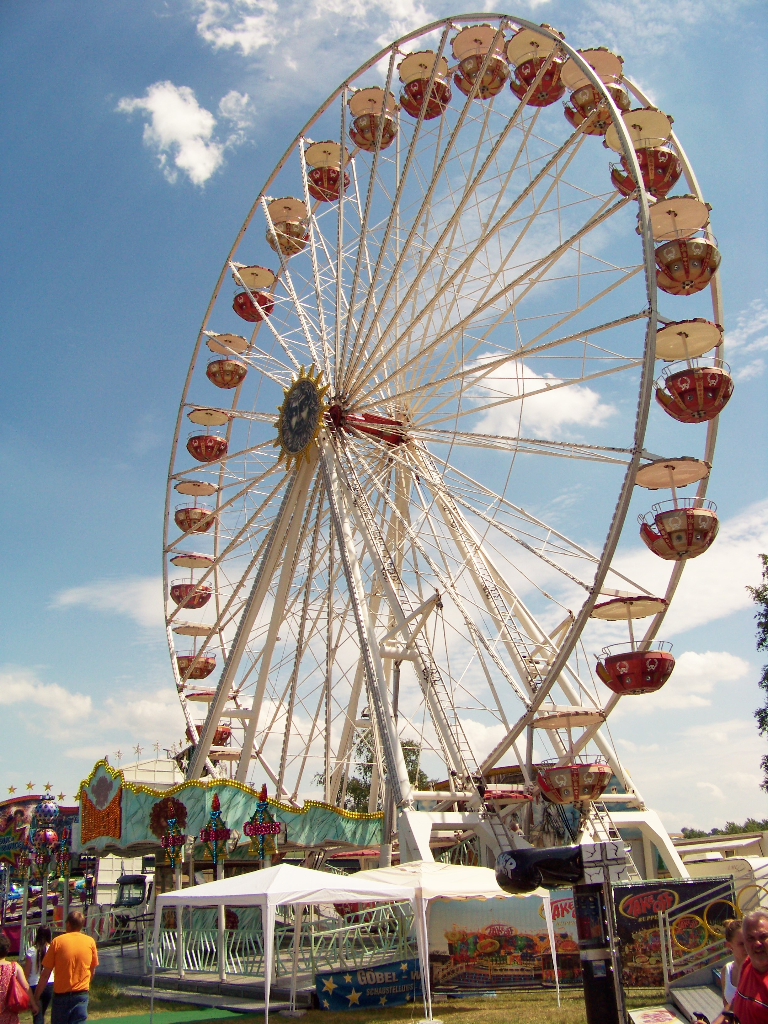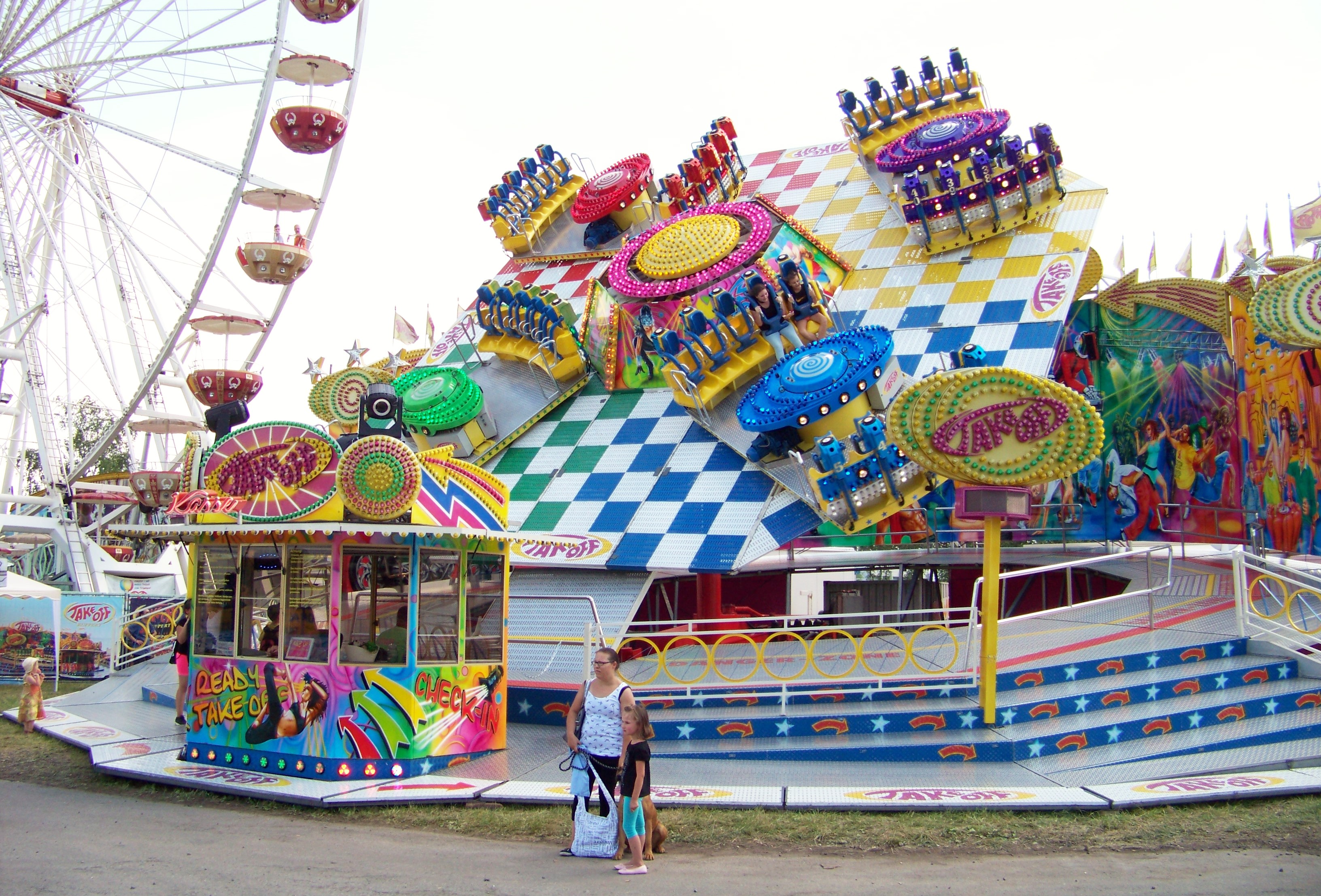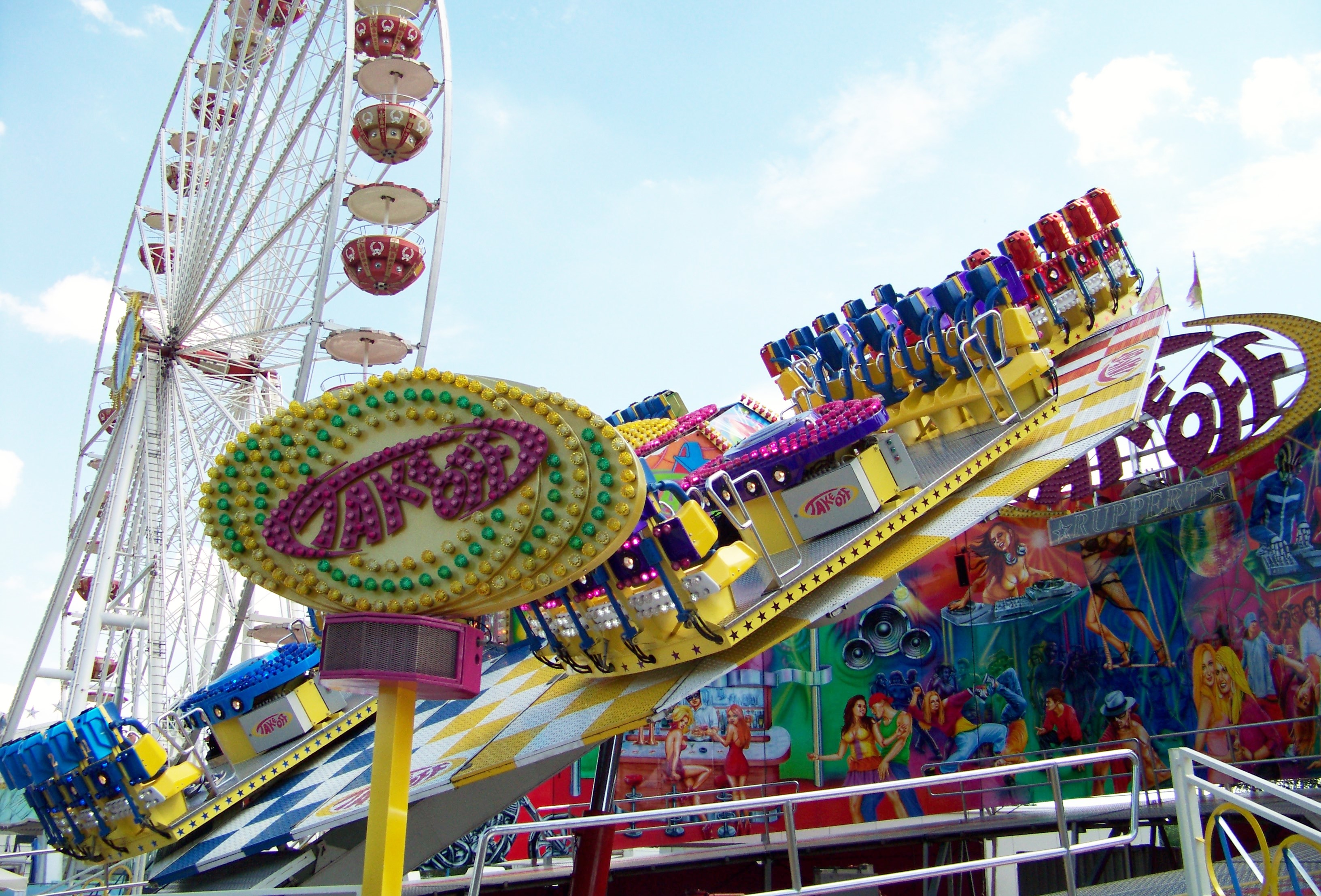 Auf der den Rundlauf abschließenden Ecke des Festplatzes standen der Take Off von Ruppert, das Colossus-Riesenrad von Göbel und gegenüber davon die Wildwasserbahn von Bergmann-Dölle, welche bei den hohen Temperaturen am Samstagnachmittag die meisten Fahrgäste von allen Fahrgeschäften vor Ort anzog.