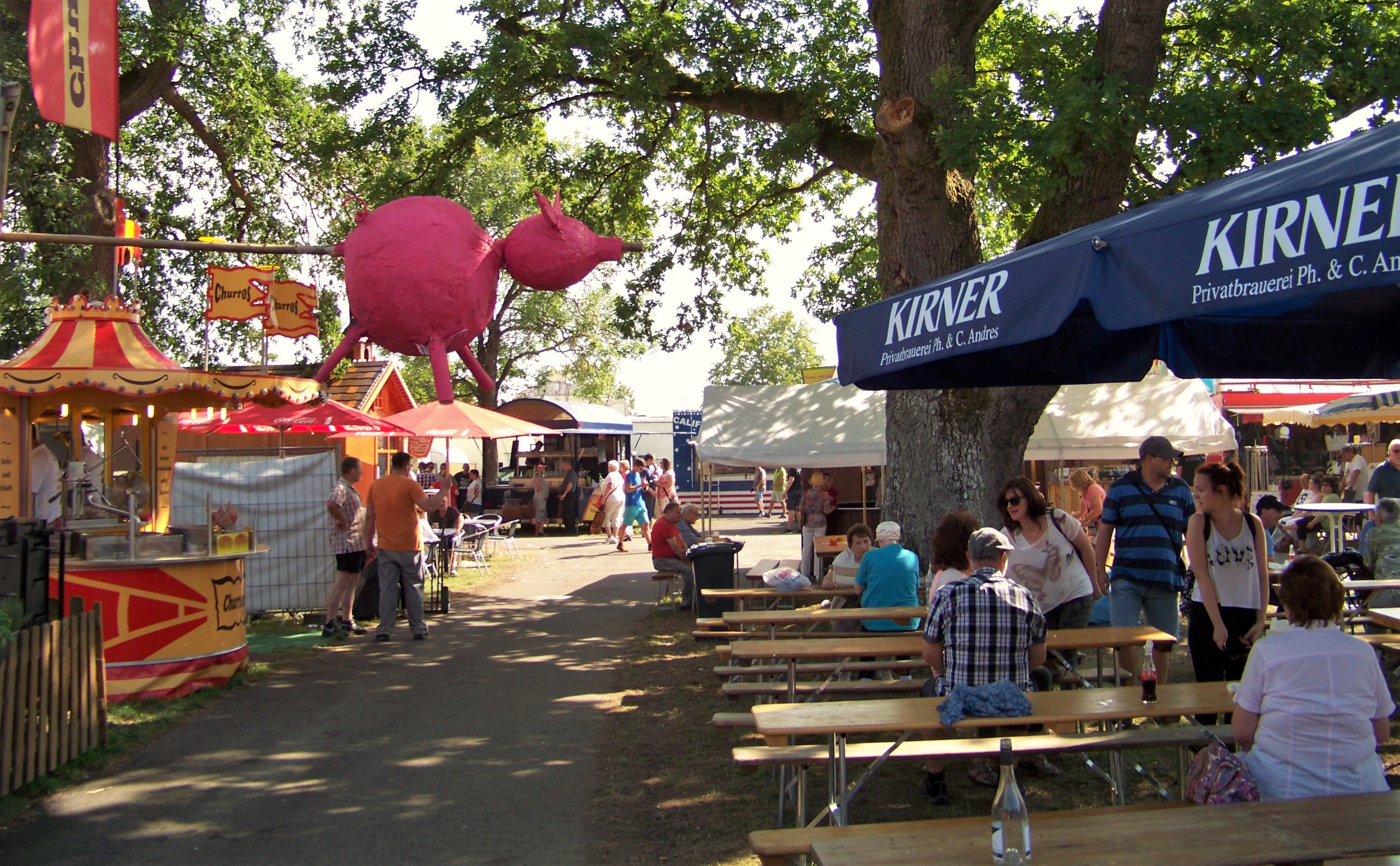 Weiter geht es in der „Fressgass“, wo neben vielen Verpflegungsständen auch Biergarten, Festzelte und Bühne ihren angestammten Platz haben.