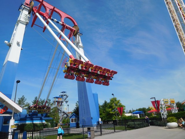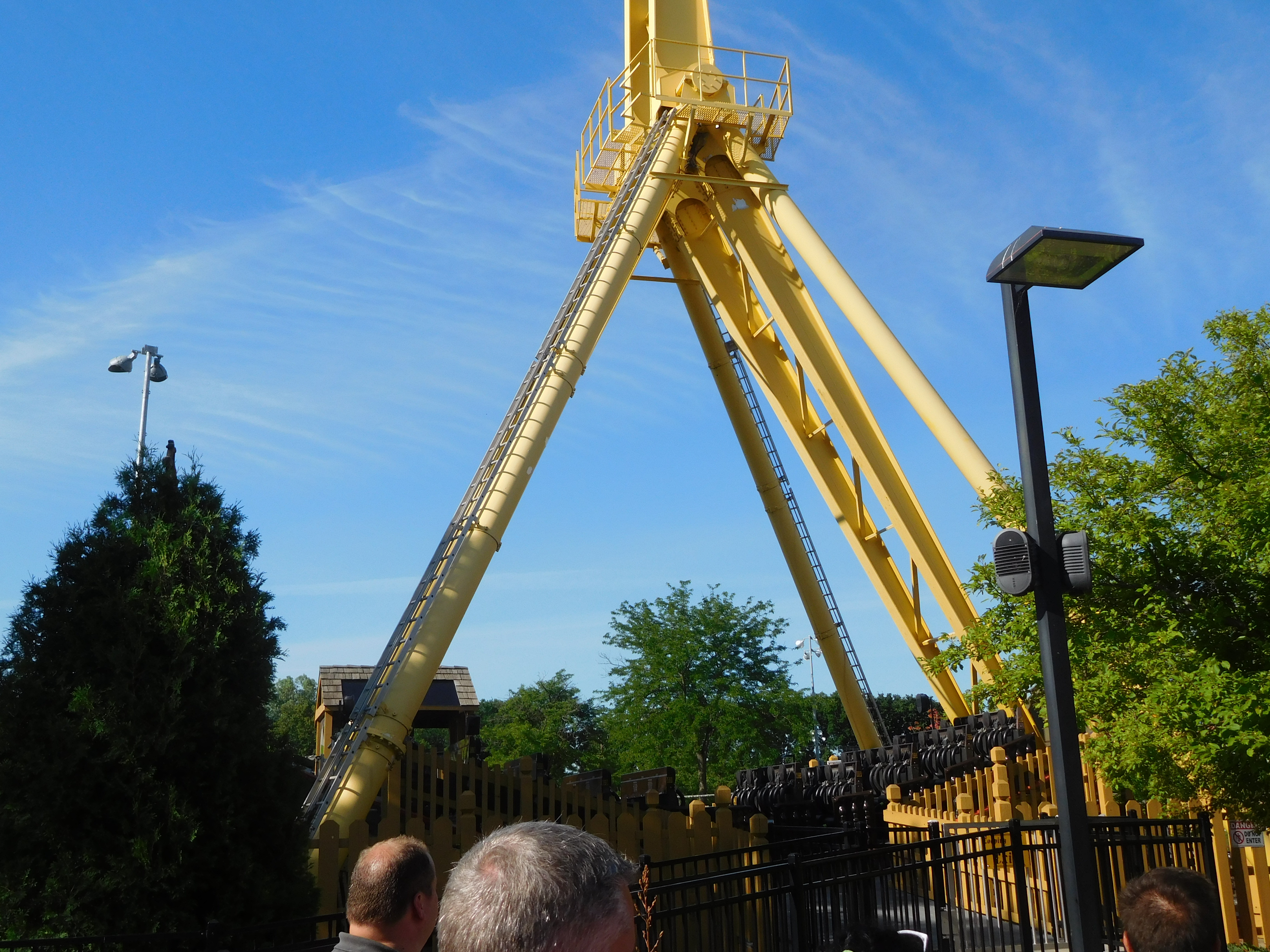 S&S-Tower und es sollte auch der Größte der Tour sein. Der Turm wurde von einer freundlichen Mitarbeiterin zwar allein, aber in einer guten Geschwindigkeit abgefertigt. Am Morgen war bei dieser Variante eh noch Walk On.