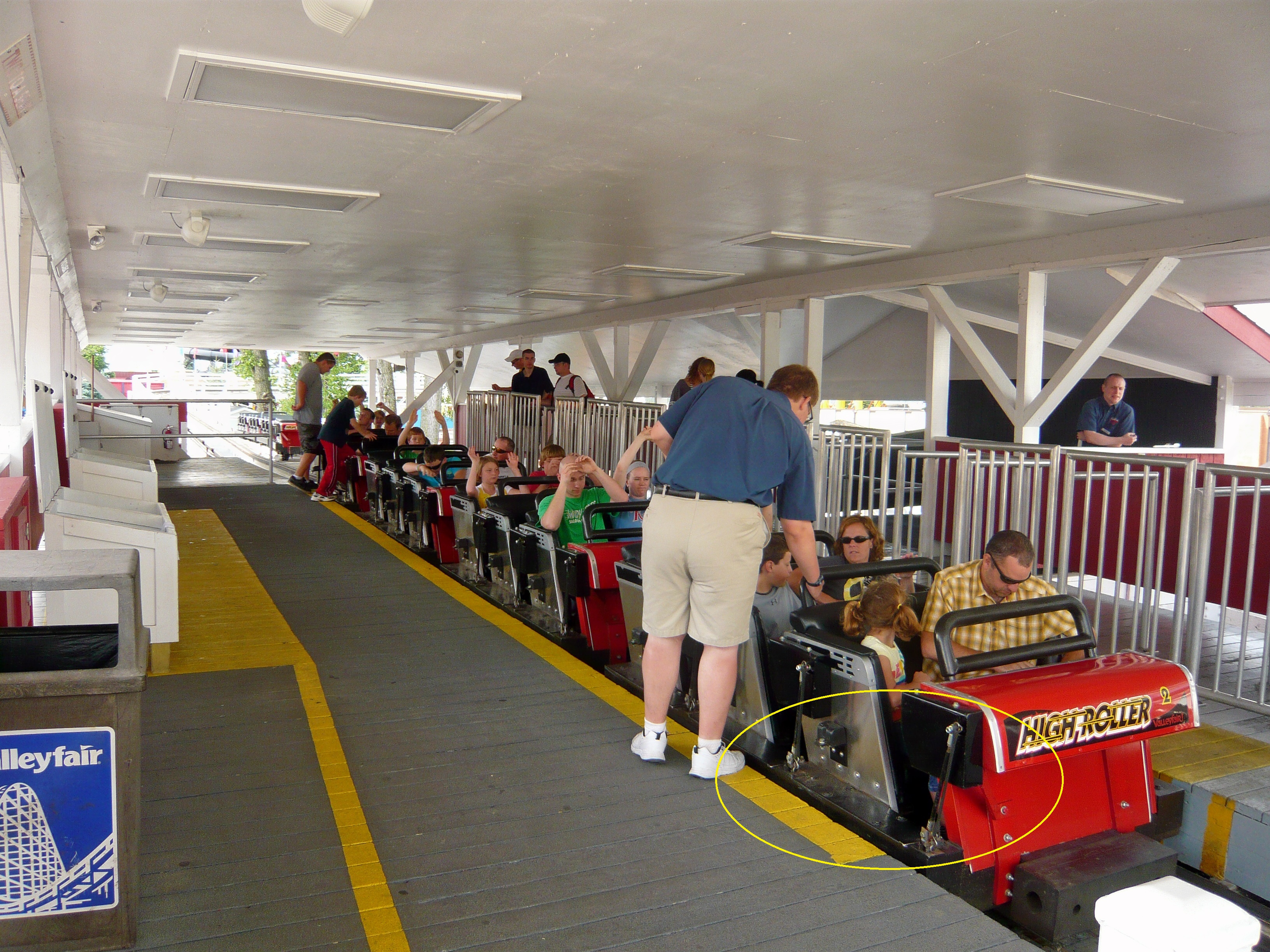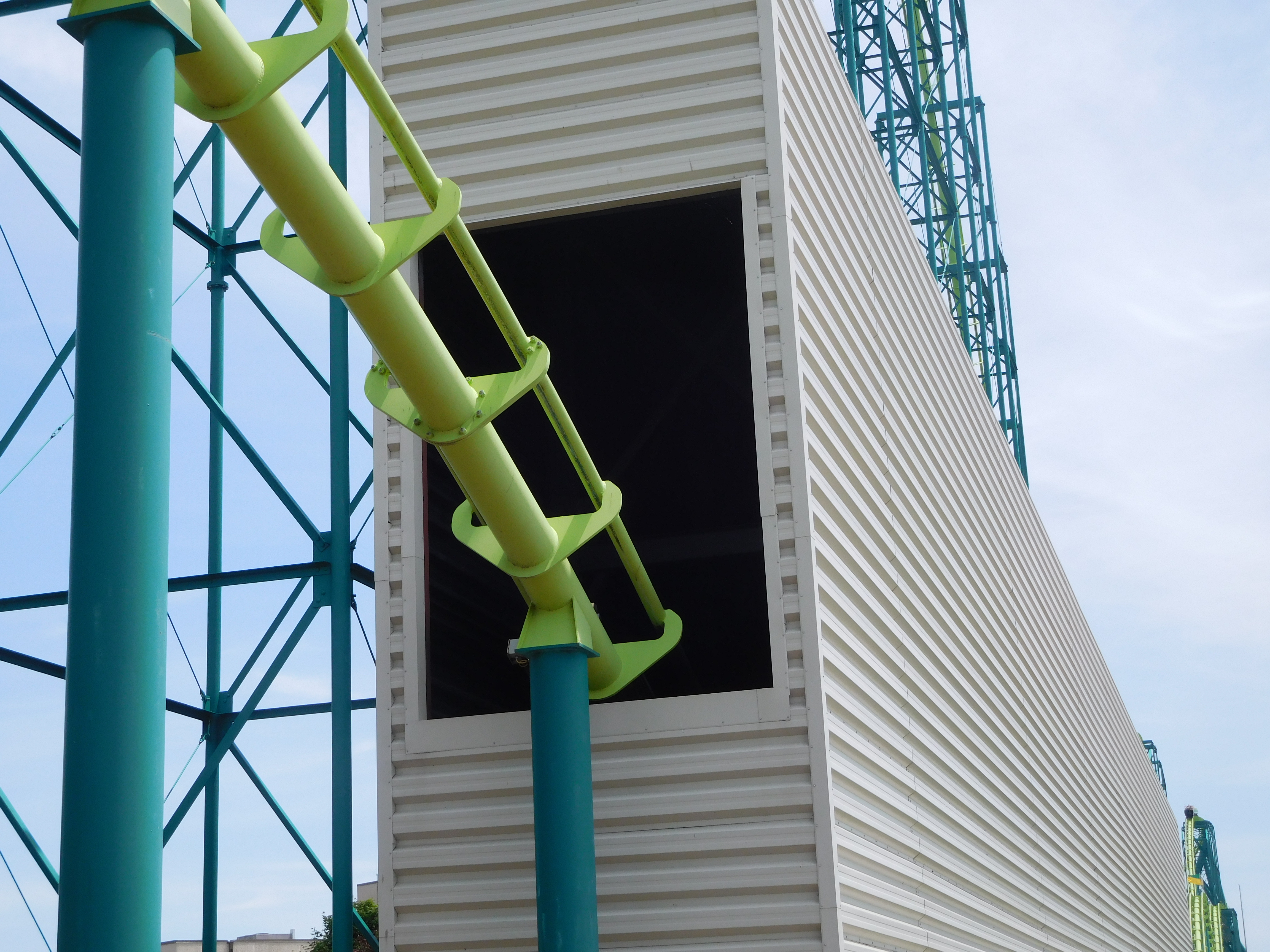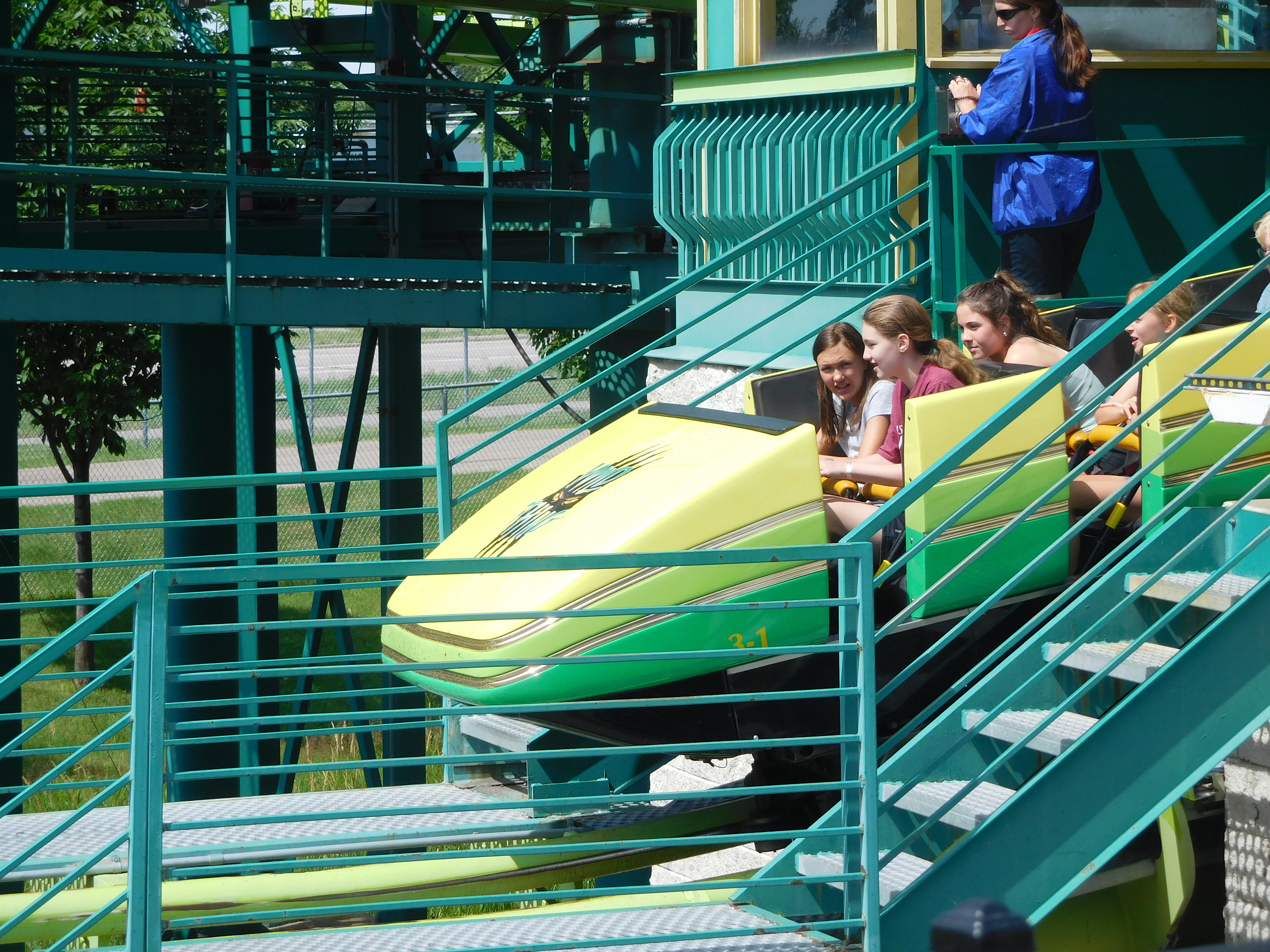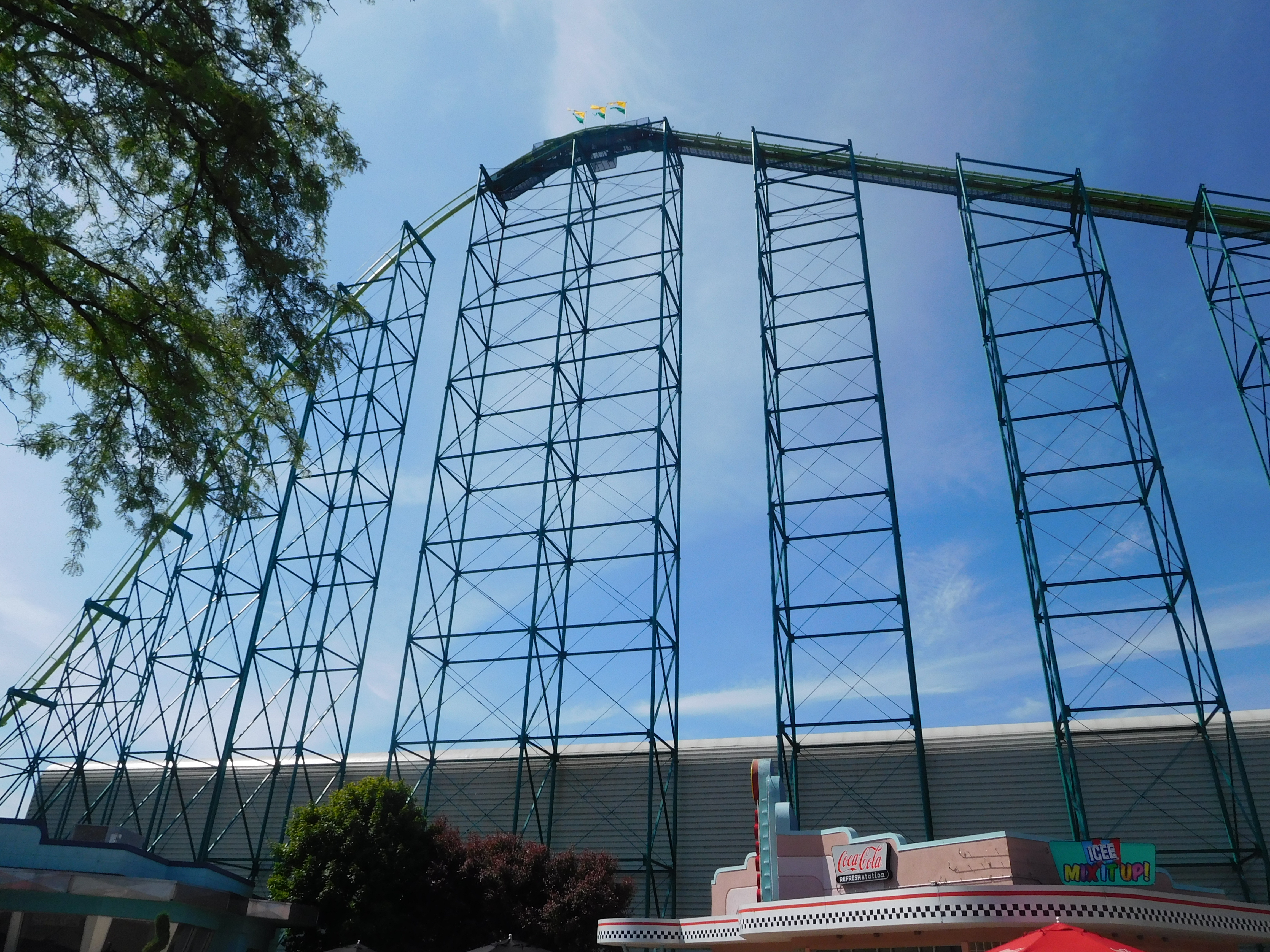 Die Abfertigung hatte sich nun im Vergleich zum Morgen spürbar verbessert. Dort musste man hin und wieder sogar 1-2 Minuten in der Schlussbremse warten, nun war der Zug meist schon auf dem Lifthill, während der 2.Zug in die Schlussbremse raste. Dieses Mal probierte ich wie in Worlds of Fun noch die 2.Reihe aus. Auch hier gefiel mir diese noch ein wenig besser als der Platz hinten. Ein schöner Geschwindigkeitsrausch und die