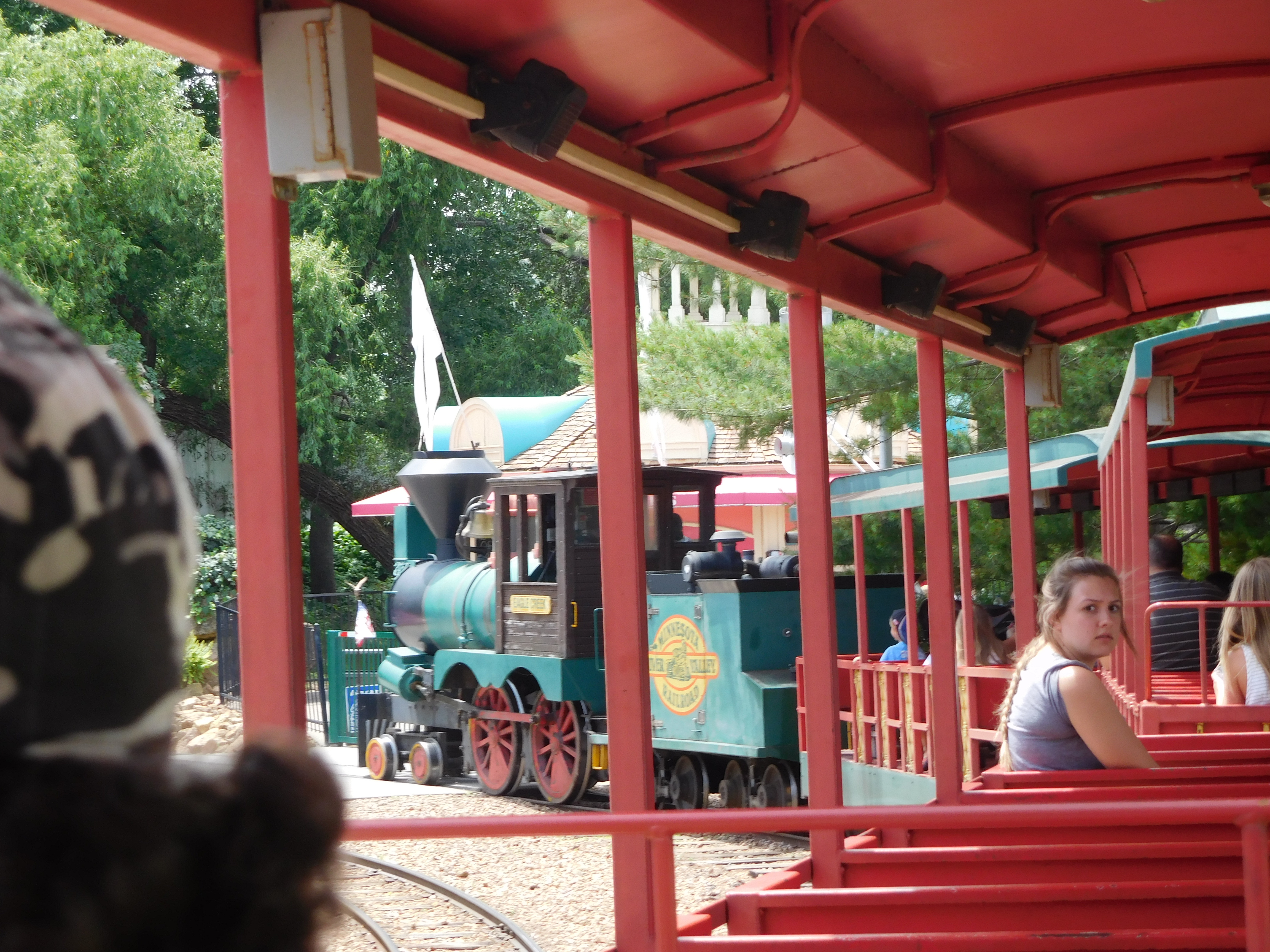 Nach einer halben Runde kamen wir im vorderen Parkbereich an - die Lokführerin soll mich wohl über das Mikro aufgefordert haben, das Fotografieren zu unterlassen (Matthias sagte mir das hinterher), ich war aber zu abgelenkt von der schönen Morgan Bahn, um das mitzubekommen.