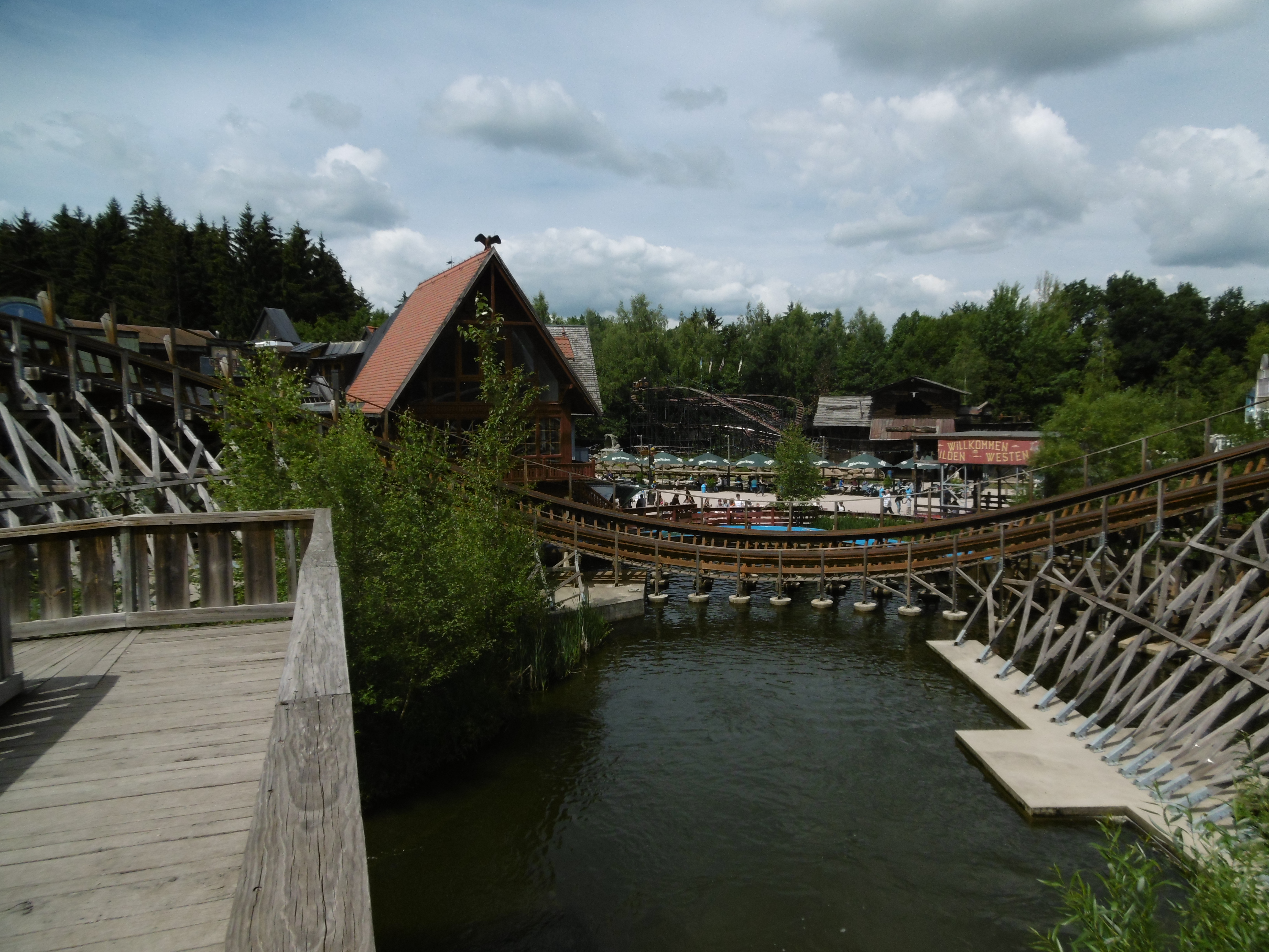 … geht es ein letztes Mal unter der Wildwasserbahn hindurch.