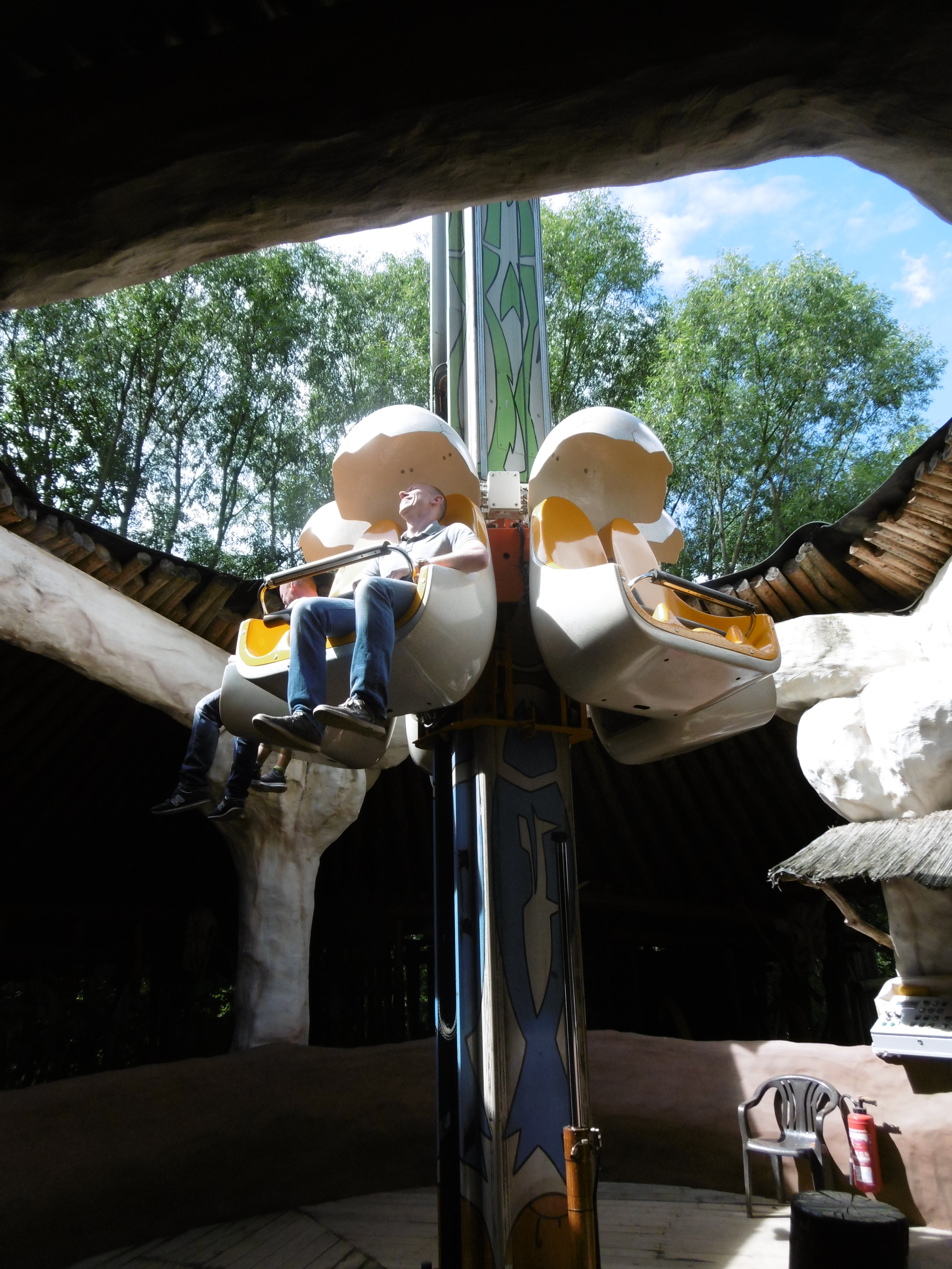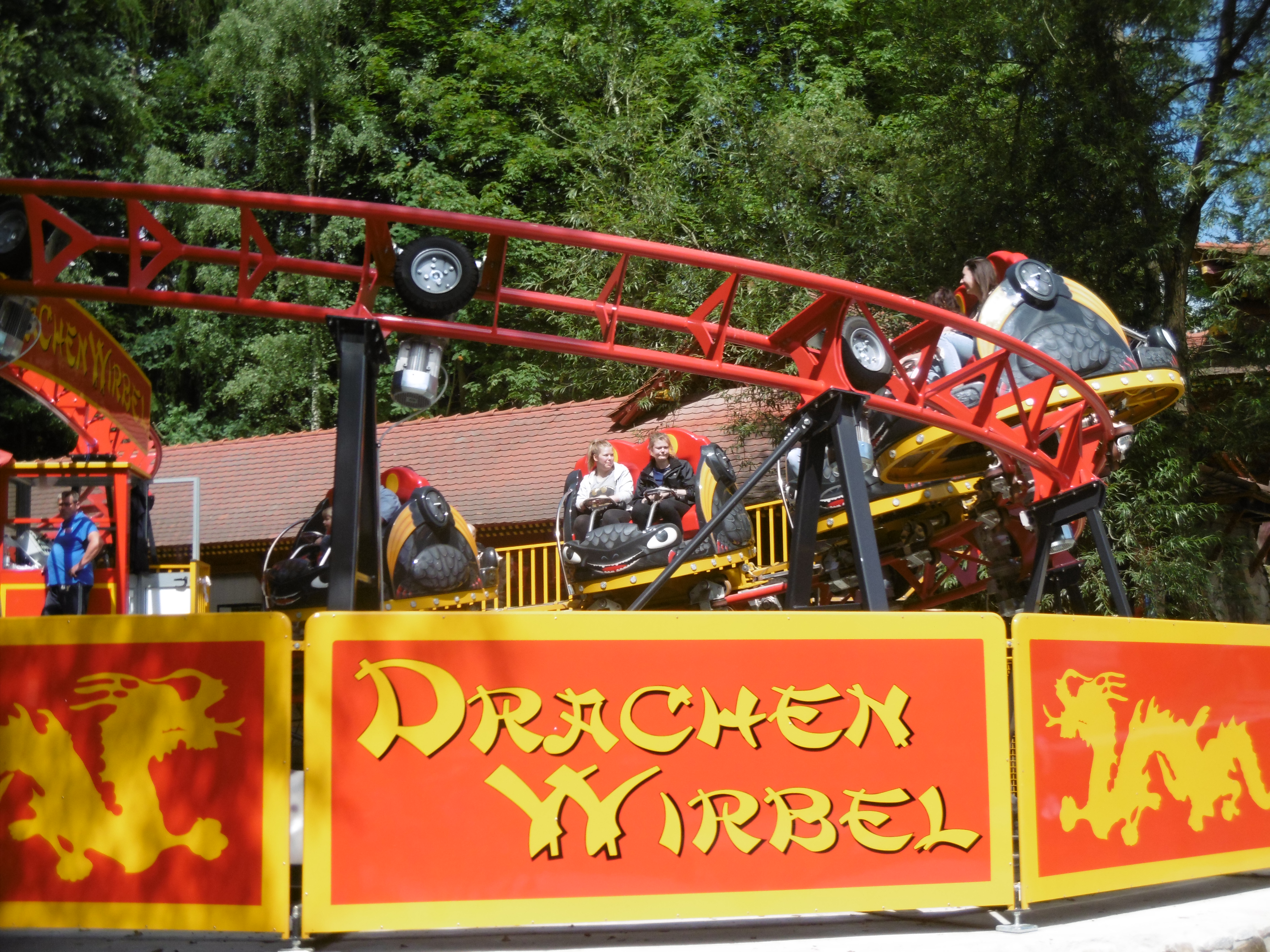Dort wurde die diesjährige Neuheit Drachenwirbel eröffnet. Mir aus Friheden schon bekannt gab es hier die erste kleine Wartezeit des Tages. Je nach Sitzposition ist zumindest die erste Abfahrt „etwas“ spannender. Spin wollte bei uns wie in Friheden auch nicht aufkommen.
