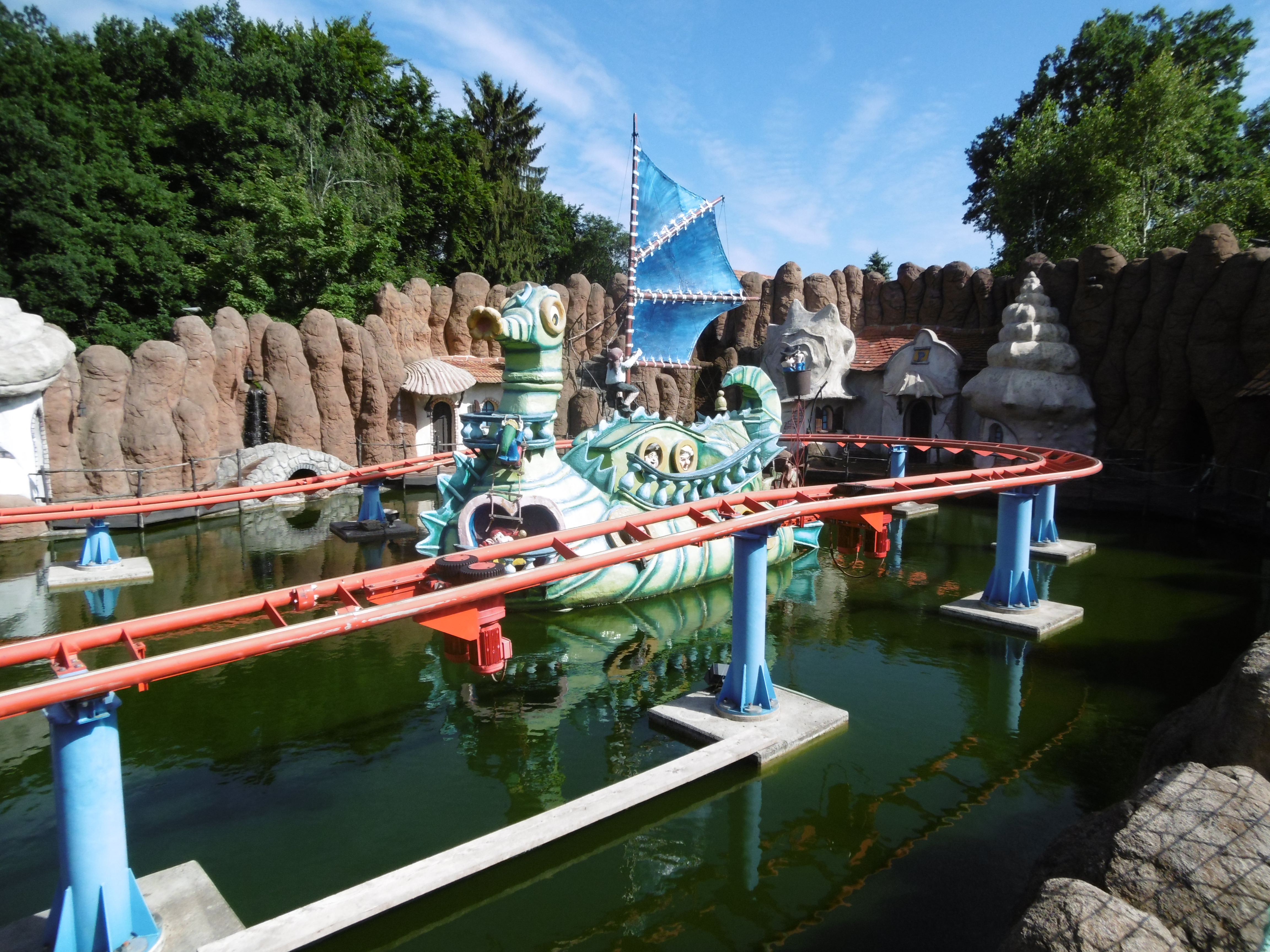 Leider habe ich gänzlich vergessen von ihr Bilder zu machen. Dabei hätte sie solche trotz des nicht ganz sauberen Wassers verdient gehabt. Denn direkt nach dem Einstieg beginnt zunächst eine kleine Geisterbahnfahrt, der dann die Auffahrt zur ersten kleinen Abfahrt folgt.