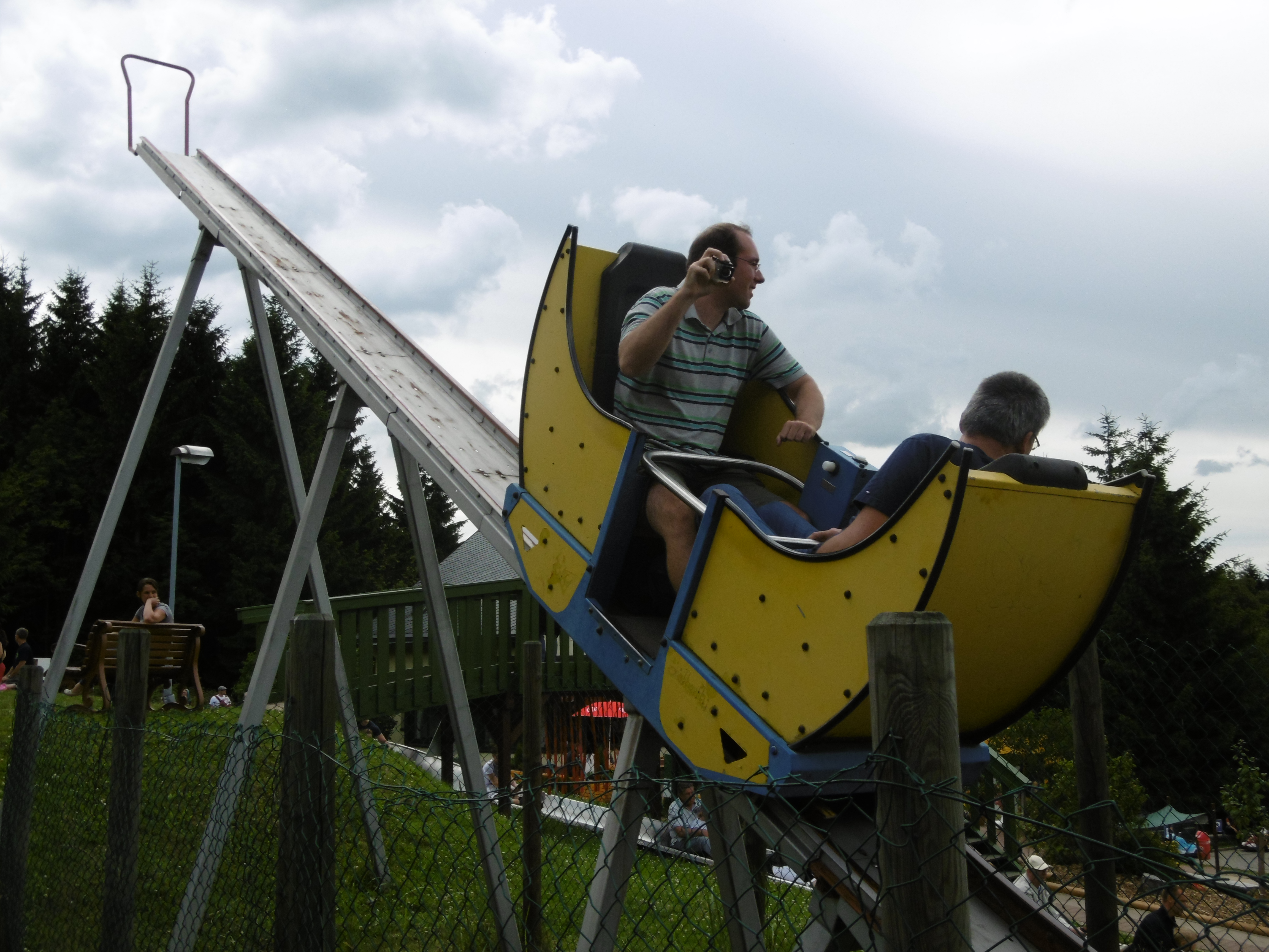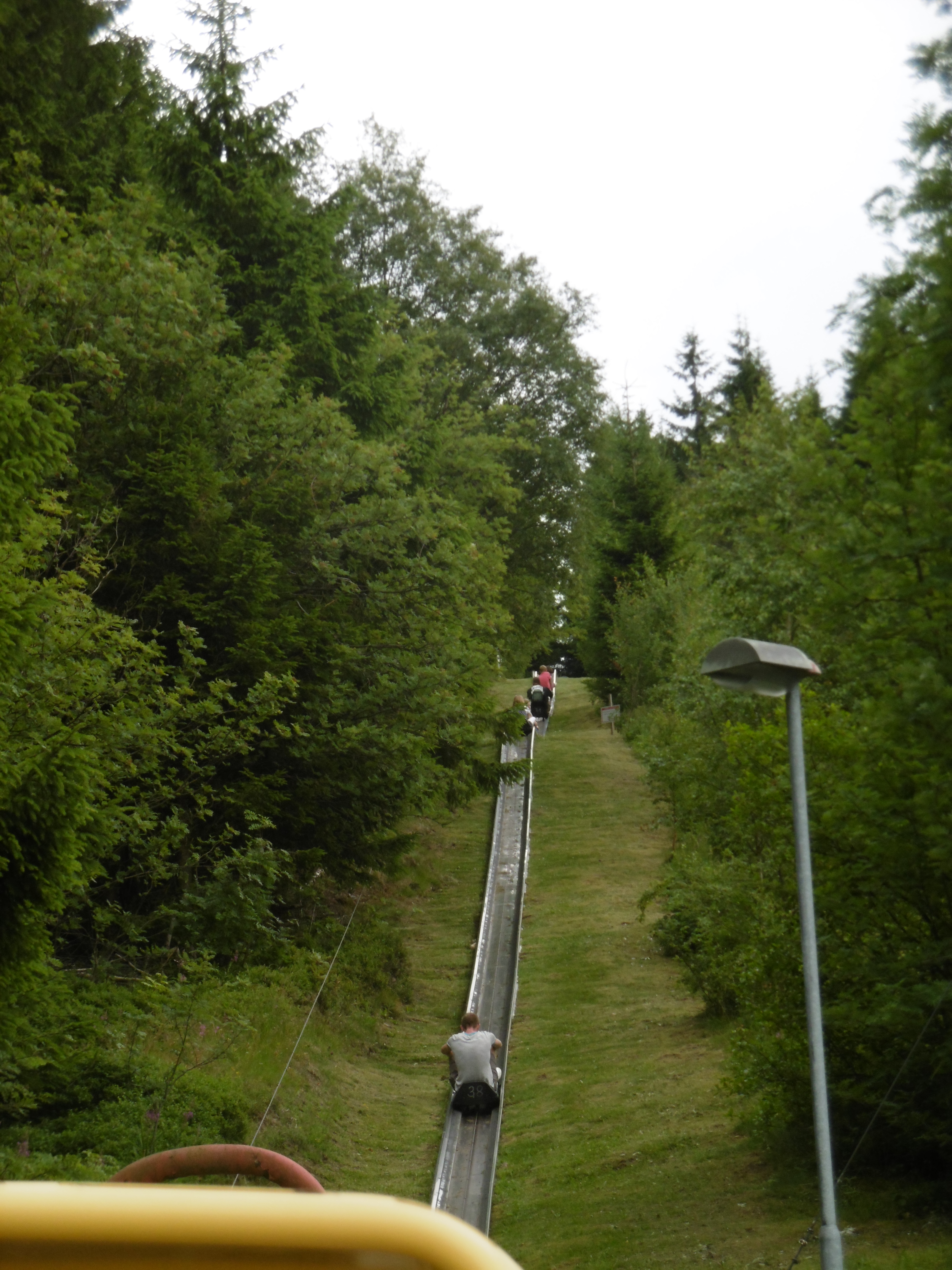 Ich verzichtete auf diese Fahrt, da mich die Sommerrodelbahn als Nichtzähler viel mehr interessierte. Trotz zahlreich eingesetzter Bobs mussten wir einige Minuten warten.