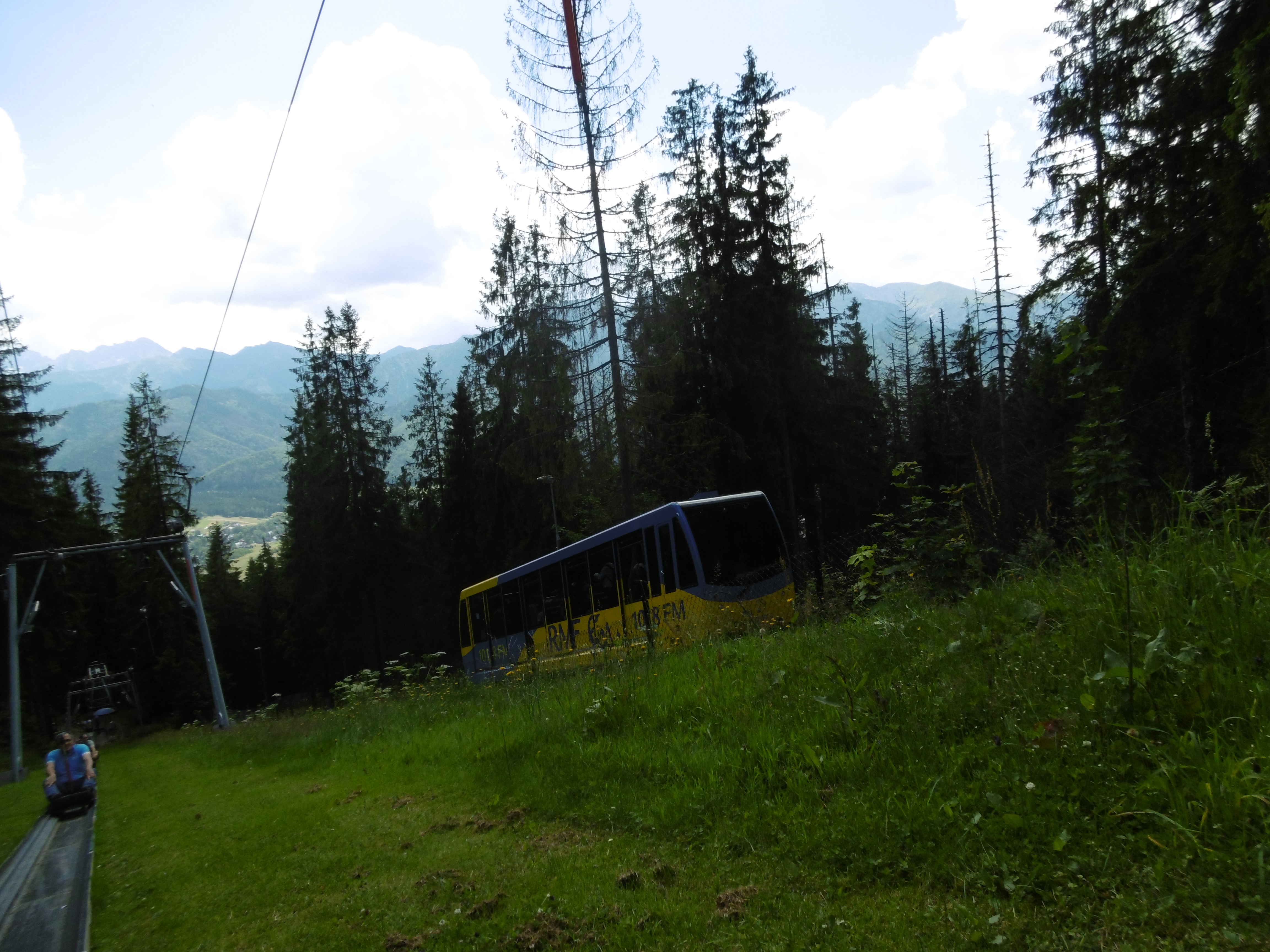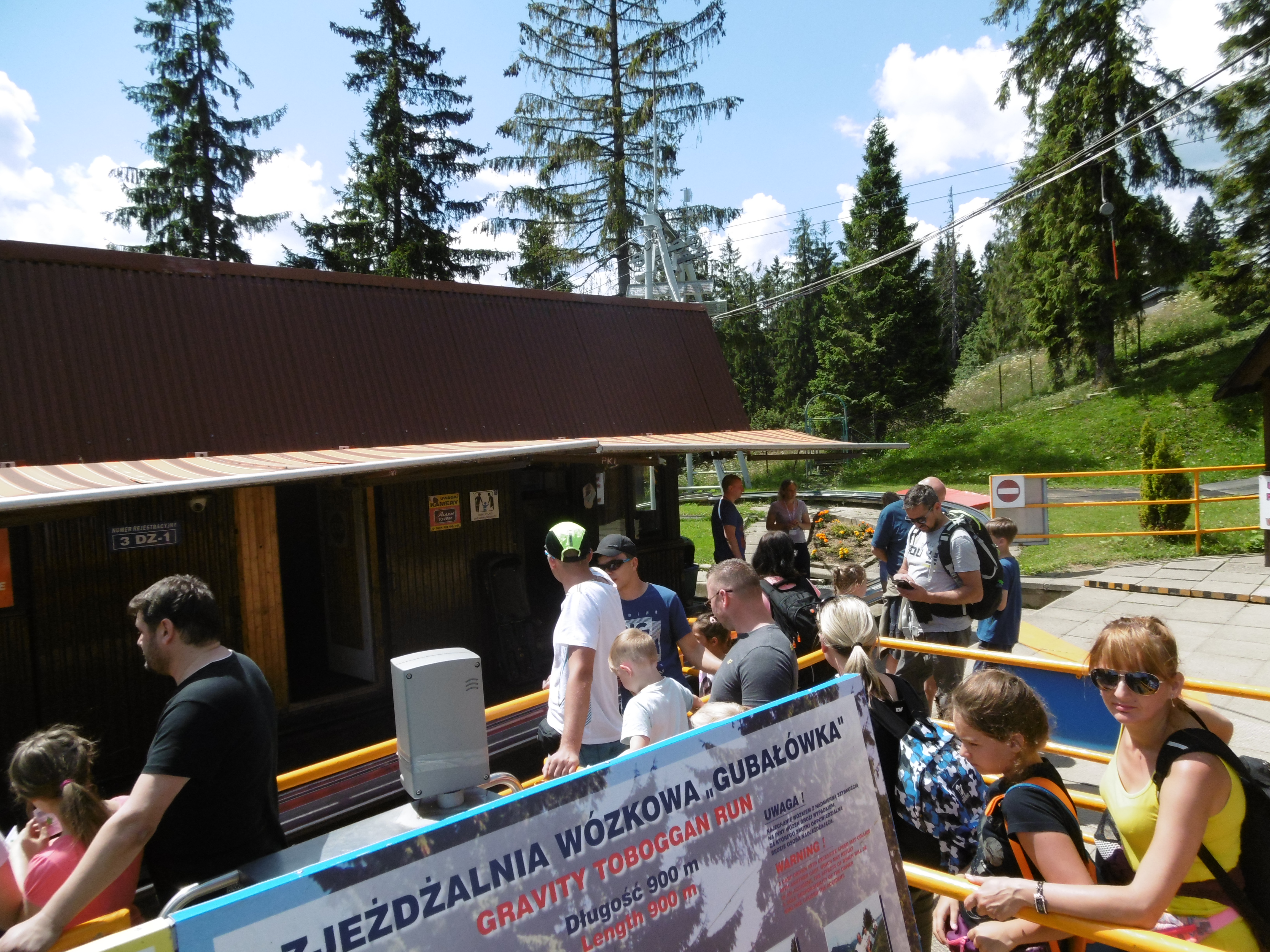 So machten wir uns auf den Weg zum Skisprungmekka Zakopane und somit einem der südlichsten Punkte Polens. Unterwegs fuhren wir noch an einem Alpine Coaster vorbei (Czorsztyn), der aber laut Martin nicht so gut war. Mit diesem Wissen und meiner weiterhin vorhandenen Angst eines übervollen Energylandias fuhren wir dann doch lieber weiter. Nachdem wir unser Auto auf einem Parkplatz auf mittlerer Höhe des Bergs Gubałówka abstellten, liefen wir die restlichen Meter bis zur Spitze. Der Weg zog sich sehr weit und es wurden mehr und mehr Höhenmeter. Wir wunderten uns schon, warum denn so viele Schulklassen und sonstige Wanderer auf dem Weg nach oben waren.