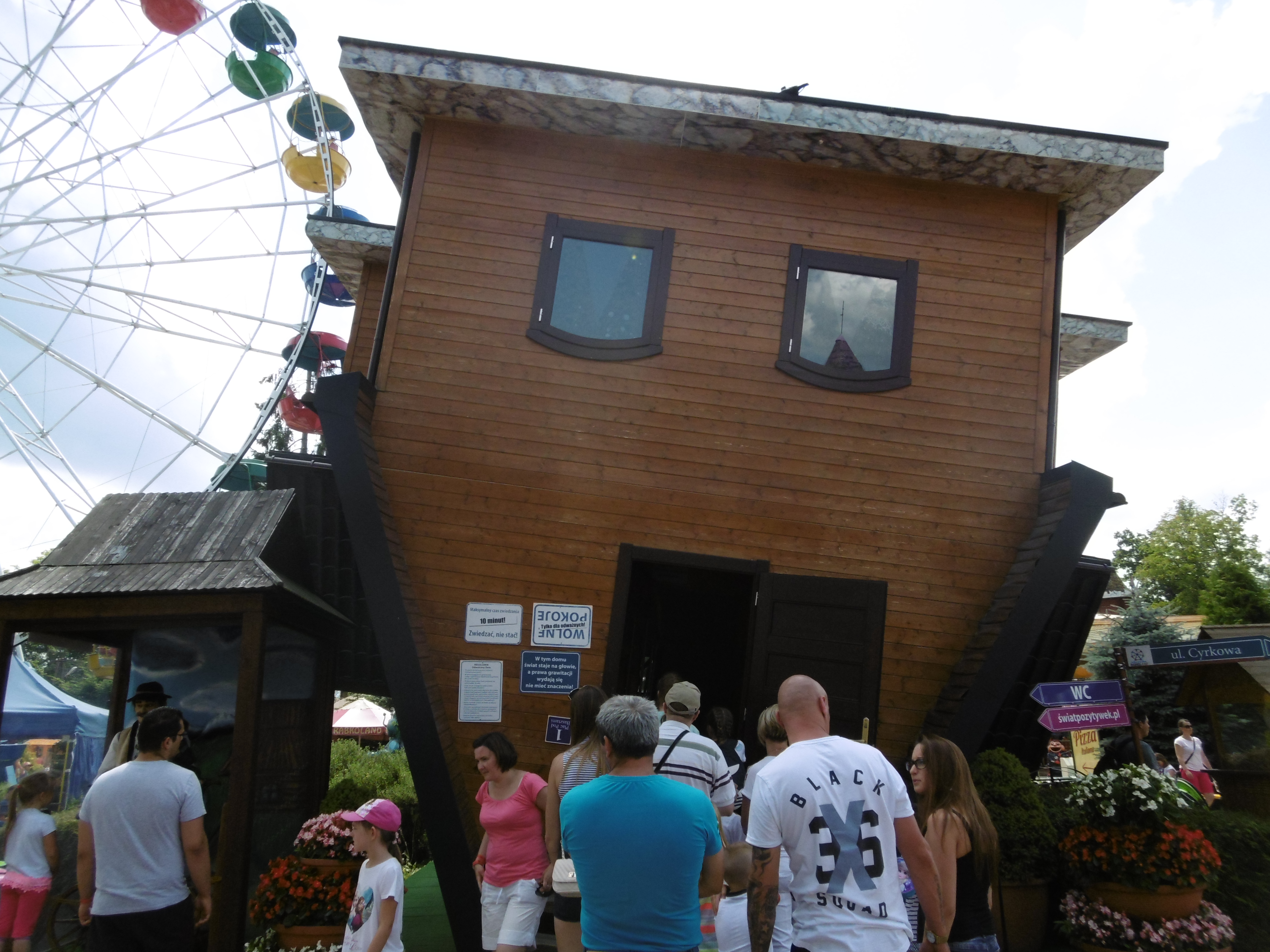 Ein schiefes Haus, das in Polen sehr häufig zu finden ist.