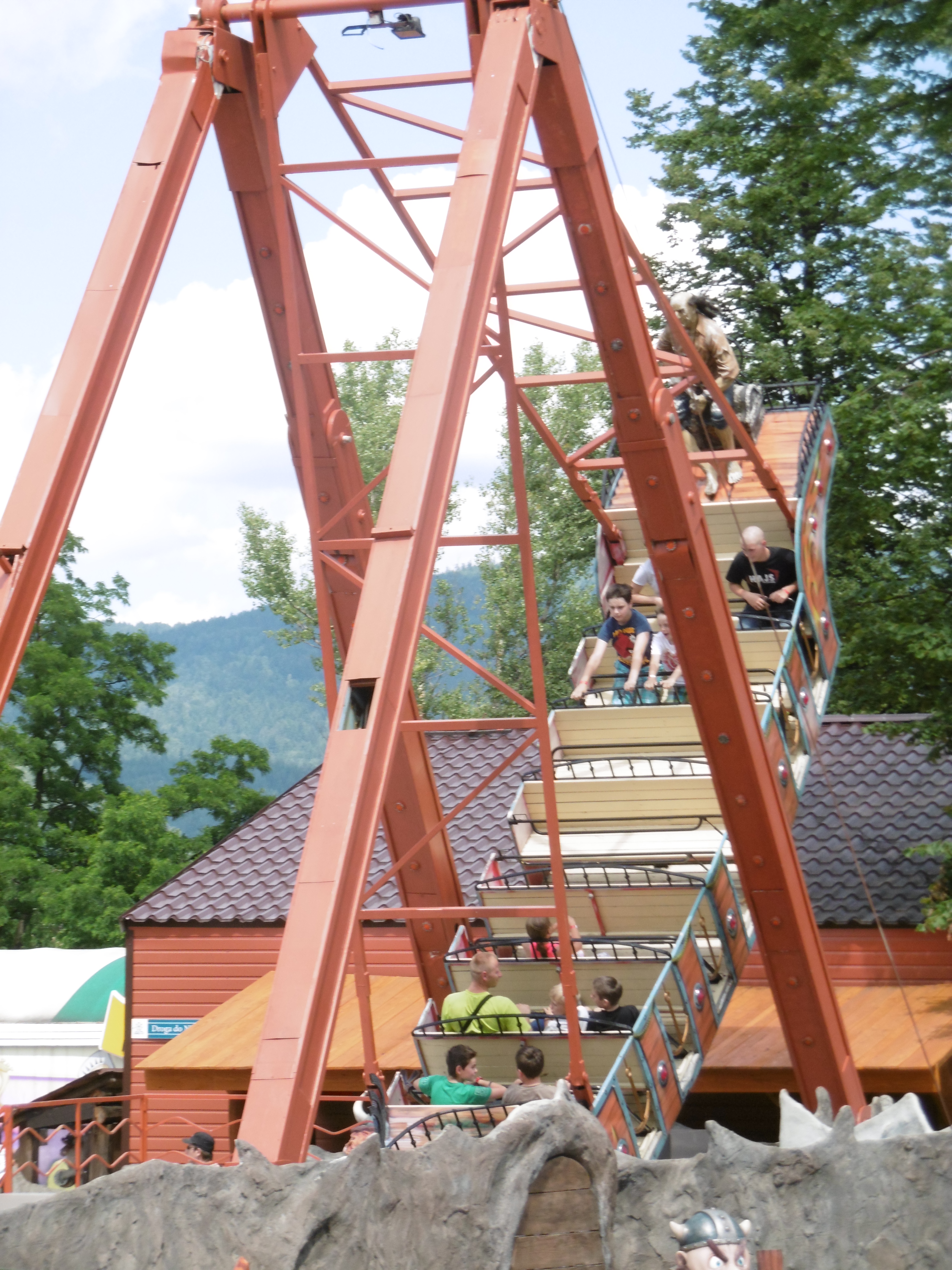 Hier fuhr Martin noch mit, weil er ihm noch fehlte. Er drehte in der ersten Reihe ein Onride und wir fuhren in der Fahrt davor in der letzten Reihe. Kommt natürlich bei weitem nicht an Raik ran, dafür fehlt einfach der schicke Umschwung kurz vorm zweiten Lift. Abgesehen davon passt er aber super für das Familienpublikum.