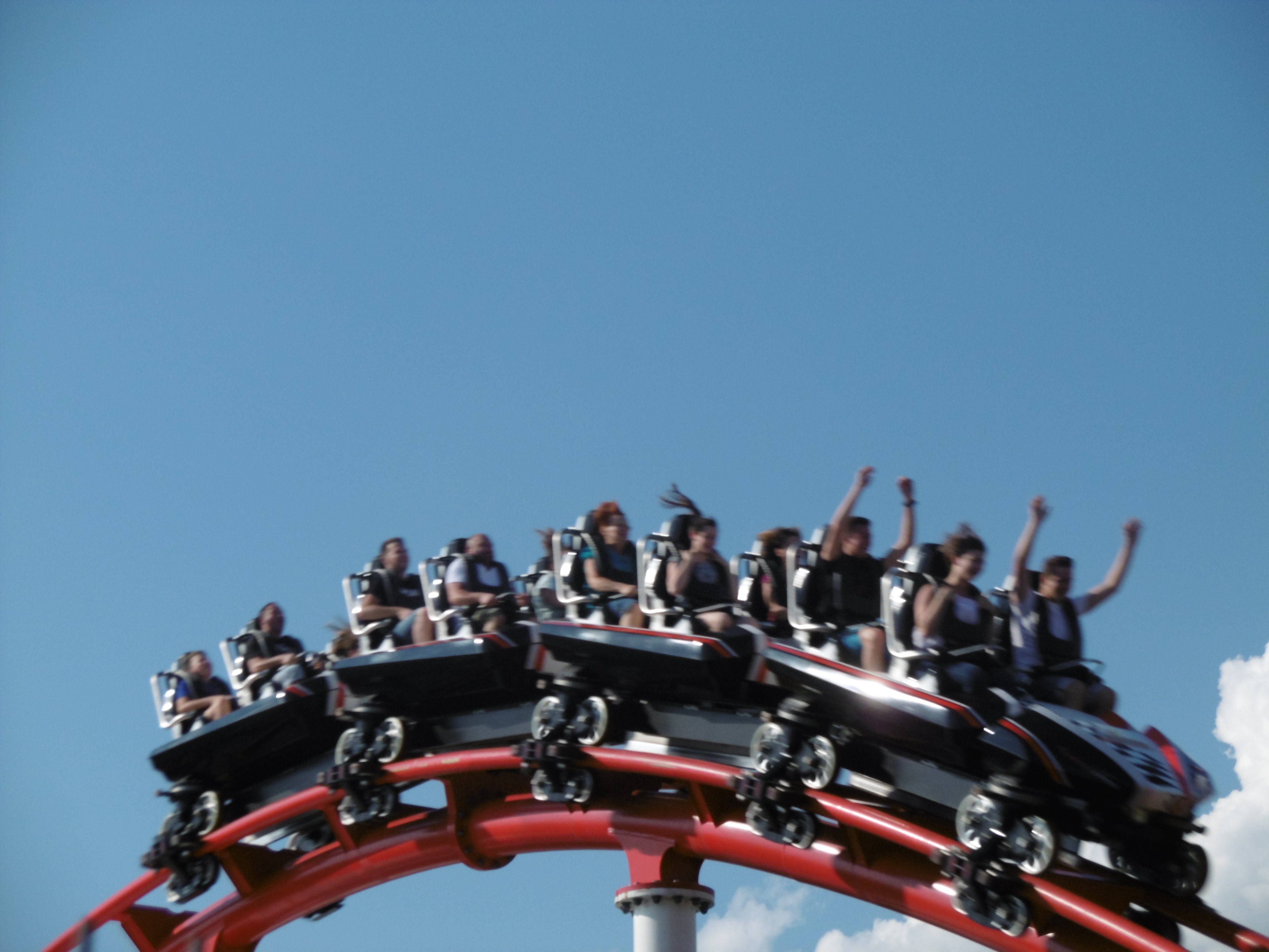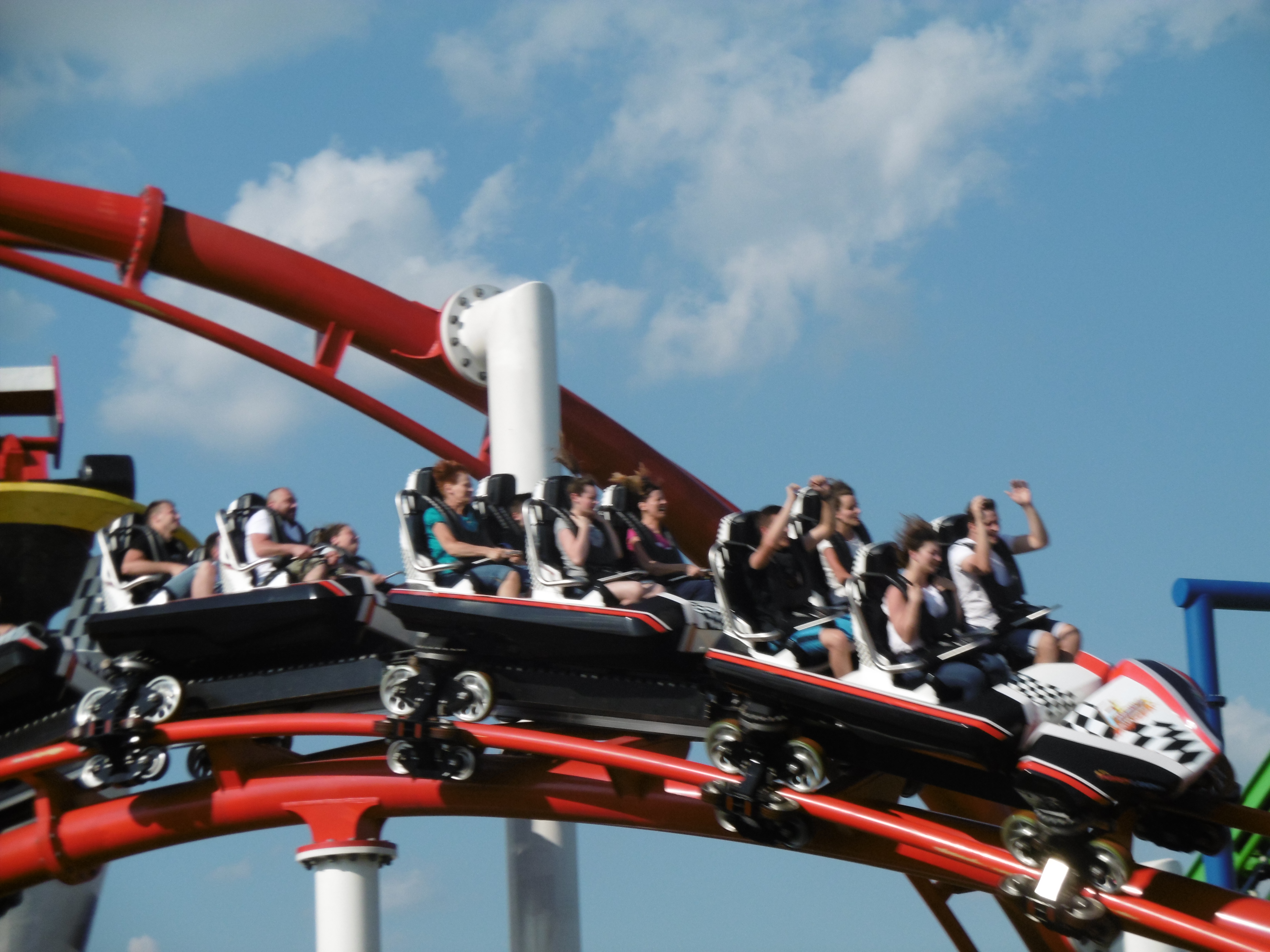 Schon kurz nachdem wir den Park betraten, wusste ich, dass das kein toller Tagesabschluss werden würde und ich froh sein kann, dass ich überhaupt ein paar Mal mit den Bahnen fahren kann. Wir nahmen den Weg rechts herum und kamen an der randvollen Warteschlange des Junior Coasters von