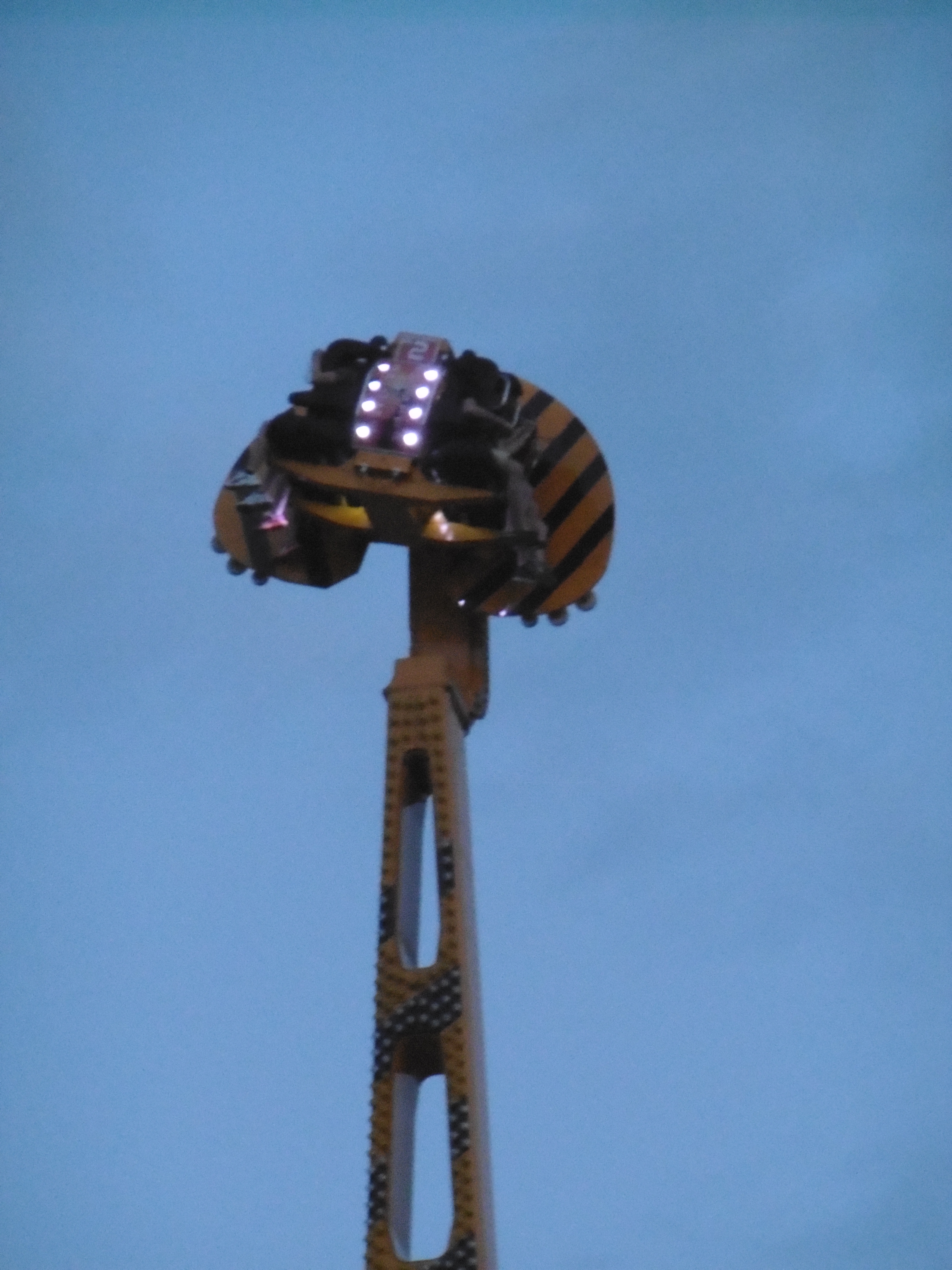 Dann war ich auch wieder bei meiner besten Bahn im Park (Markus klapperte derweil die verbliebenen Bahnen ab) und versuchte in der letzten Stunde noch so viele Runden wie möglich zu drehen. Bei guten 20-30 Minuten Wartezeit hoffte ich, dass ich wenigstens noch drei schaffe. Um kurz nach 20 Uhr wunderte ich mich, dass der Wartebereich noch nicht geschlossen wurde. Daher machte ich mich auf den Weg zum Haupteingang um die beiden anderen zu suchen. Dort fand ich Martin und zusammen liefen wir noch ein wenig durch den Park.