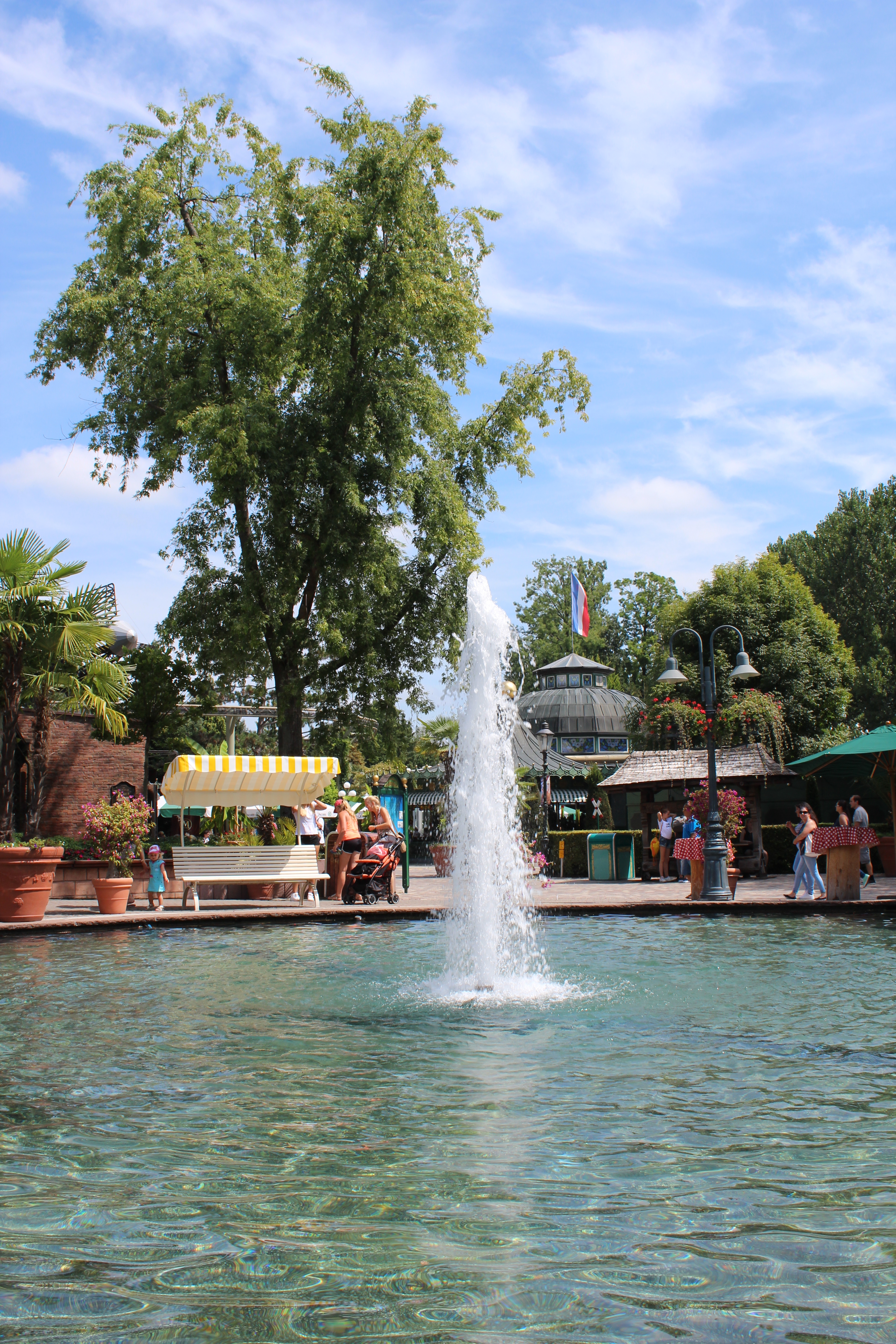 Auch im nahe gelegenen französischen Themenbereich gibt es Springbrunnen, die bei bestem Sommerwetter ein Anziehungspunkt waren.