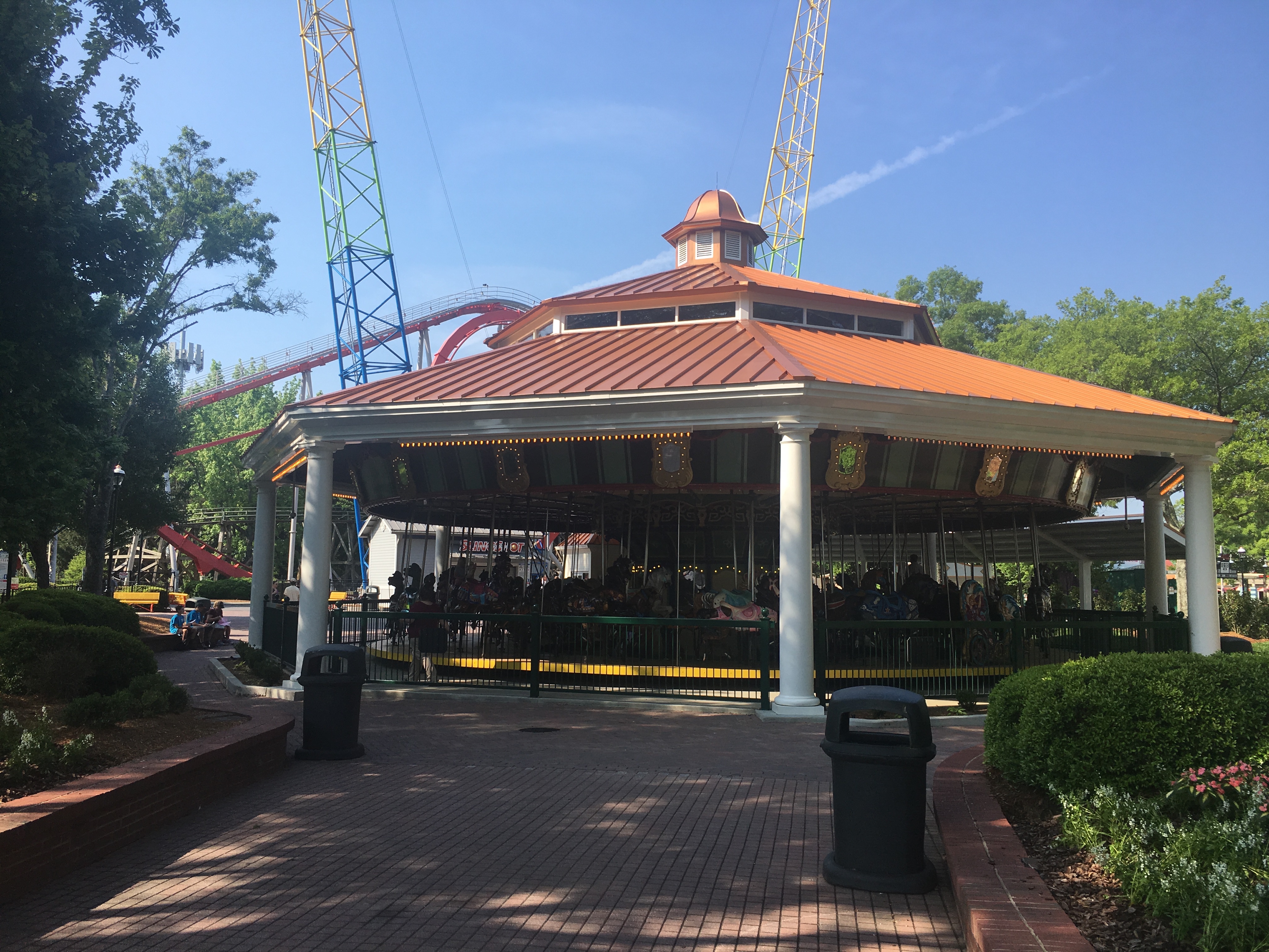 Das Caroussel sind bis 2017 ? auf dem Platz, wo nun die Camp Snoopy Figur sitzt, also vor dem blauen Kiddie-Wooden-Coaster.