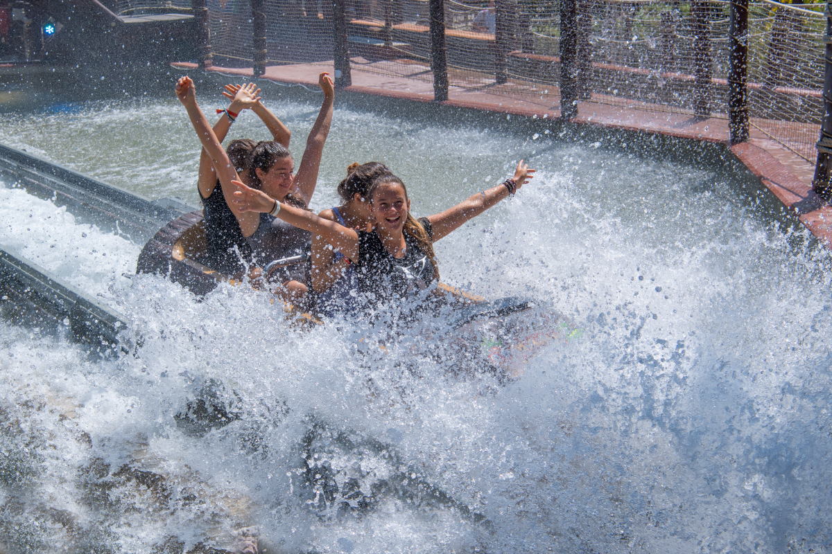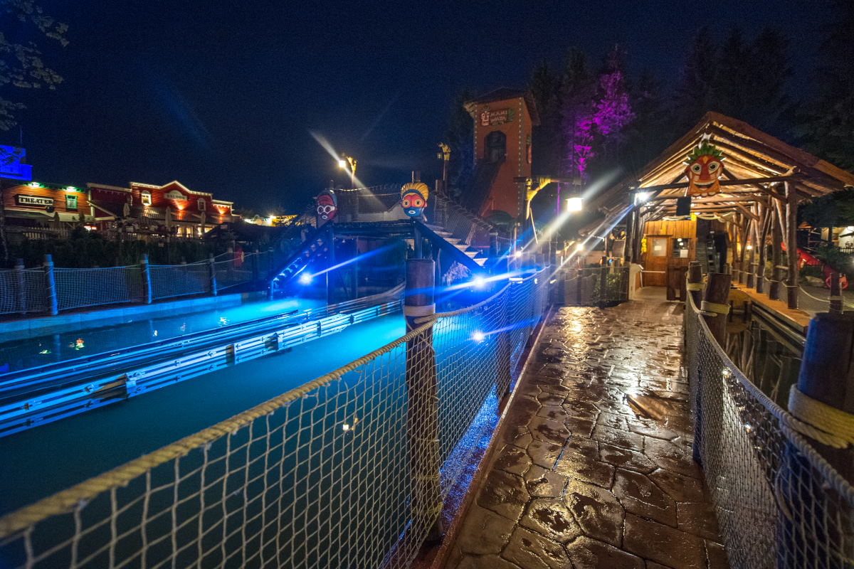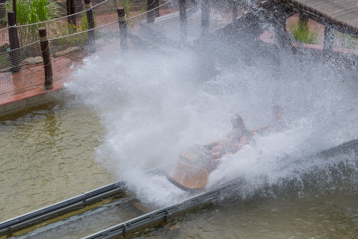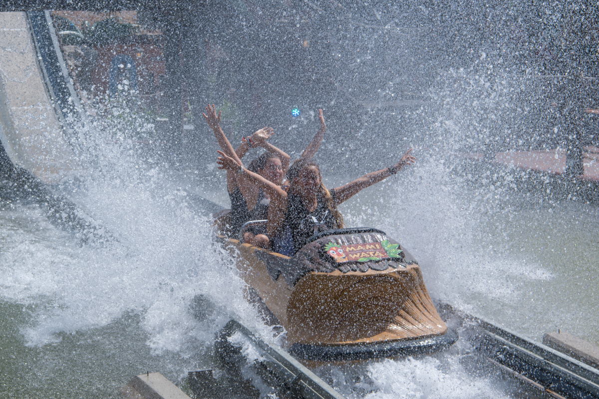 Die Wasserbahn Mami Wata mit afrikanischer Thematisierung beinhaltet auch einen Rückwärtsfahrt…