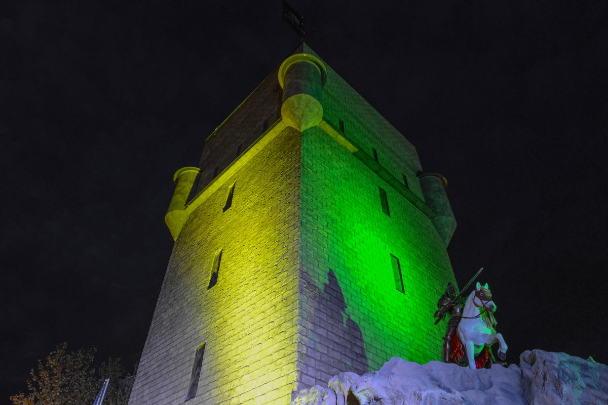 Zwei großartige Attraktionen sind der Knights Ride Tower und Geisterschloss!