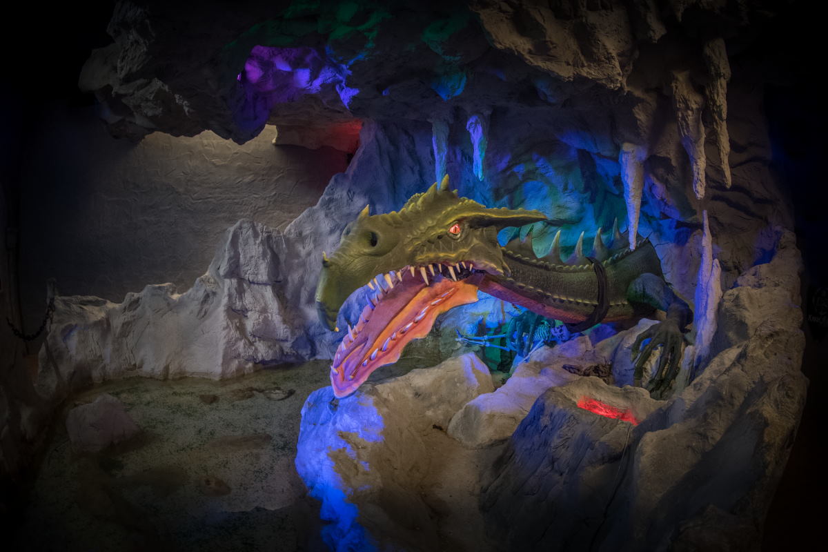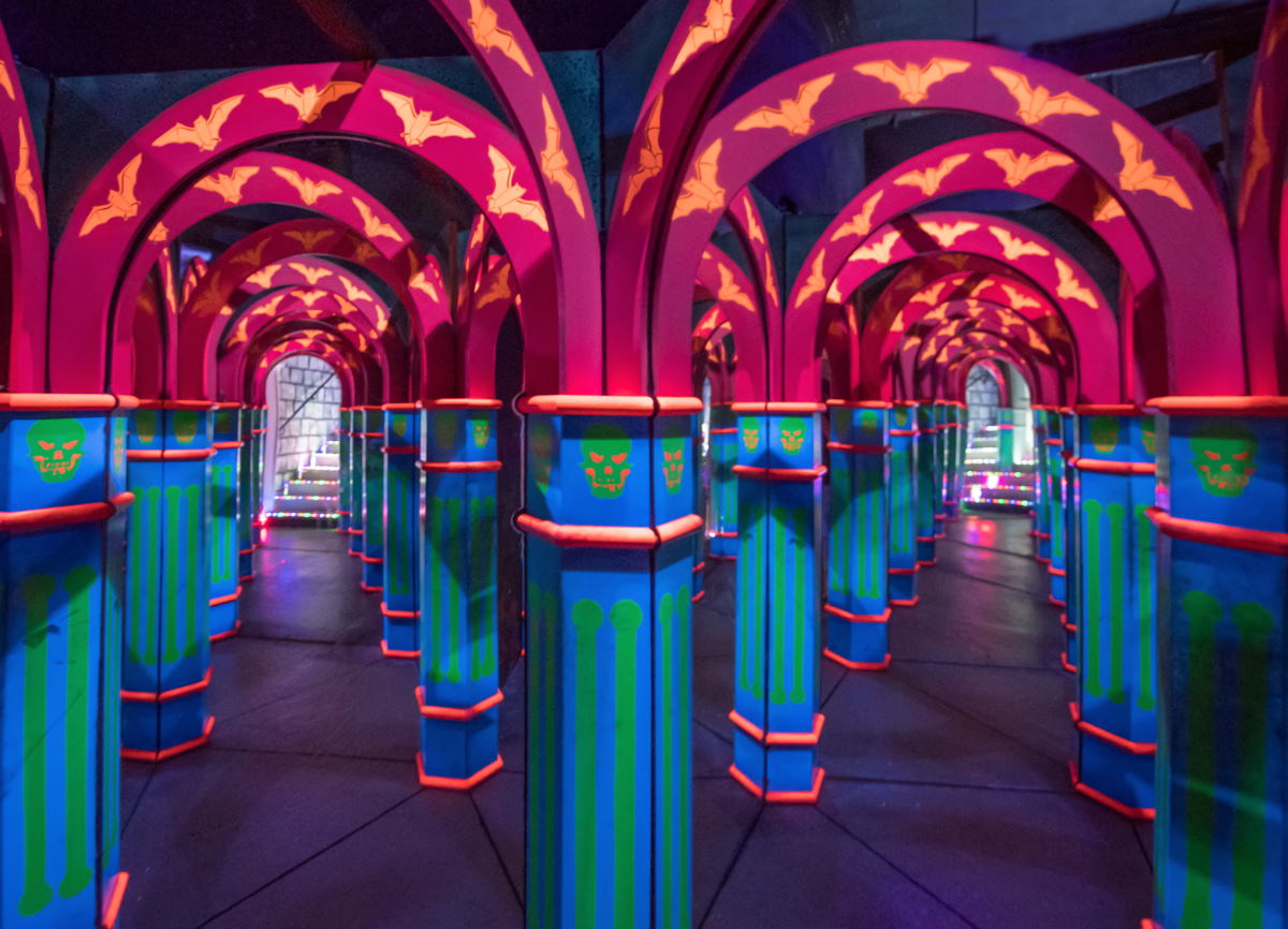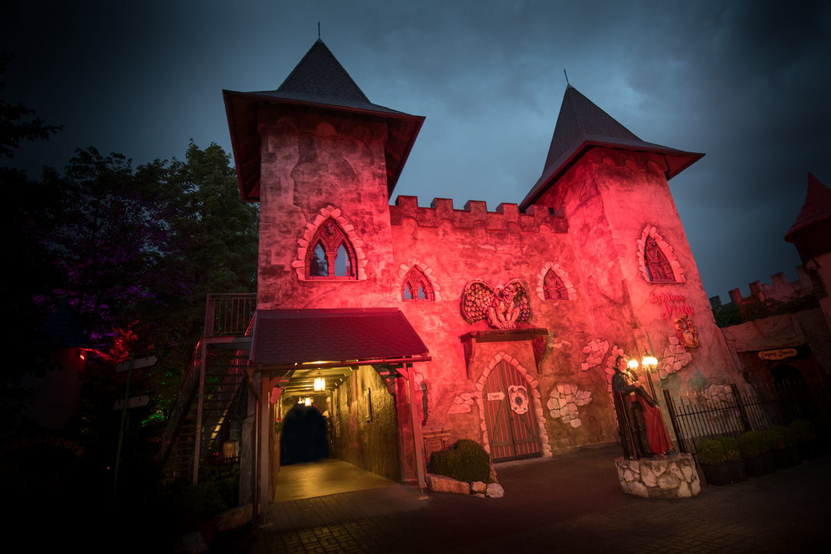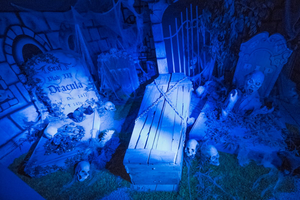 Beim Geisterschloss gibt es Live-Erschrecker, ein Labyrinth und animierte Szenen mit überraschenden Effekten…