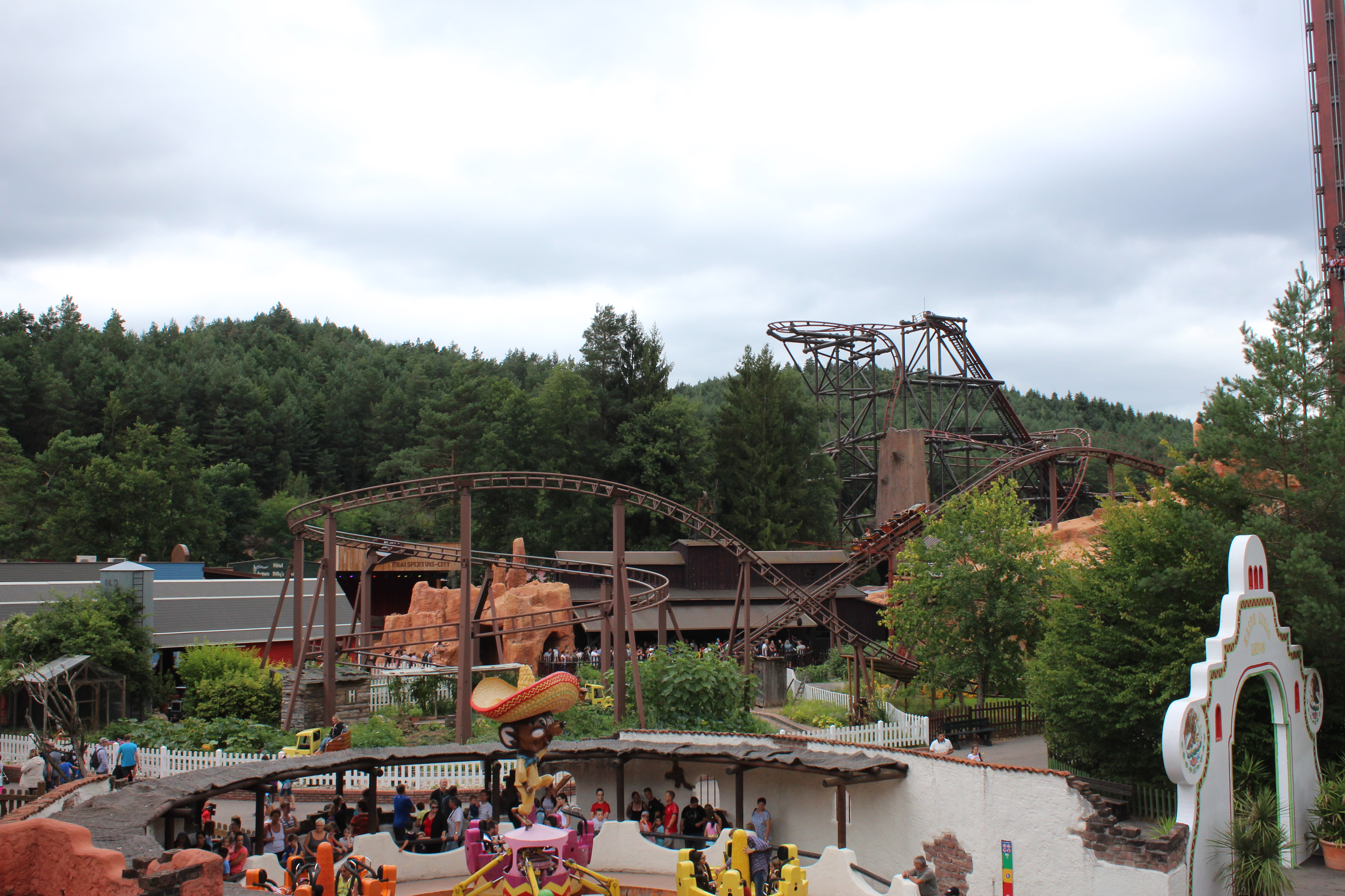 Nach dem Essen beendeten wir unseren Rundgang im Piratenbereich. Aufgrund der einsetzenden Schauern haben wir aus dem Mexikobereich und dem Piratenbereich leider keine gescheiten Aufnahmen. Bei gutem Wetter waren wir vielleicht etwas zu sehr auf "Timber Drop" fokussiert.